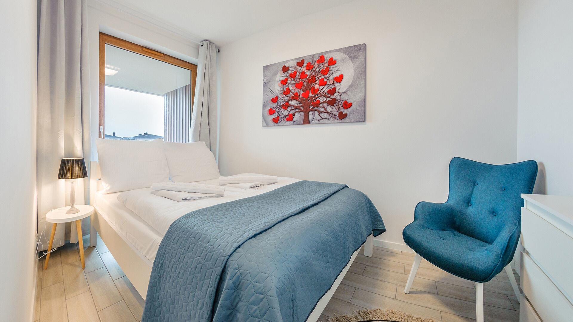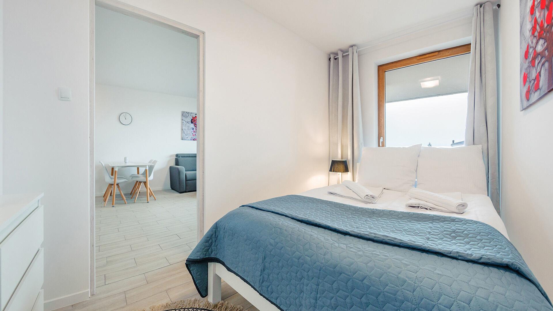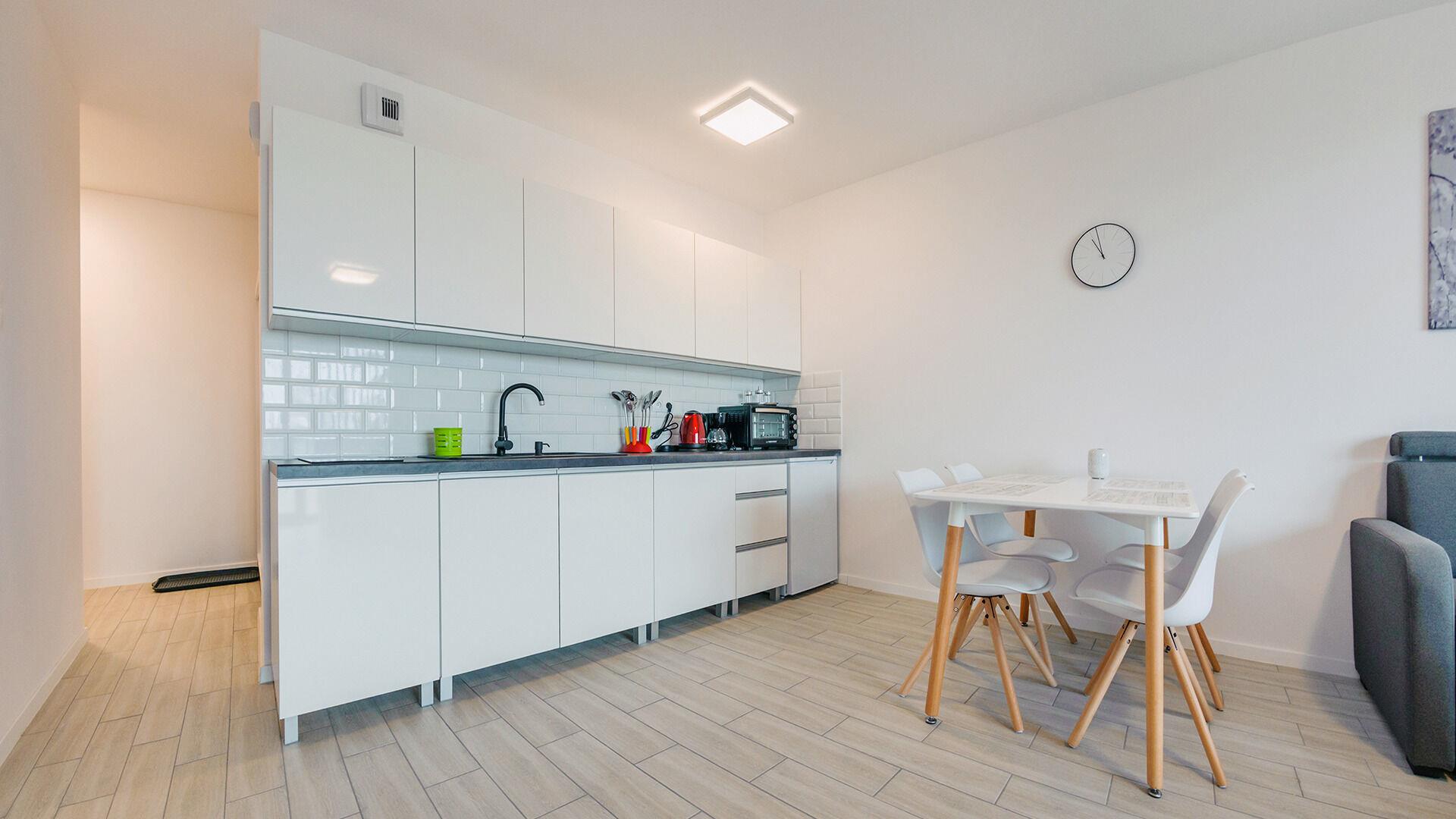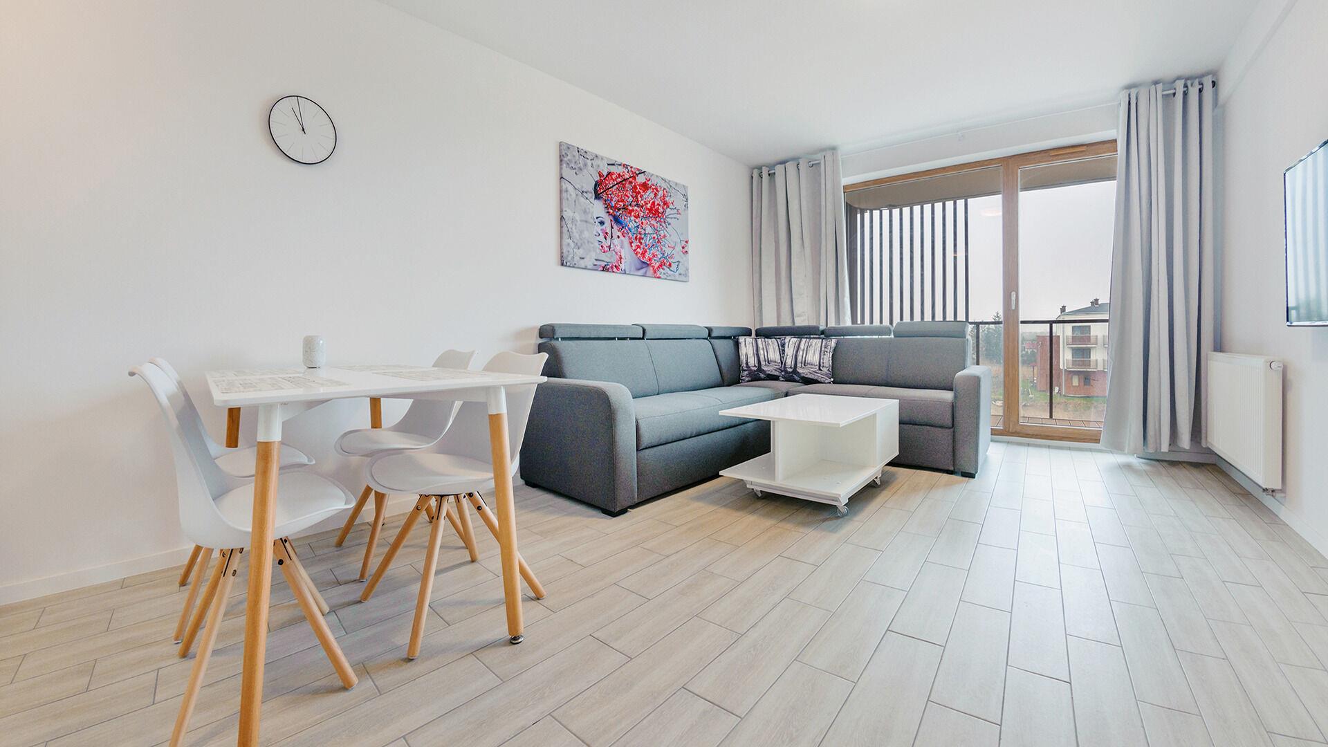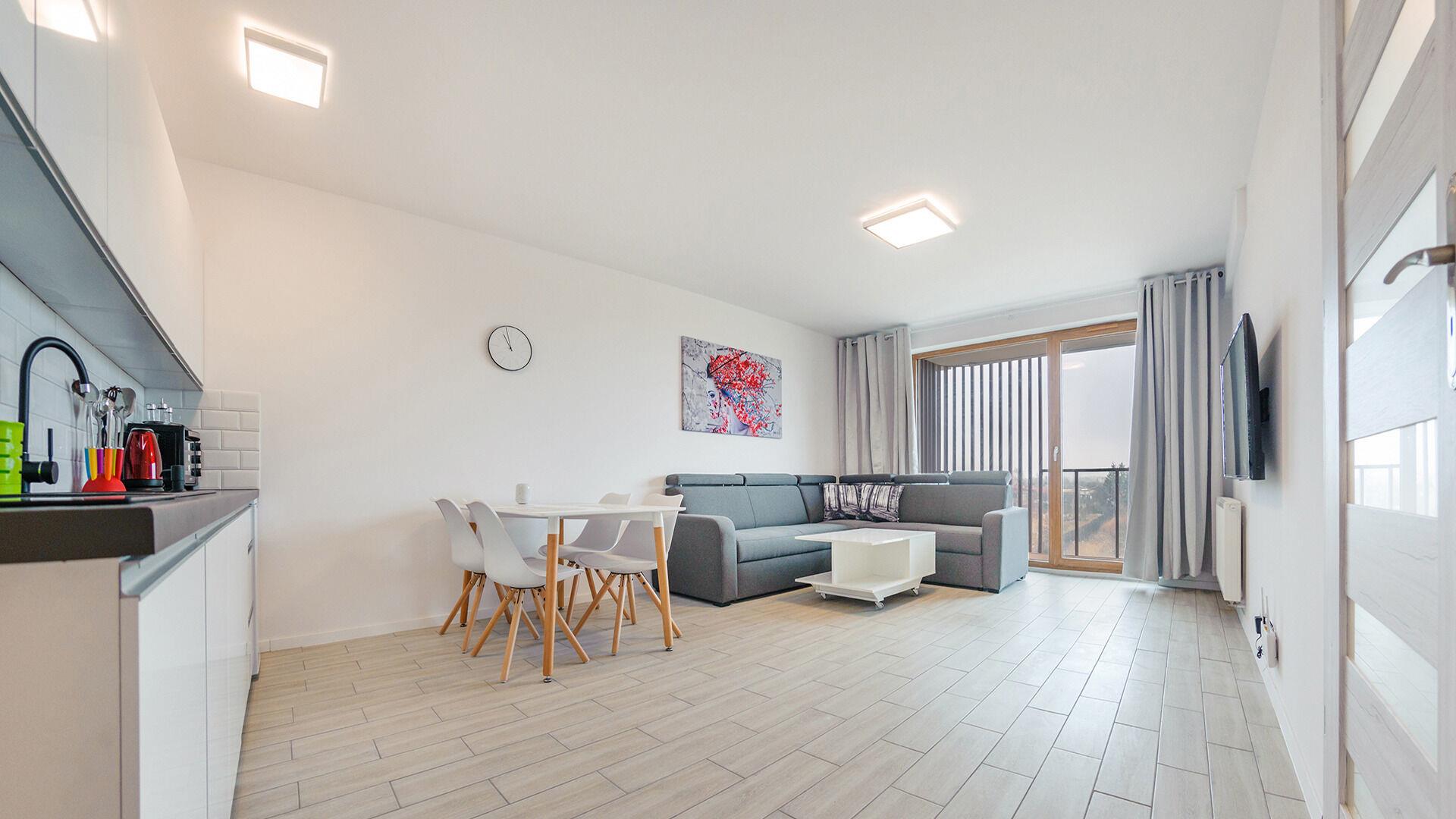 • Haustiere sind in der ausgewählten Wohnung erlaubt. Die Kosten für den Aufenthalt mit einem Haustier betragen 40 PLN pro Tag.