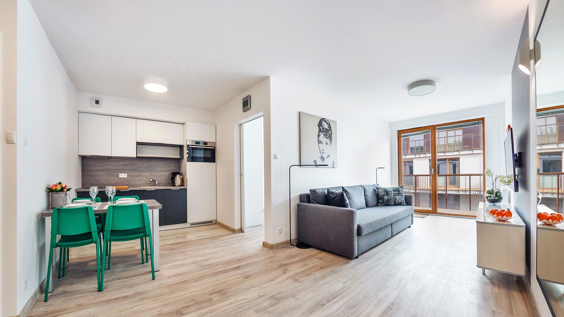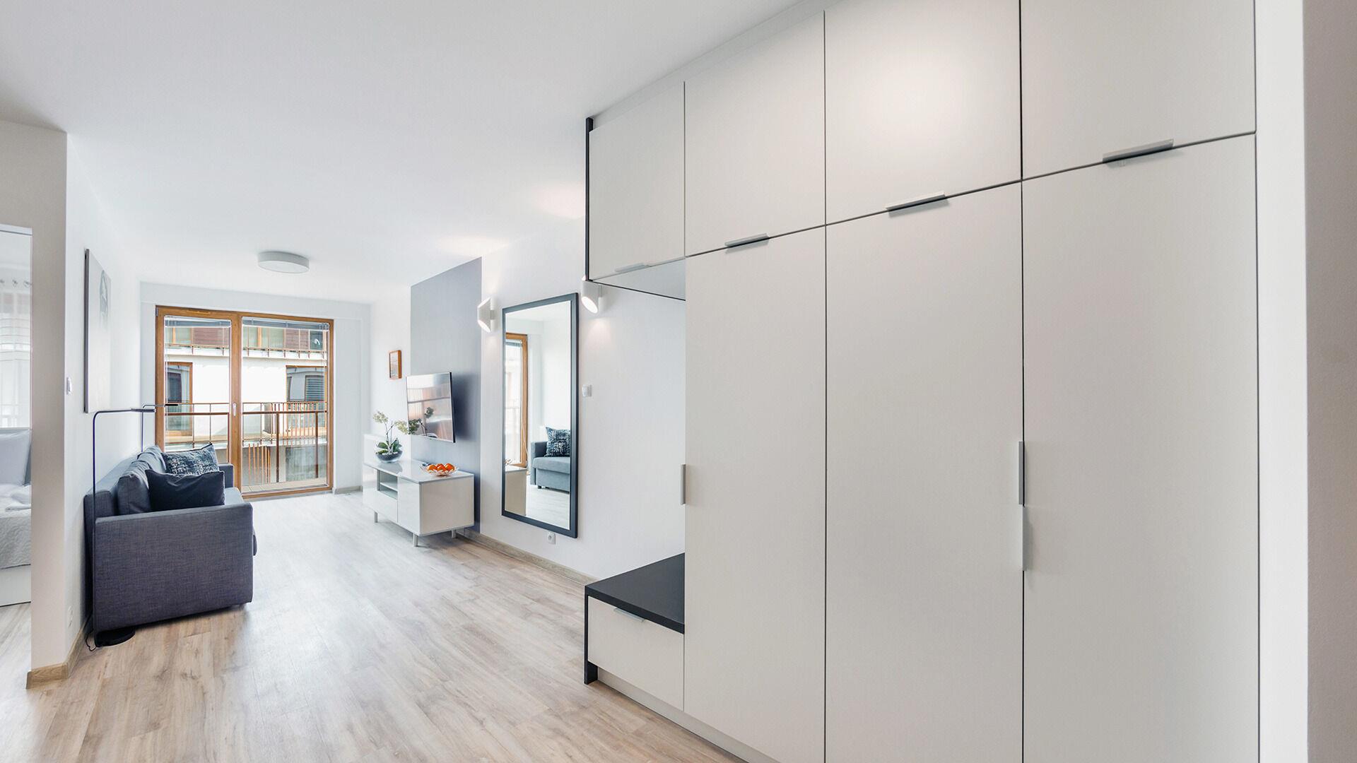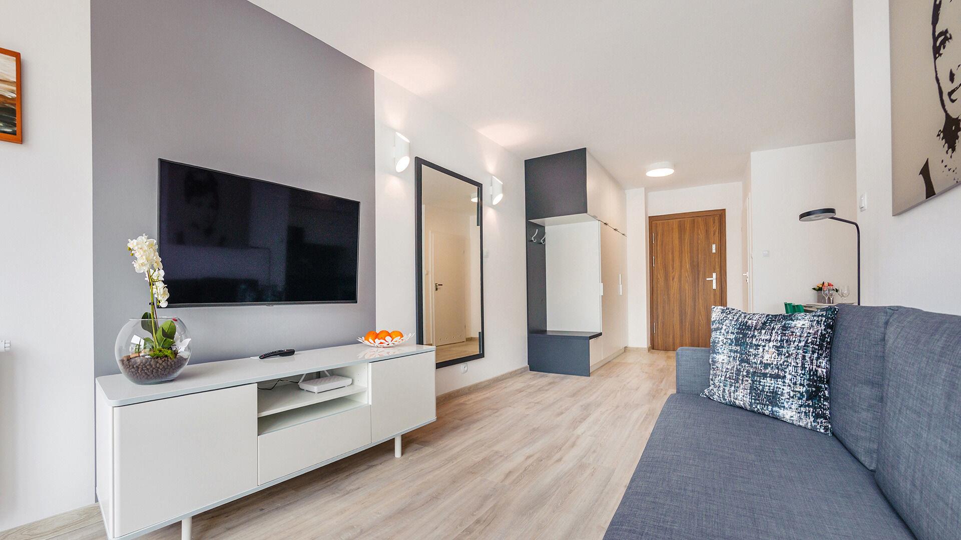 • Haustiere sind in der ausgewählten Wohnung erlaubt. Die Kosten für den Aufenthalt mit einem Haustier betragen 40 PLN pro Tag.
