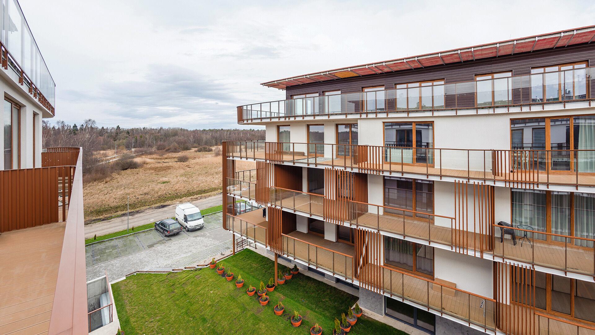 Die Apartments im Objekt Resorts Kolobrzeg befinden sich im westlichen Teil von Kolobrzeg, abseits des städtischen Trubels, umgeben vom Grün des NATURA-2000-Parks. Diese Lage garantiert saubere Luft, malerische Ausblicke und direkten Kontakt zur Natur. Die Plazowa-Straße mit ihren breiten Gehwegen und Radwegen ist ein Teil der R10-Fahrradroute. Ein fünfminütiger Spaziergang über einen direkten Zugang zum Meer reicht aus, um den breiten, sandigen „Weststrand” zu erreichen; ganz in der Nähe befindet sich auch ein Hundestrand. Alle Apartments sind hochwertig ausgestattet und verfügen über funktionale, voll ausgestattete Küchenzeilen sowie geräumige Terrassen mit Blick auf den Innenhof oder das Grün des NATURA-2000-Parks. Vor dem Gebäude gibt es einen öffentlichen, kostenpflichtigen Stadtparkplatz (begrenzte Anzahl an Stellplätzen). Auf dem Gelände stehen ein nummerierter Außenparkplatz sowie Parkplätze in der Tiefgarage zur Verfügung, die den meisten Apartments zugeordnet sind und gegen Aufpreis genutzt werden können. Im Objekt befindet sich ein Schwimmbad, das täglich von 10:00 bis 21:00 Uhr geöffnet ist, sowie eine Sauna, die täglich von 16:00 bis 21:00 Uhr geöffnet ist. Der Pool befindet sich im Gebäude A; aus Gebäude B gibt es keinen direkten Zugang zu Gebäude A.
