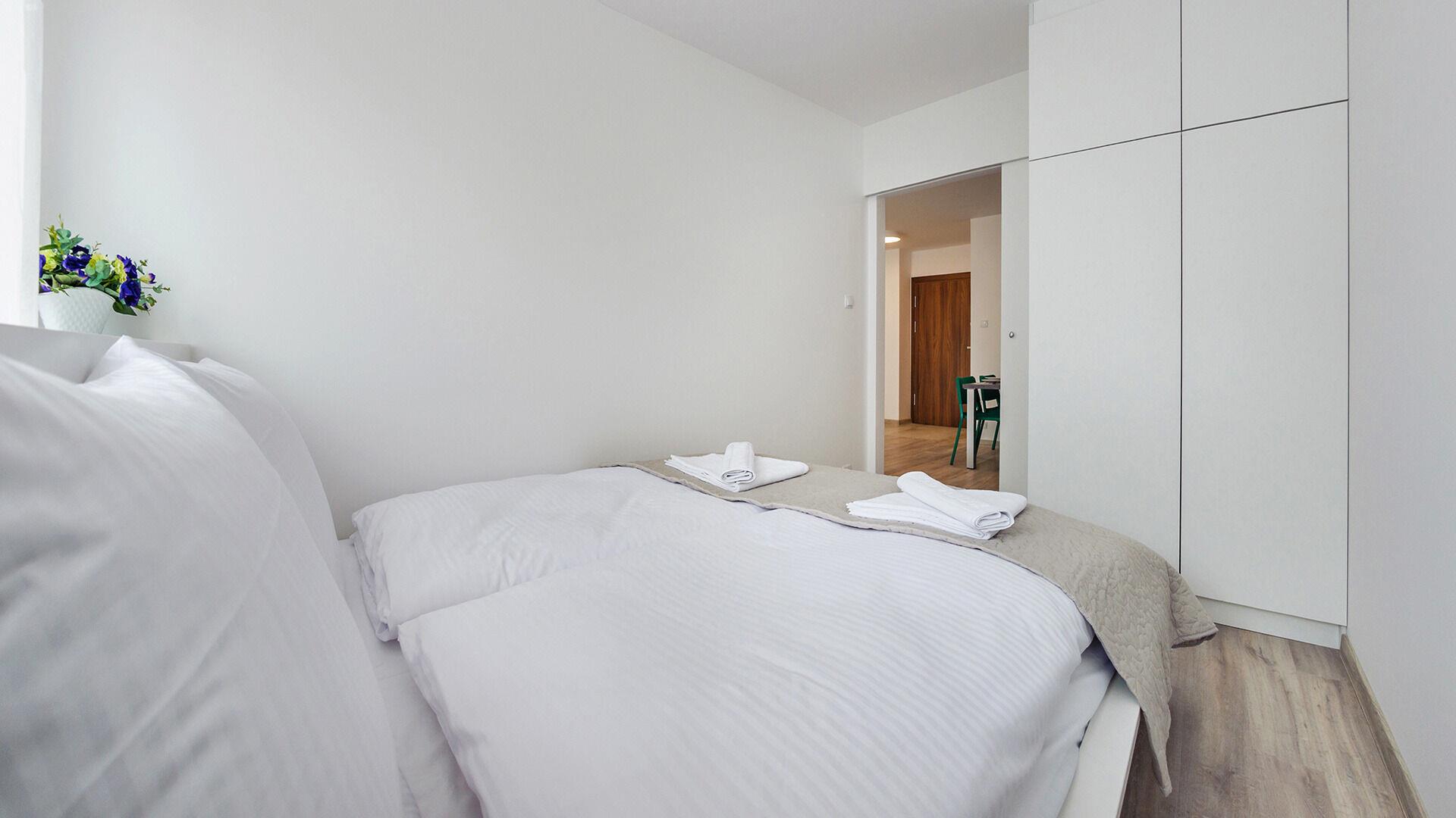 • Die Apartments sind mit Bettwäsche und Handtüchern ausgestattet.