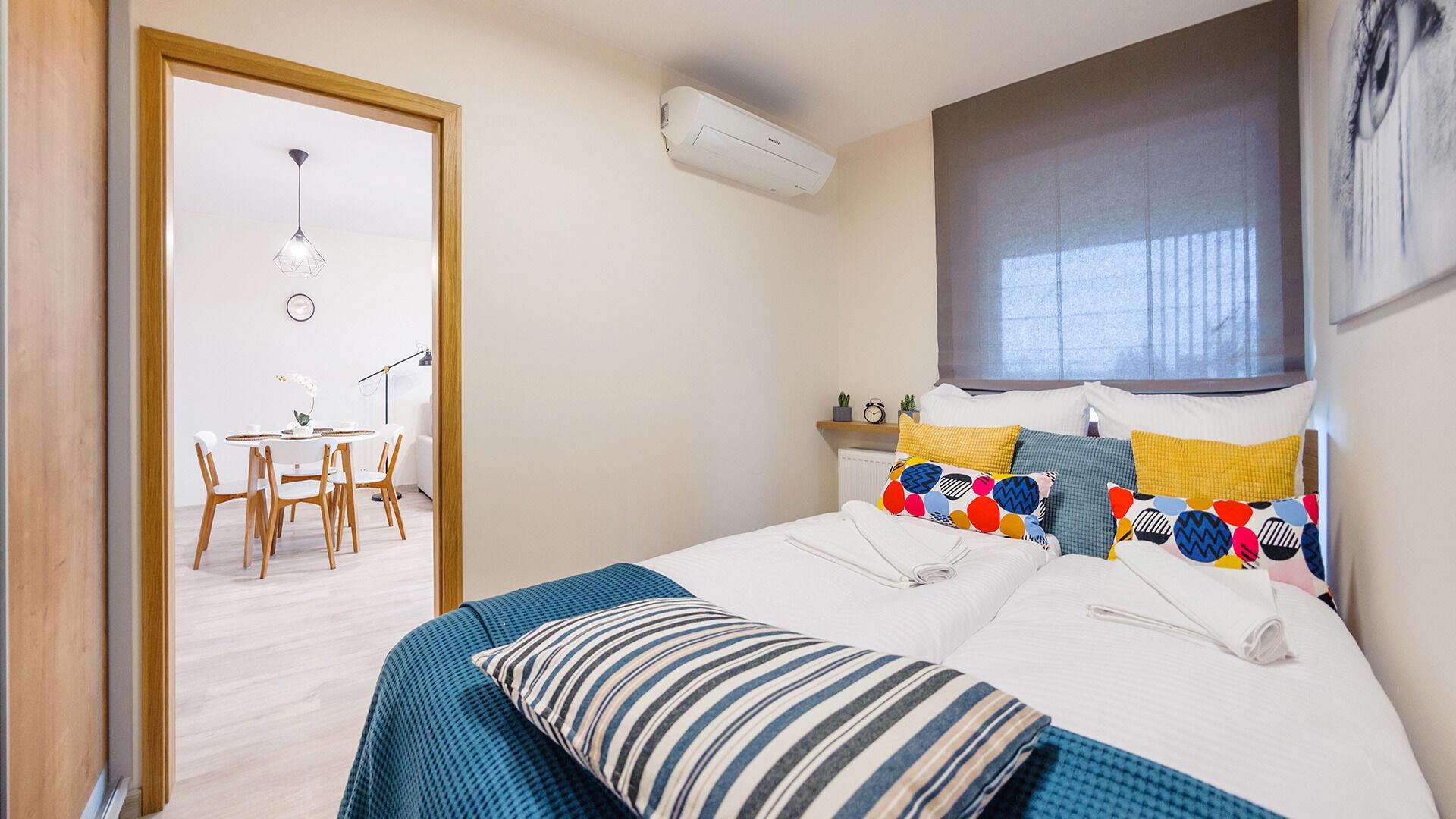 • Die Apartments sind mit Bettwäsche und Handtüchern ausgestattet.