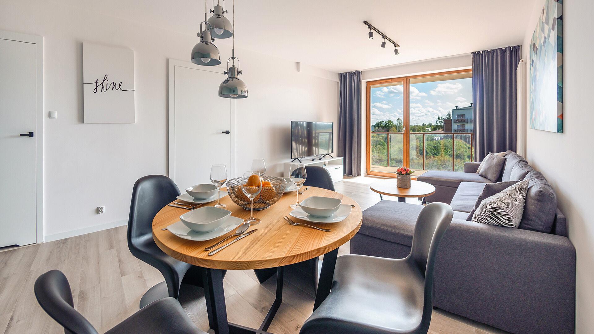 • Haustiere sind in der ausgewählten Wohnung erlaubt. Die Kosten für den Aufenthalt mit einem Haustier betragen 40 PLN pro Tag.