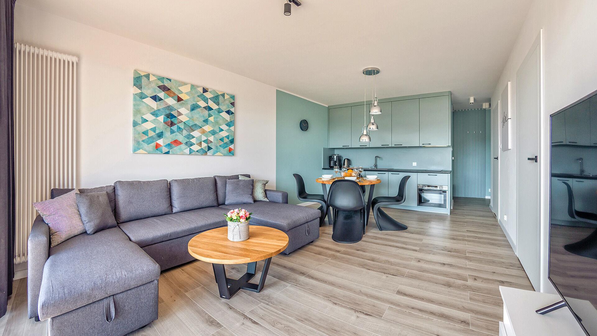Die Apartments im Resorts Kolobrzeg liegen im ruhigen, westlichen Teil der Stadt, umgeben vom NATURA-2000-Park und nur wenige Minuten vom breiten Weststrand sowie einem Hundestrand entfernt. Die Lage bietet saubere Luft, direkten Kontakt zur Natur und Zugang zu Rad- und Spazierwegen. Die Apartments sind hochwertig ausgestattet und verfügen über voll ausgestattete Küchenzeilen sowie große Terrassen. Auf dem Gelände stehen nummerierte Außenparkplätze und Tiefgaragenplätze gegen Aufpreis zur Verfügung, zudem gibt es einen öffentlichen, kostenpflichtigen Parkplatz vor dem Gebäude. Gästen stehen ein täglich geöffneter Pool sowie eine Sauna zur Verfügung. Kolobrzeg bietet das ganze Jahr über zahlreiche Freizeit- und Kulturangebote sowie eine vielfältige Gastronomie.