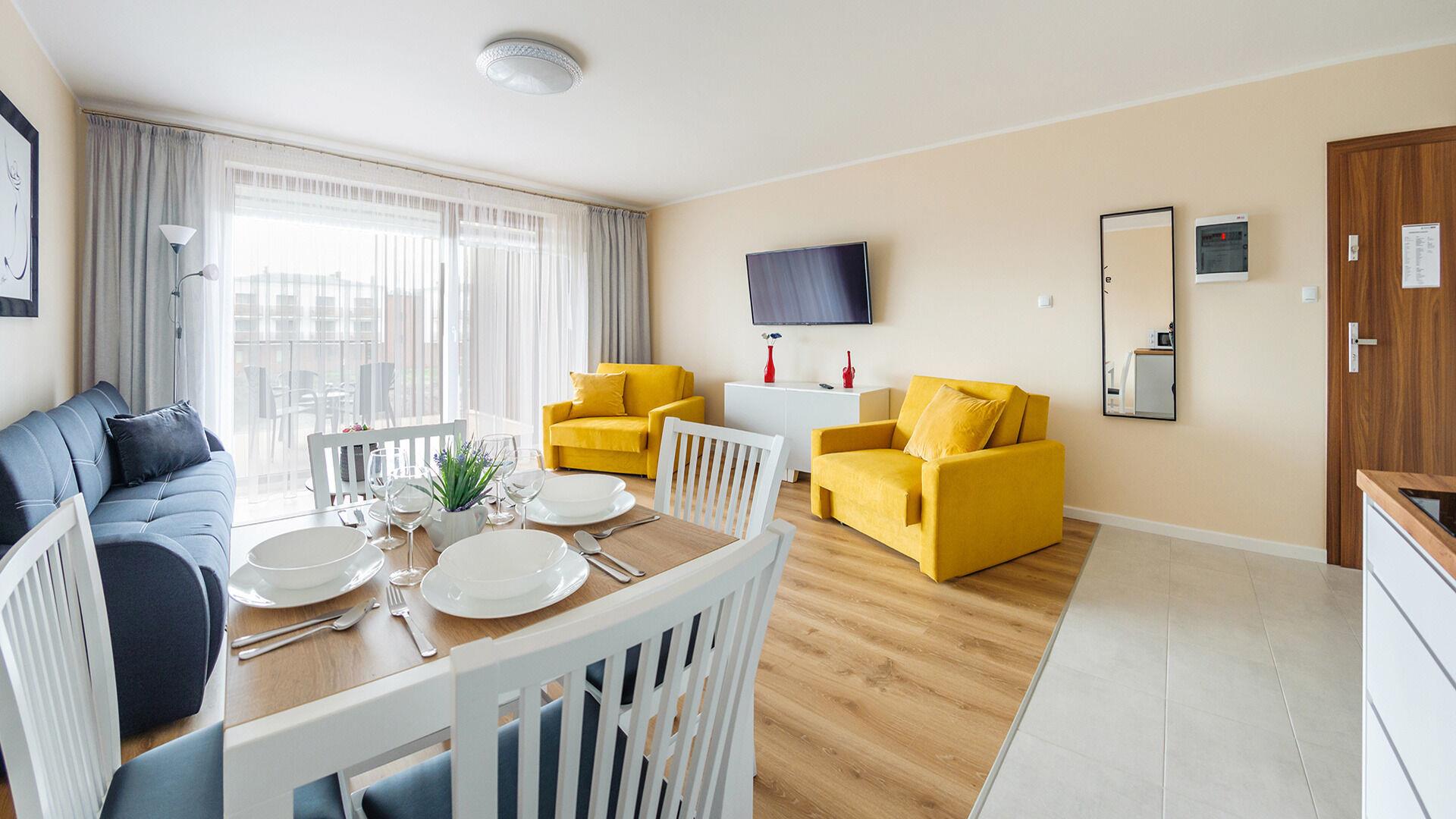 Die Apartments im Resorts Kolobrzeg liegen im ruhigen, westlichen Teil der Stadt, umgeben vom NATURA-2000-Park und nur wenige Minuten vom breiten Weststrand sowie einem Hundestrand entfernt. Die Lage bietet saubere Luft, direkten Kontakt zur Natur und Zugang zu Rad- und Spazierwegen. Die Apartments sind hochwertig ausgestattet und verfügen über voll ausgestattete Küchenzeilen sowie große Terrassen. Auf dem Gelände stehen nummerierte Außenparkplätze und Tiefgaragenplätze gegen Aufpreis zur Verfügung, zudem gibt es einen öffentlichen, kostenpflichtigen Parkplatz vor dem Gebäude. Gästen stehen ein täglich geöffneter Pool sowie eine Sauna zur Verfügung. Kolobrzeg bietet das ganze Jahr über zahlreiche Freizeit- und Kulturangebote sowie eine vielfältige Gastronomie.
