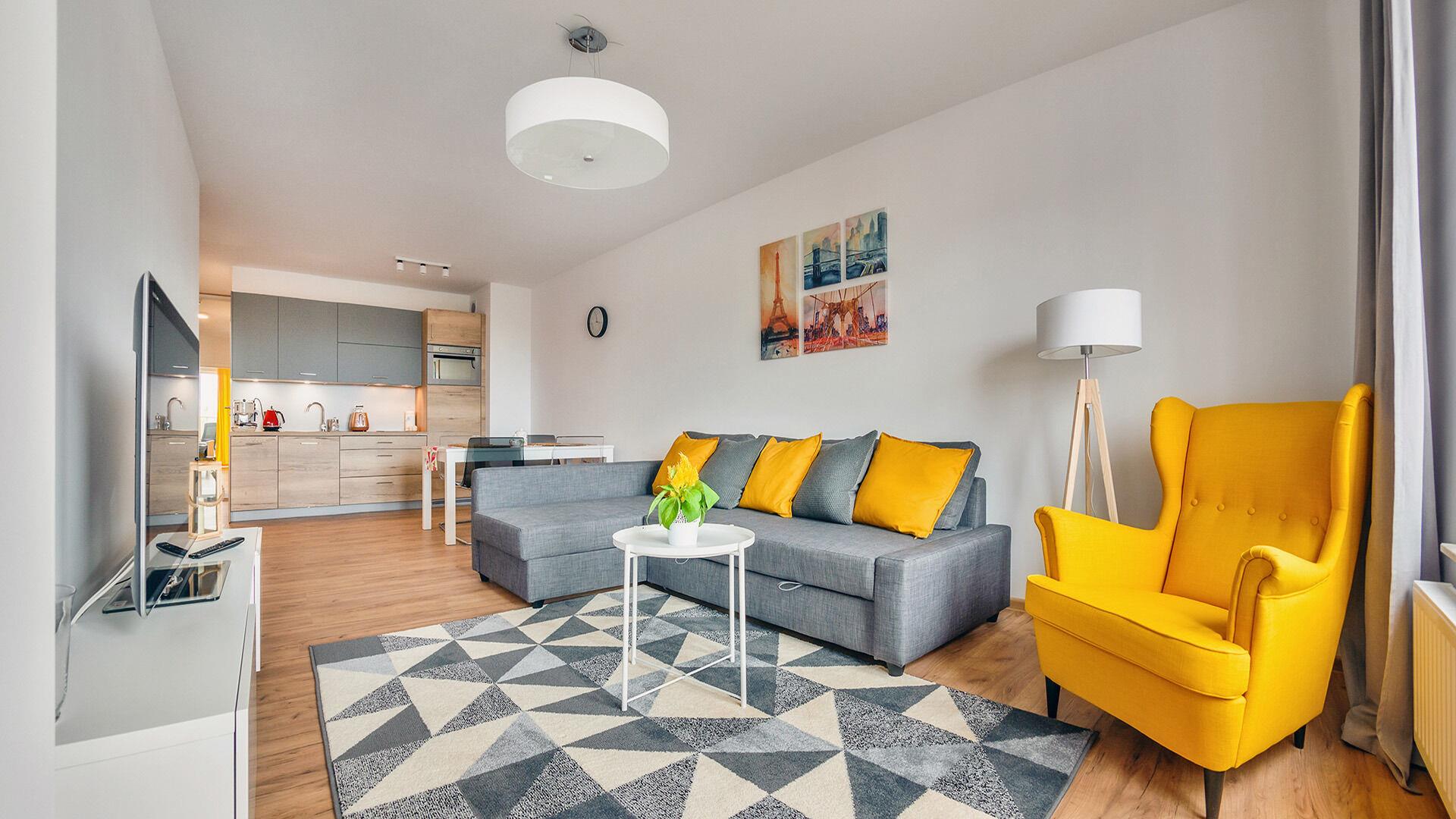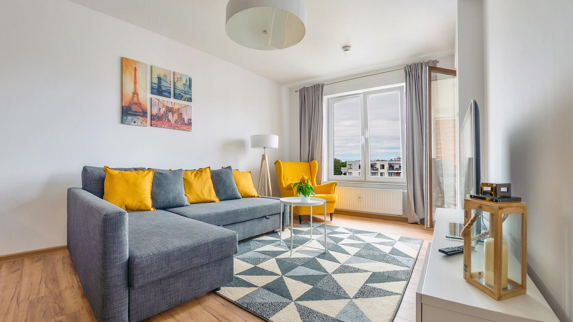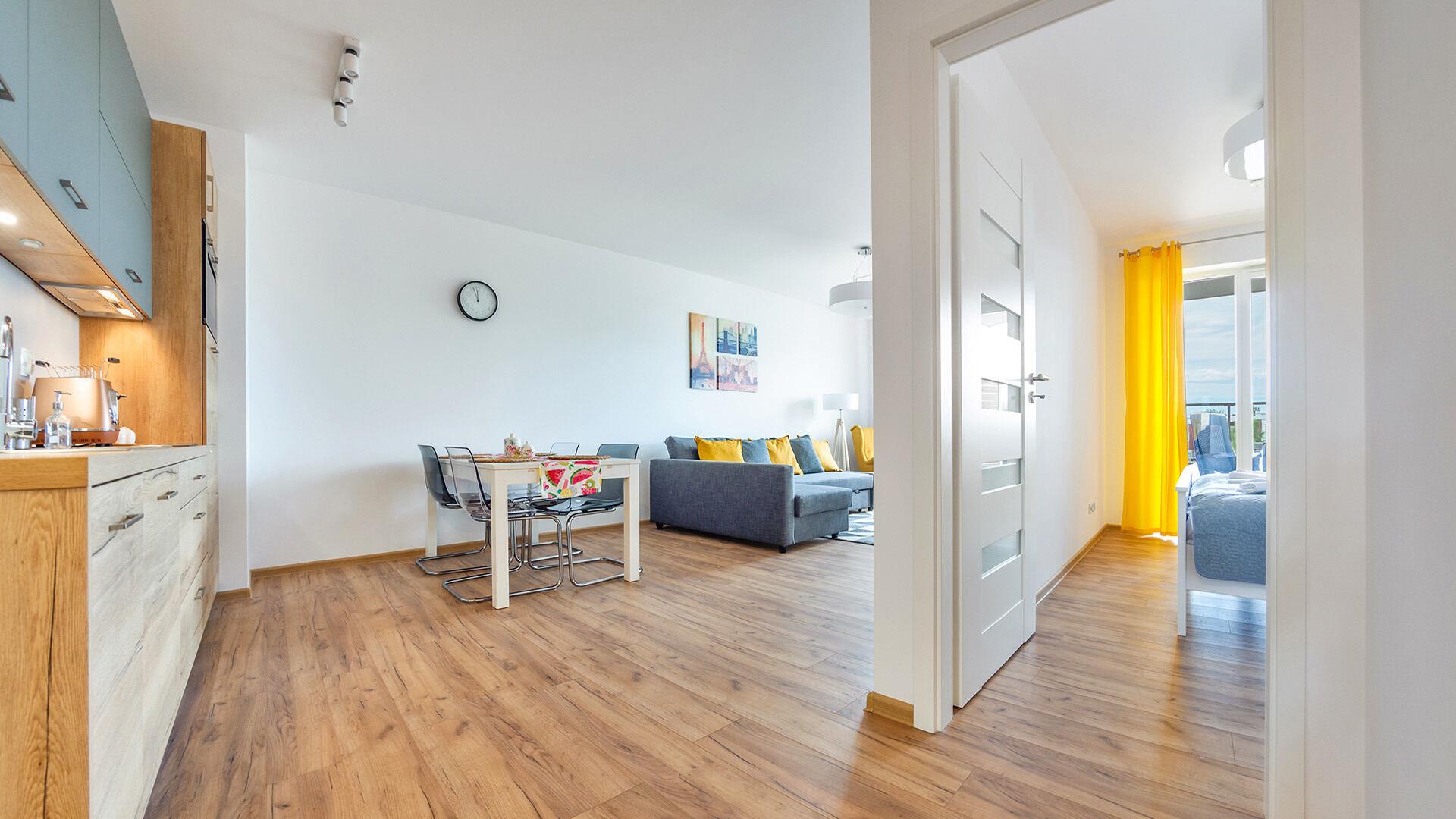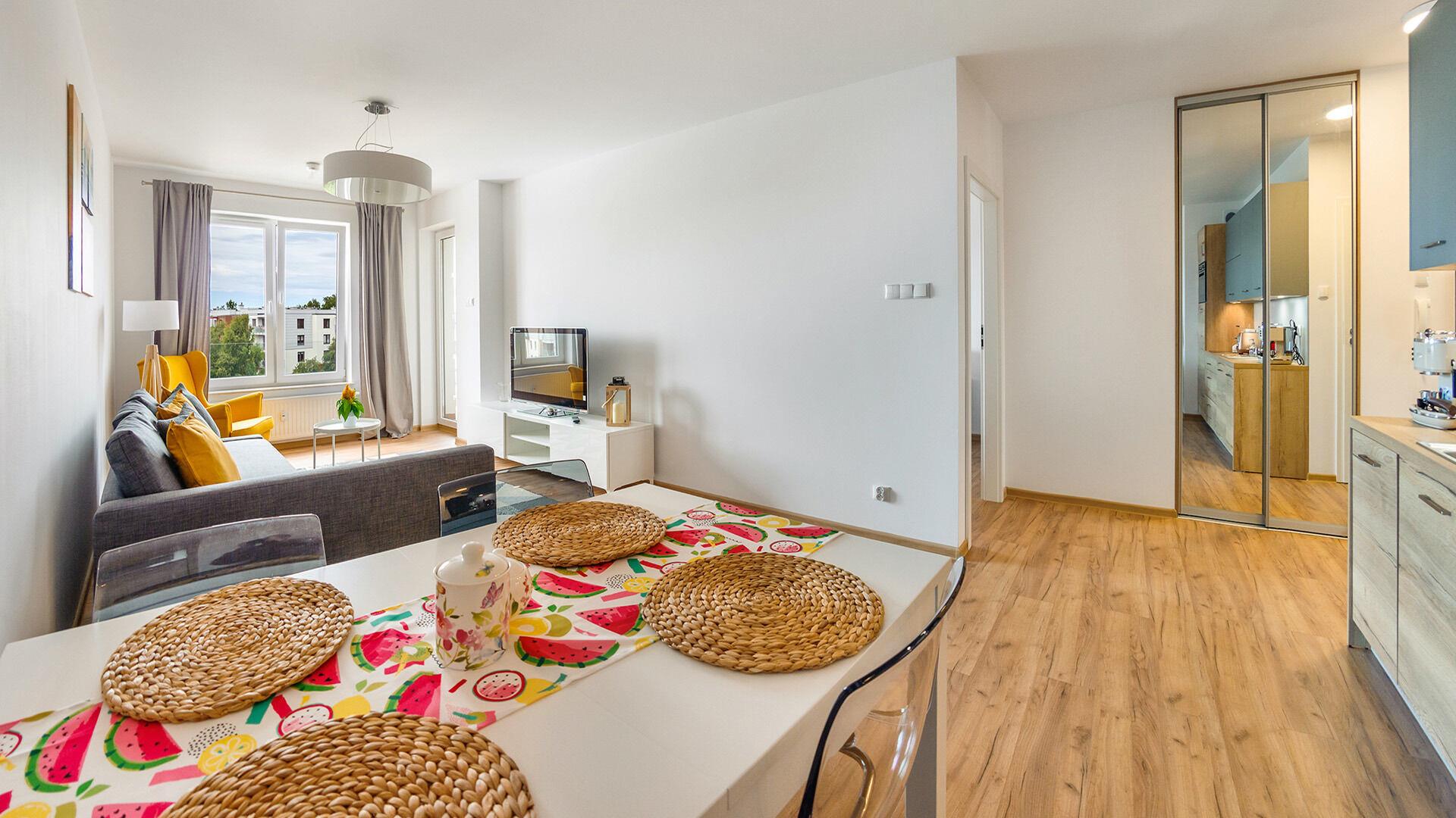 • Haustiere sind in der ausgewählten Wohnung erlaubt. Die Kosten für den Aufenthalt mit einem Haustier betragen 40 PLN pro Tag.
