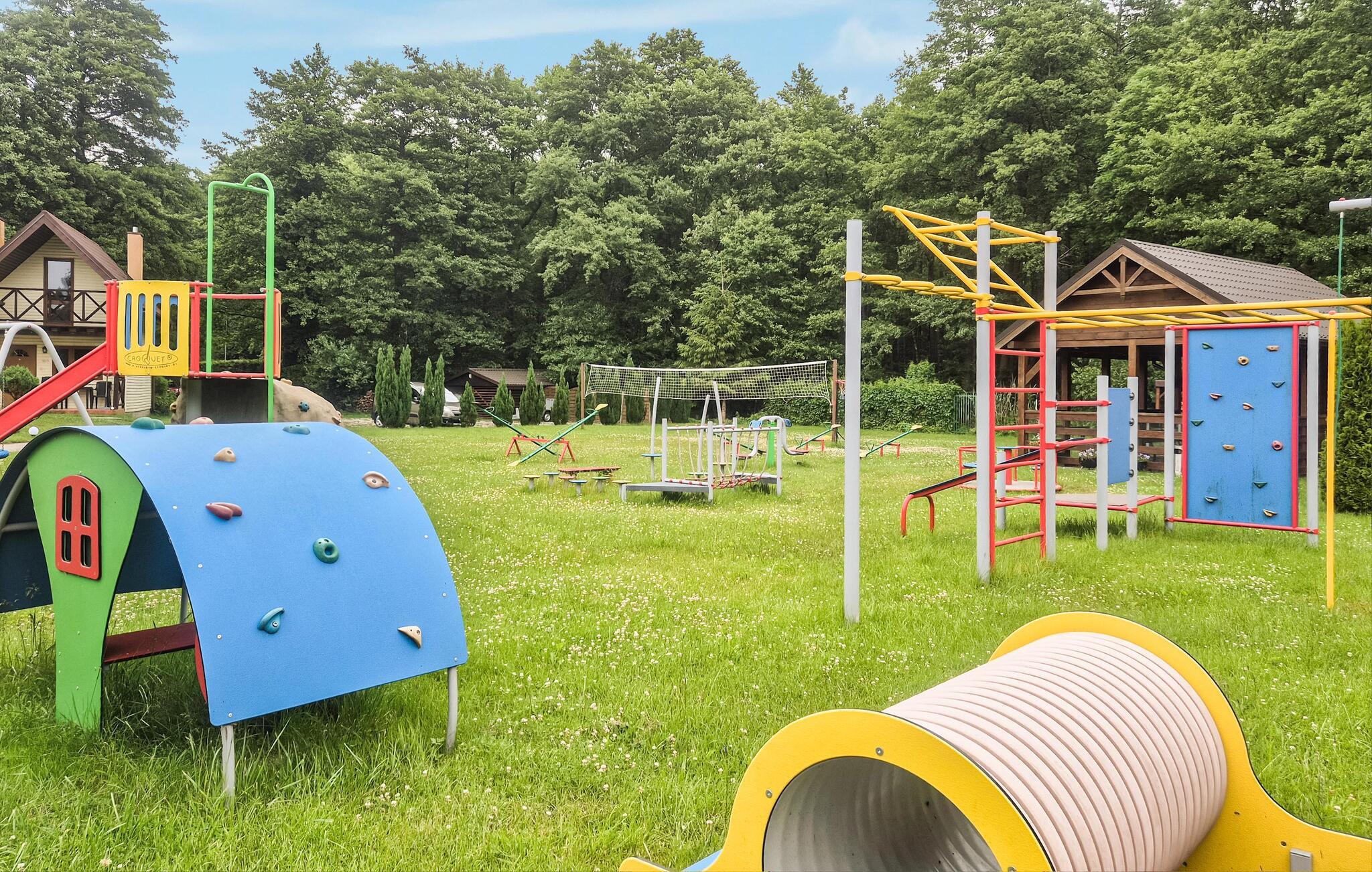 Glæd jer til en afslappende tid nær stranden i dette feriehus. Hvis I planlægger en ferie nær havet, der også inkluderer udendørsoplevelser, er dette velbeliggende hus det rette valg. Det byder jer velkommen ikke langt fra stranden og adskillige søer, og dets komfortable værelser tilbyder en dejlig ramme for jeres familieferie. Efter en aktiv dag kan I finde jer til rette i stuen, spise sammen og senere spille billard eller snakke længe på sofaen. Nyd hyggelige timer udendørs på terrassen, måske med kolde drikkevarer på en lun sommeraften. Jeres børn vil finde adskillige legeredskaber på den store fælleshave. Gå en tur ned til havet og nyd dejlige timer på stranden. Beliggende mellem Jamno-søerne og Bukowo-søerne er regionen også ideel til fiskeri, kanosejlads eller afslappende cykelture langs kysterne. Se fuglelivet og læg hverdagen bag jer.