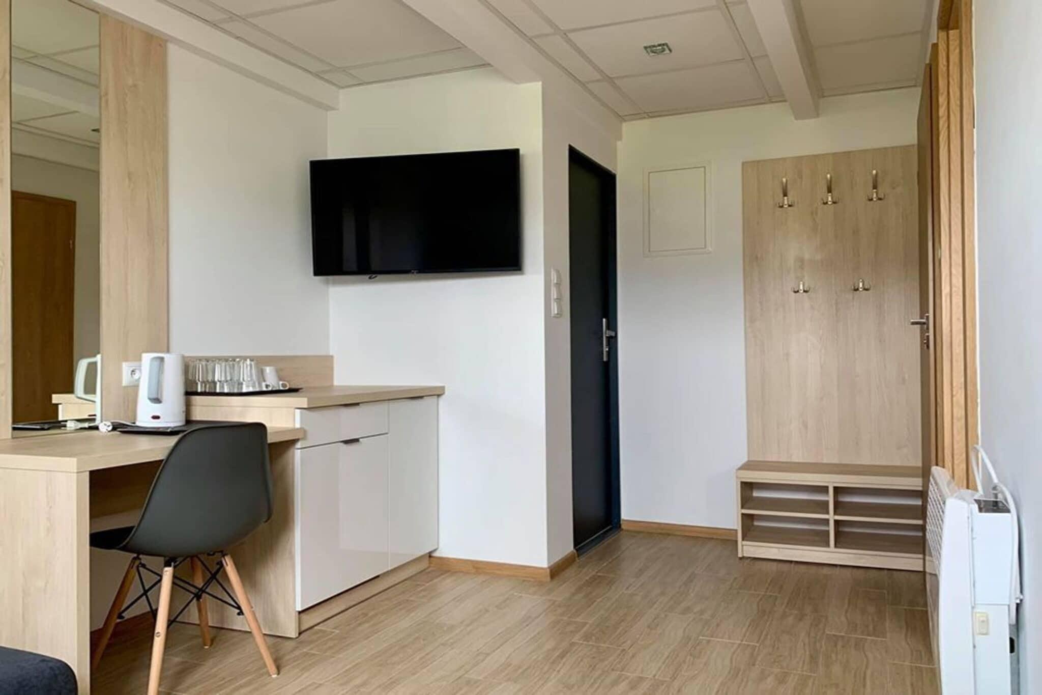 Fritidscentret er ideelt beliggende kun 100 m fra stranden ved siden af en fyrreskov. Centrum af en rolig kystby (Lazy), i umiddelbar nærhed af Jamno-søen. Et hyggeligt et-plans sommerhus med terrasse. Der er et sæt havemøbler på terrassen. Huset har 2 værelser. Stuen (TV og bord med stole, udklapbar 2-personers sofa) er forbundet med køkkenet. Soveværelset har 2 enkeltsenge. Badeværelse med bruser. Elvarme på badeværelset. Trådløst internet er tilgængeligt. Det velholdte, indhegnede område af centret tilbyder gæsterne rig infrastruktur: legeplads, parkeringsplads, havepavillon, bordtennis, sportsplads, cykeludlejning. Fælles vaskemaskine (mod betaling). Der er også en restaurant, hvor du kan bestille både morgenmad og aftensmad. Prisen for opholdet inkluderer: sengelinned, håndklæder, vandforbrug, internet, parkering, slutrengøring. Barneseng og høj stol (på forespørgsel). Seværdigheder i området: Den smukke strand ved havet ligger kun 100 m væk I umiddelbar nærhed kan du finde mange rekreative faciliteter, restauranter og caféer. I nærheden af centrum er der den internationale cykelrute R-10, som giver dig mulighed for nemt og bekvemt at komme på cykel til andre nærliggende kystbyer: Mielno, Mielenko, Chlopy (en lille, historisk fiskerby), Sarbinowo, Gaski. Centret ligger i umiddelbar nærhed af søen Jamno. I nabolandet Mielno kan du leje vandudstyr (pedalbåde, kajakker, ro- og sejlbåde). Her er også fiskepladser.