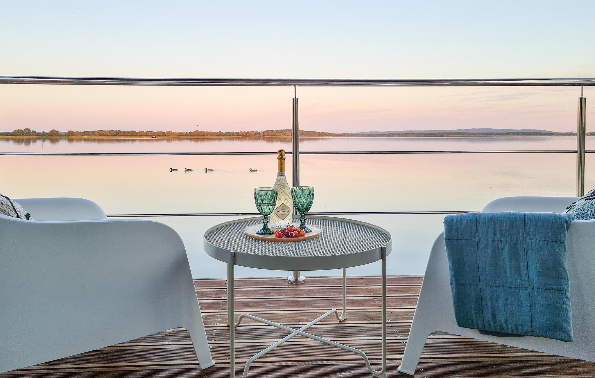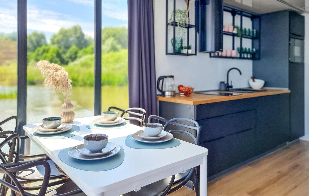 Se frem til en helt særlig boligoplevelse på denne moderne husbåd på den smukke sø Jamno.