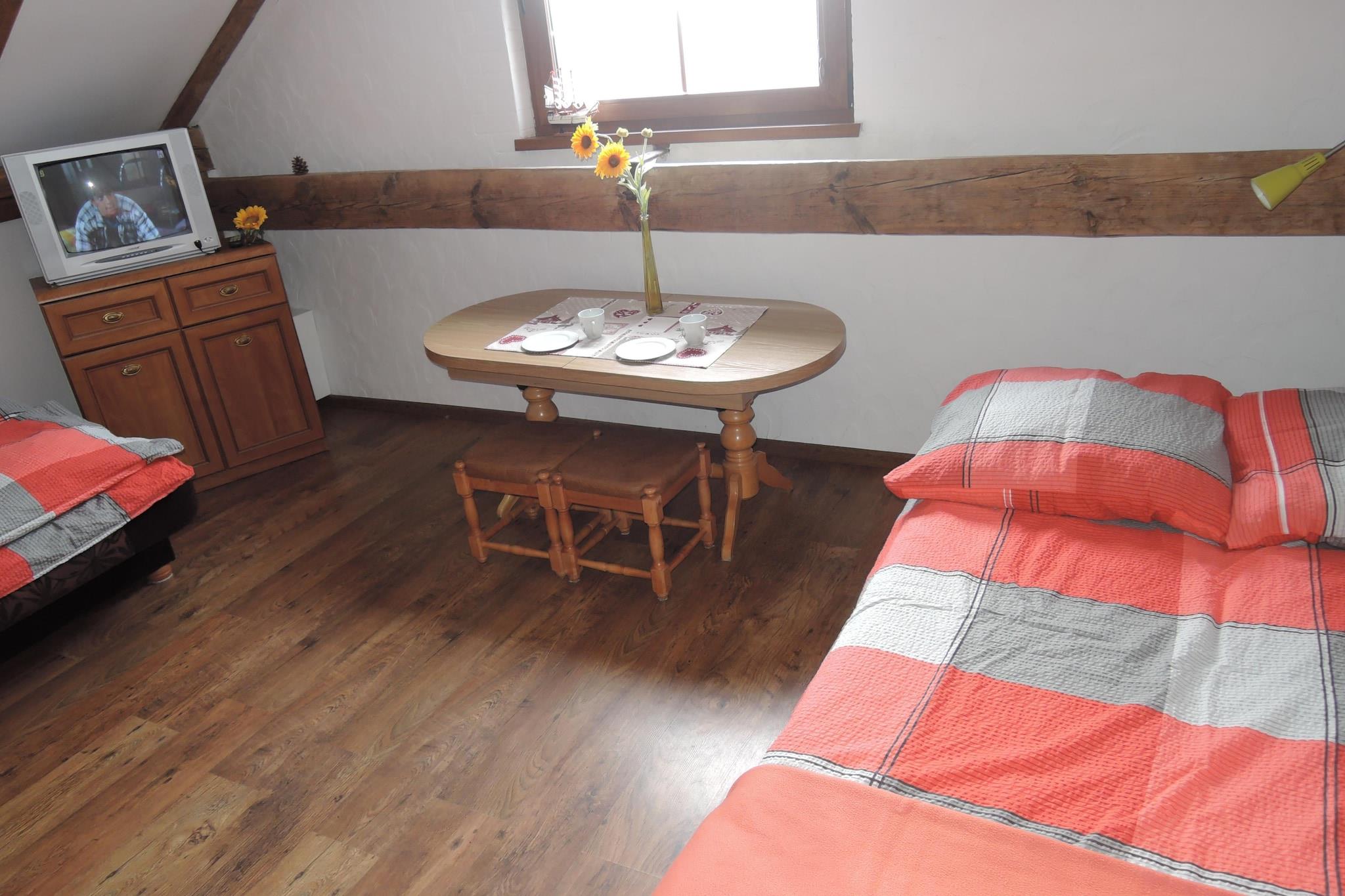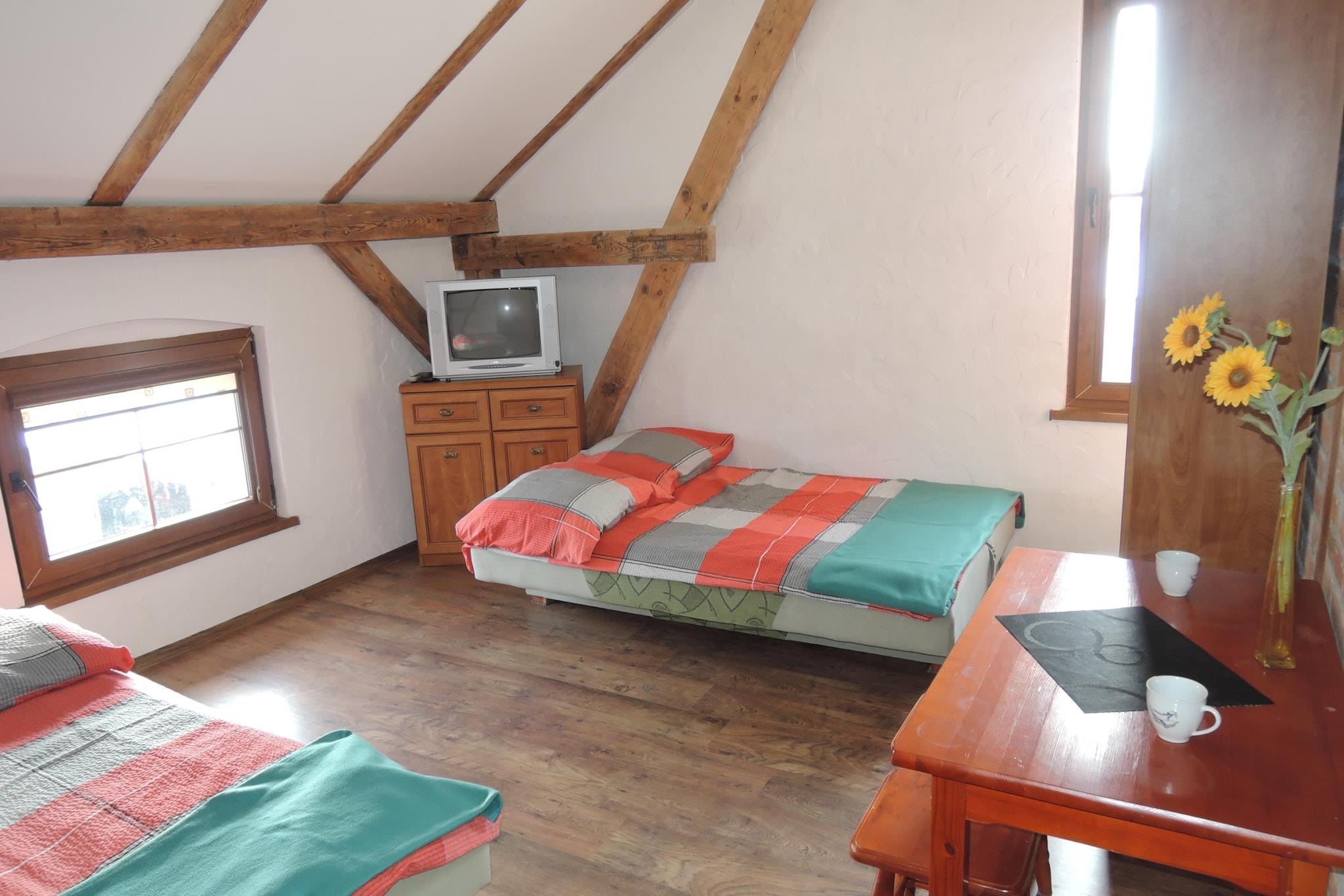Dette store dobbelthus på 200 kvadratmeter er ideelt til store familier eller venner og til i alt 14 personer. Det har 2 etager, 7 soveværelser hver med 1 TV inkl. Og 6 badeværelser, en kæmpe naturgrund på 3000 kvadratmeter til eksklusiv brug er også tilgængelig. Her kan du bo roligt og huset er ideelt at slukke. Det er kun 4 km til Østersøen, her finder du en rummelig og ren strand. Karnice er navnet på en landsby og sæde for et landsamfund i Vestpommern i Gryficki-distriktet. Seværdigheder i landsbyen er kirken fra det 15. århundrede. Aktiviteter i nærheden: Østersøen er kun 4 km væk, Niechorze / Host tilbyder en meget rummelig og ren strand med meget lyst, fint sand; Nyd din dag. Hovedattraktioner i Niechorze / Host er fyrtårnet fra 1866, havfiskermuseet og miniatureparken med fyrtårne. De lokale naturforhold har været kendt af aktive turister i mange år. Havstrømmene med lavvandede pletter giver ideelle betingelser for kitesurfing. Lystfiskere vil også finde et paradis ved Eiersberger See. De omkringliggende skove er også ideelle til vandre- og cykelture.