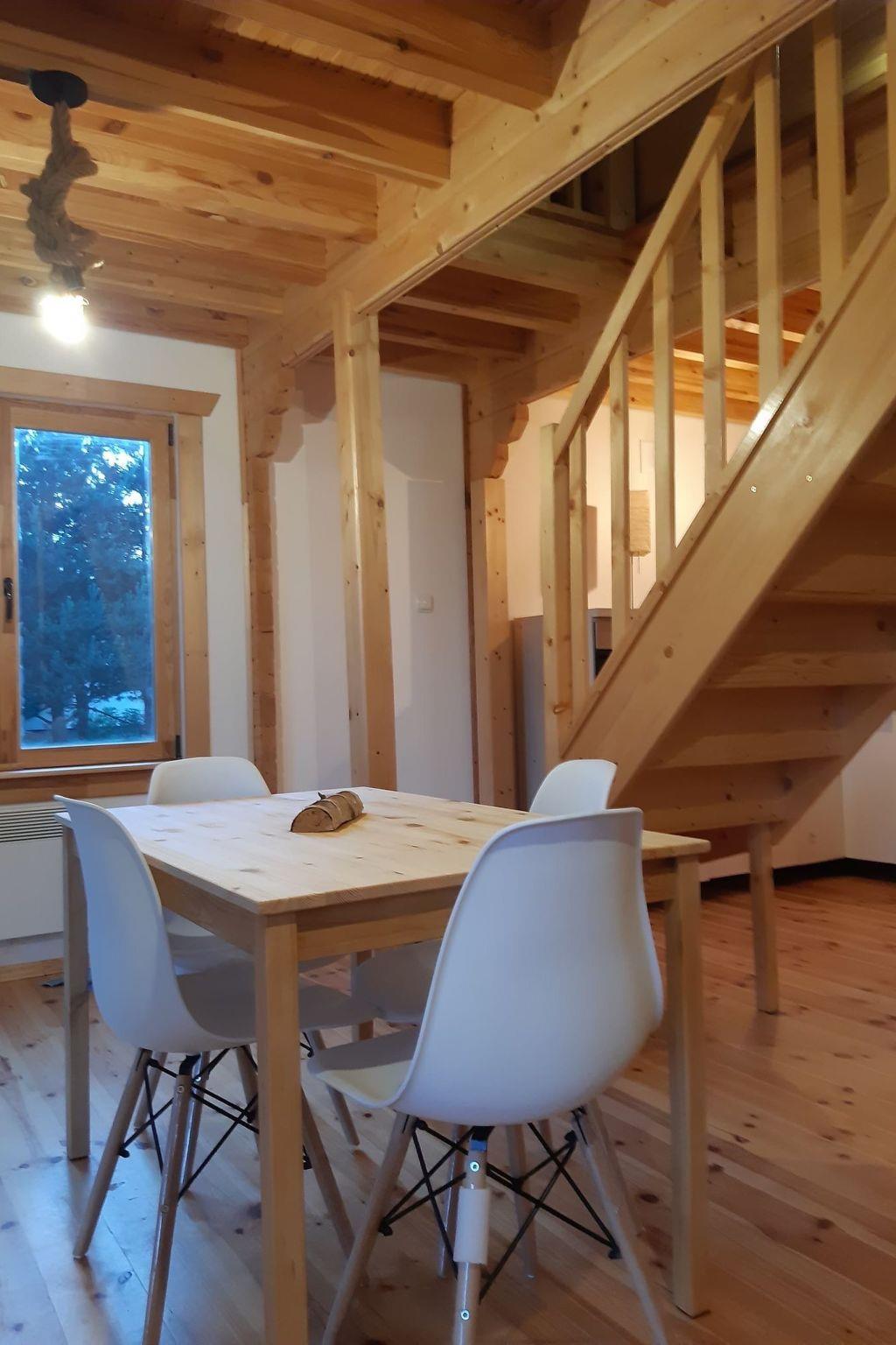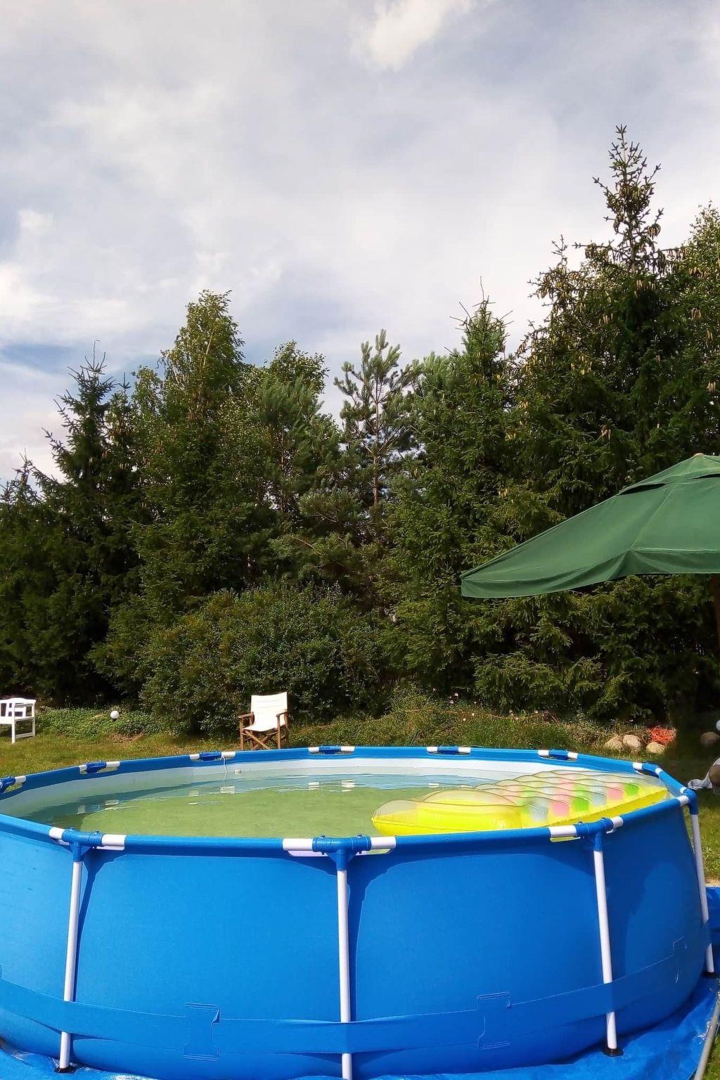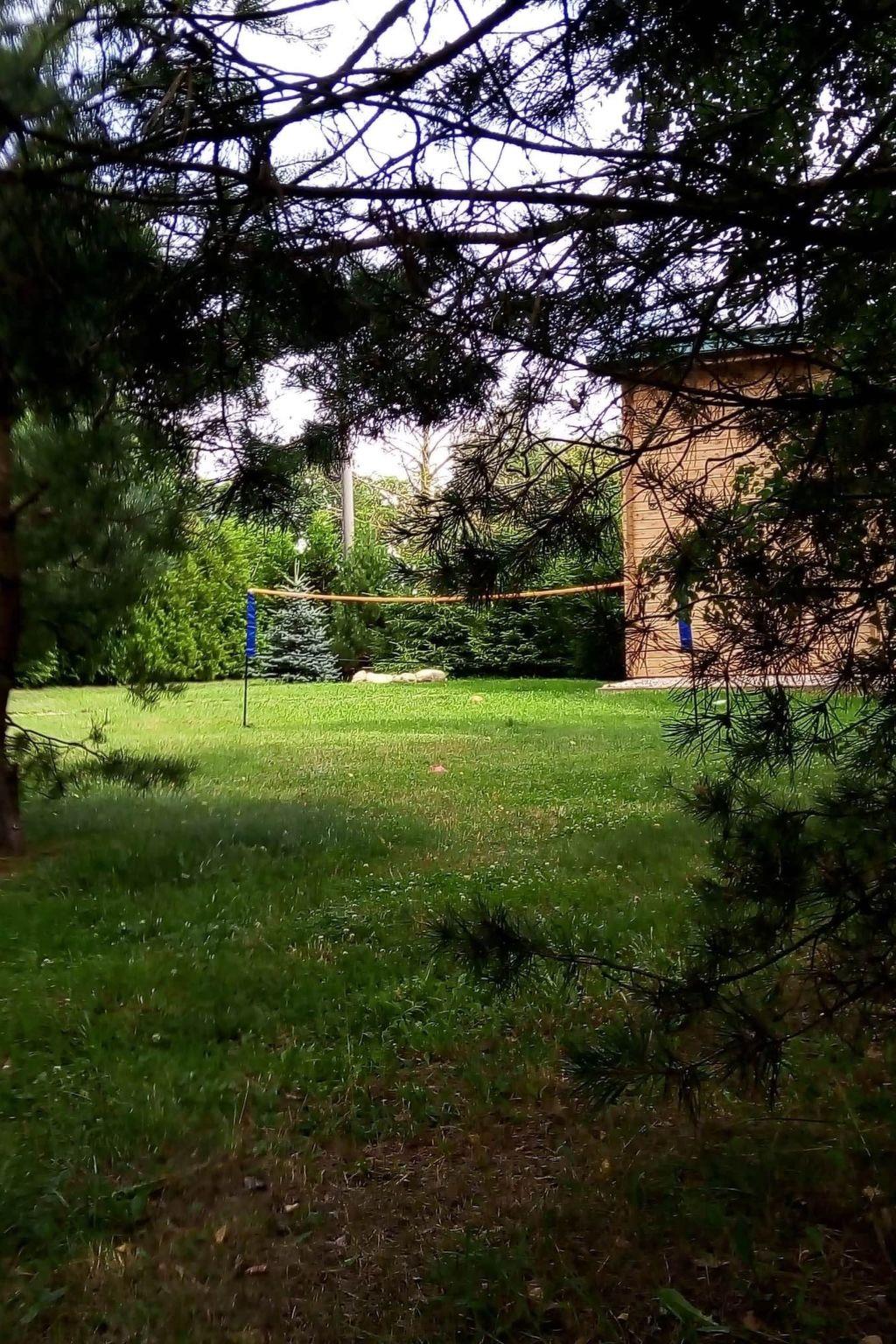 There is a large land area of 3000 metres, shared with the other house (the owner lives in the area). There is garden furniture, deckchairs, barbecue, 2 bicycles for adults and 1 for a child, hammock, garden rocking chair, trampoline, frame pool in summer. In the area there is a place and a net for handball or badmington, a place for a bonfire and a large supply of brushwood in the price. On cloudy days you can play darts and ping-pong, table football in the house. In addition, it is possible to hire a pedal boat or ice-boat approx. 400 m (extra fee). From the living room you have access to the terrace, which offers a view of the surroundings, a wide panorama of forests and fields. The terrace is located on the south side so it is sunny all day long. The house has its own solar panels for heating water and a second source of water heating in case of a lack of sunshine on cloudy days.