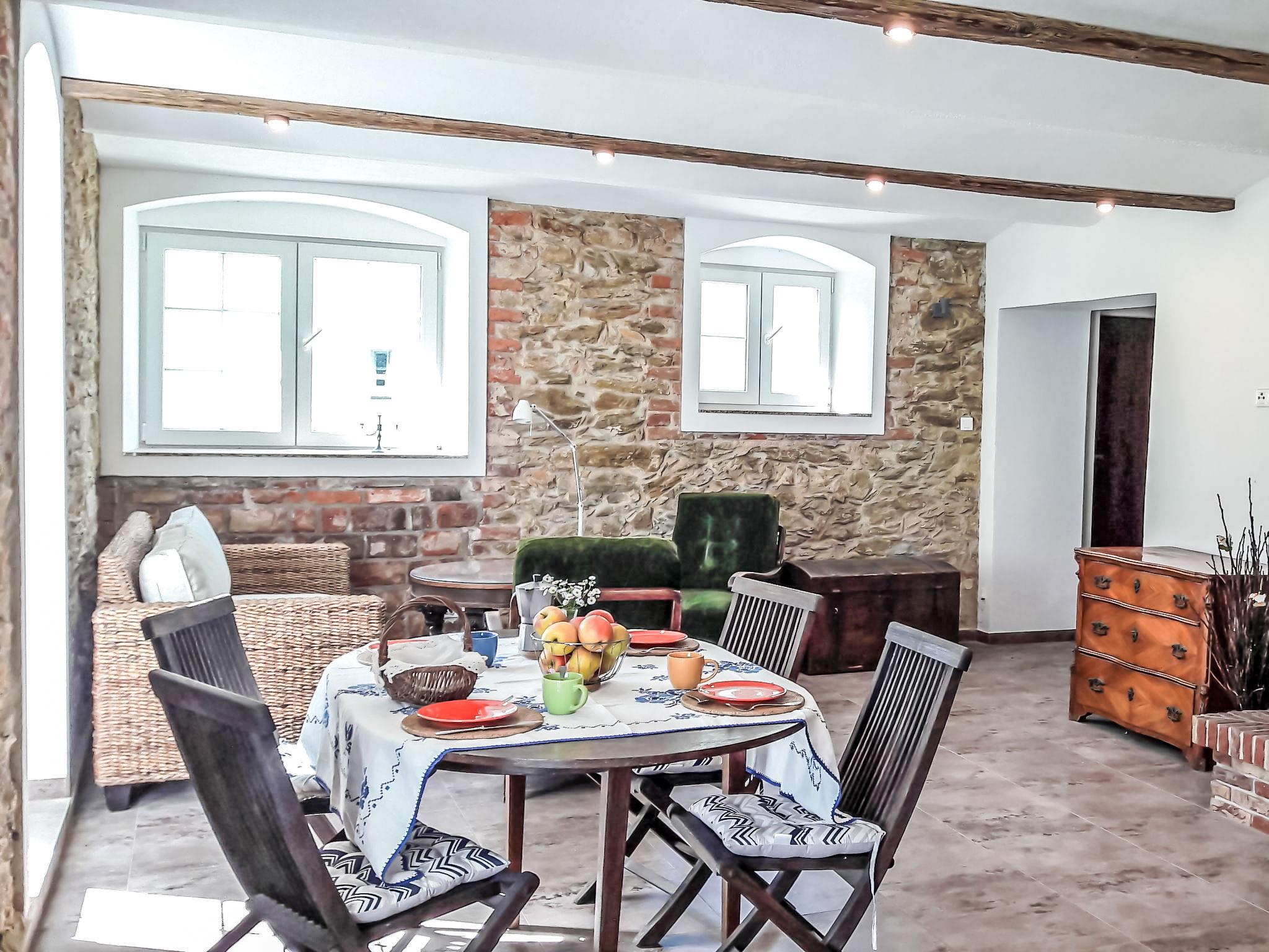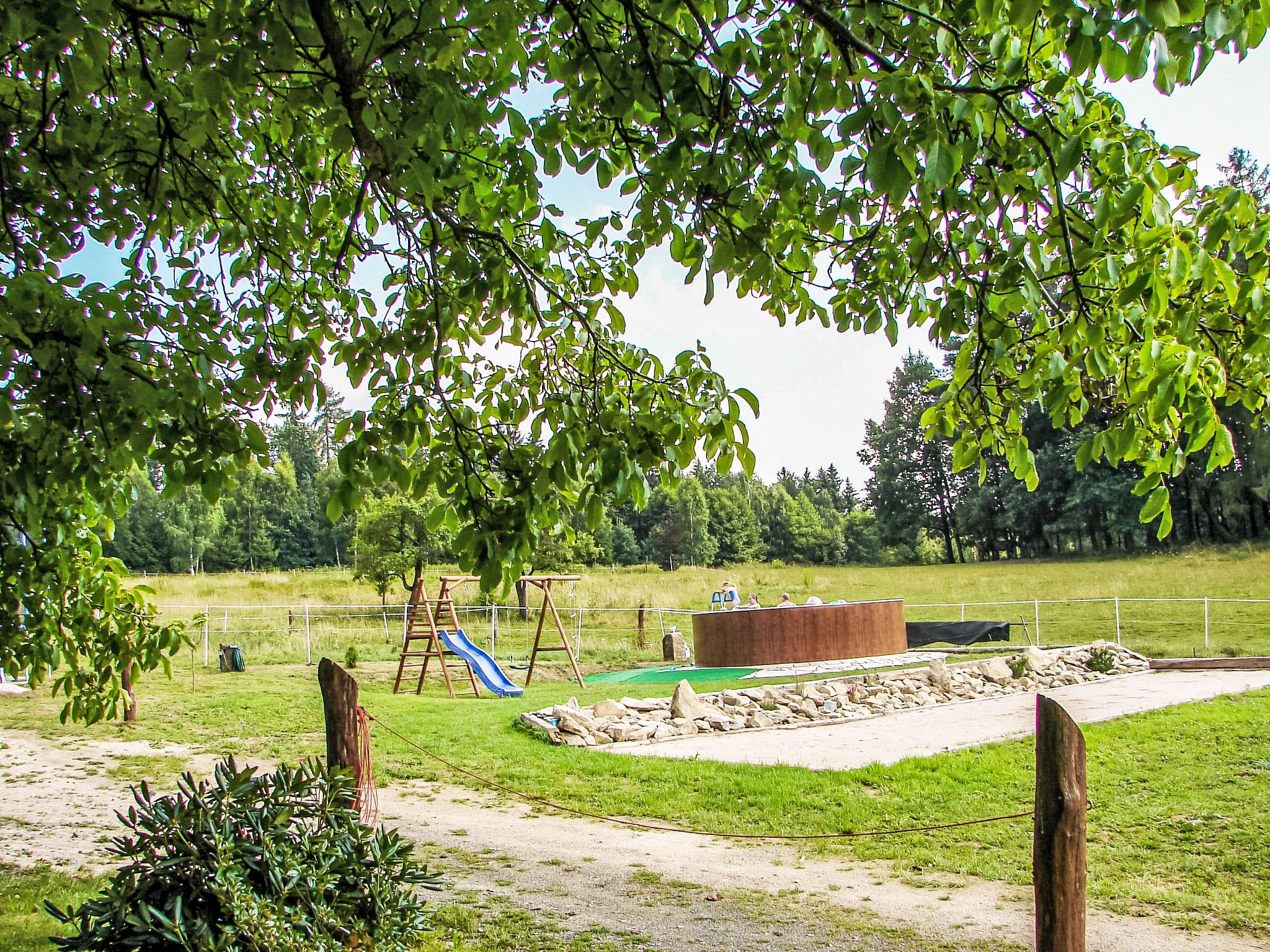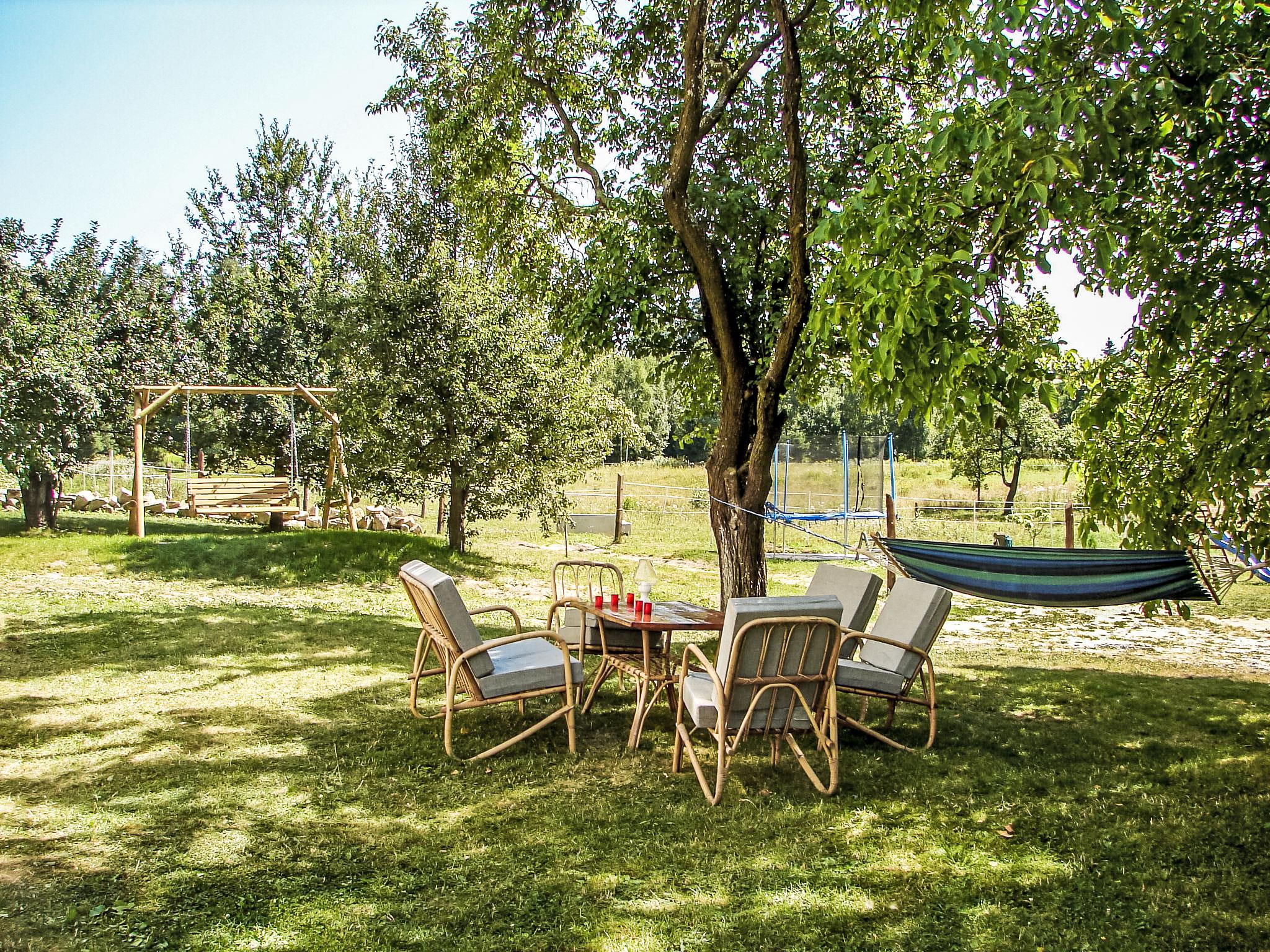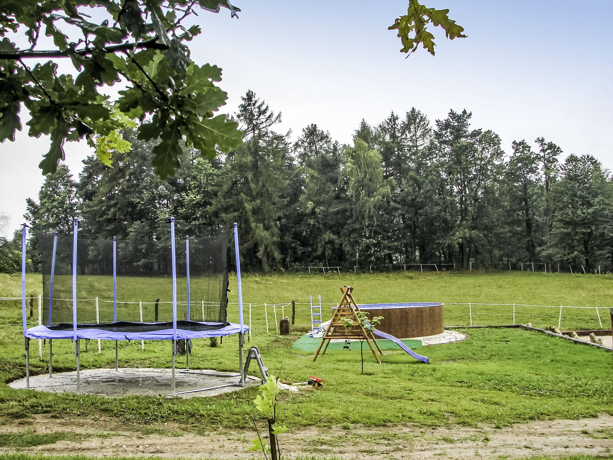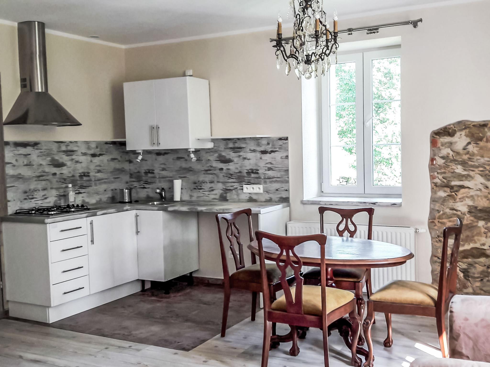 Beautiful, comfortable farmhouse "Dom na Skraju", detached, built in 1880, renovated in 2018. Outside the resort, in a quiet, sunny position, in the countryside. For shared use: property 5'000 m2 (fenced). Private: park 2'000 m2, garden 1'000 m2, meadow 2'000 m2, lawn for sunbathing, swimming pool round (4,6 m diameter, depth 110 - 110 cm, seasonal availability: 01.Jun. - 30.Sep.). Volleyball, badminton, fireplace, barbecue house, children's playground (swing). In the house: trampoline, central heating system. Available: bicycles (4). Parking at the house on the premises. Supermarket 2 km, restaurant 2.5 km, bus stop 50 m. Gondola lift 23 km, slopes 23 km. Nearby attractions: Zamek Czocha w Suchej 21 km, Termy Cieplickie 28 km, Muzeum Ceramiki w Boleslawcu 32 km. Well-known lakes can easily be reached: splywy kajakowe i pontonowe 16 km. Please note: car recommended.