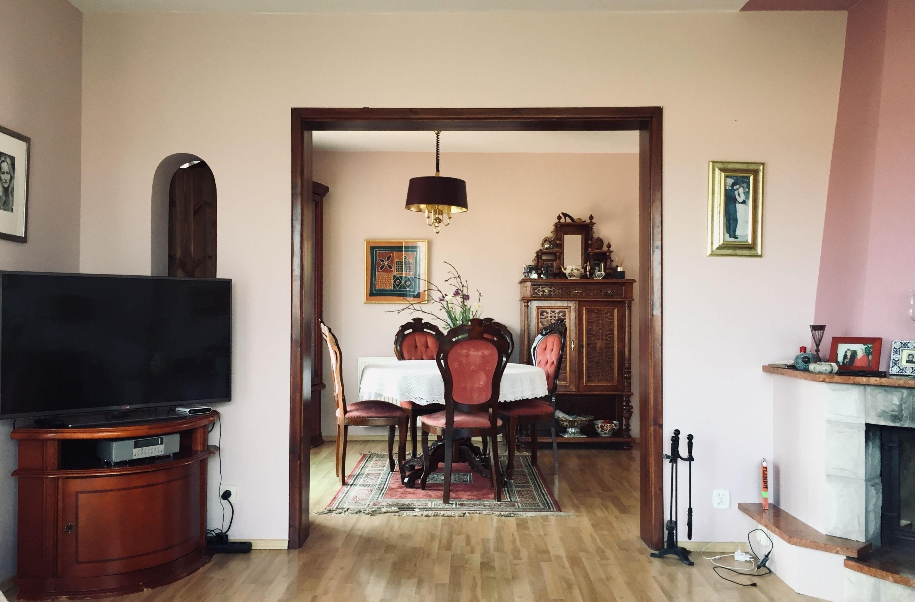 " Dieses hübsche und gut ausgestatte Ferienhaus liegt in einem Dorf, auf einem großen Grundstück nur ca. 4 km von Sierakowice. Es wurde sehr komfortabel und praktisch eingerichtet. Wohnzimmer,Ess-und Küchenabteilung sind architektonisch interessant miteinander verbunden. Besonders hübsch haben Sie Aussicht von der 60 qm großen Terrasse auf die Landschaft und nähe gelegenen ca 250 m See. Das Haus steht ganzjährig zur Verfügung. Damit Ihnen gemütlich warm wird, gibt es einen Kamin. In unserer finnischen Holzsauna kommen Sie richtig ins Schwitzen der Yoga-Ruheraum ca. 60 m2 sorgt für die etwas “andere” Abkühlung und lädt Sie zu entspannten Momenten ein. Hausinformation: ***** Ferienhaus mit 160 m2 . für 4-5 Personen, 1000m2 garten, Garage, offene Terrasse. Ausstattung: Kamin, 1 TV, Sat-TV deutsche Kanäle, Stereoanlage, Geschirrspüler, Kühlschrank, Kaffeemaschine, Dusche und 2 WC Küche warmes und kaltes Wasser, Gartenmöbel und Grill Räume und Aufteilung - Schlafzimmer 1: 2 Schlafplätze ( Doppelbett) - Schlafzimmer 2: 2 Schlafplätze ( Doppelbett ) - Wohnraum - Küche - Toilette - WC. warmes und kaltes Wasser - Badezimmer. Warmes und kaltes Wasser, 2 Duschen und Badewanne - Terrasse: offene Terrasse 60 m2 Entfernungen Einkaufsmöglichkeiten erste 2 km und Sierakowice 4 km S?upsk 30 km Lebork 30 km Sehenswürdigkeiten Danzig ca. 60 Km , ?eba 60 Km, Szymbark 25 Km
