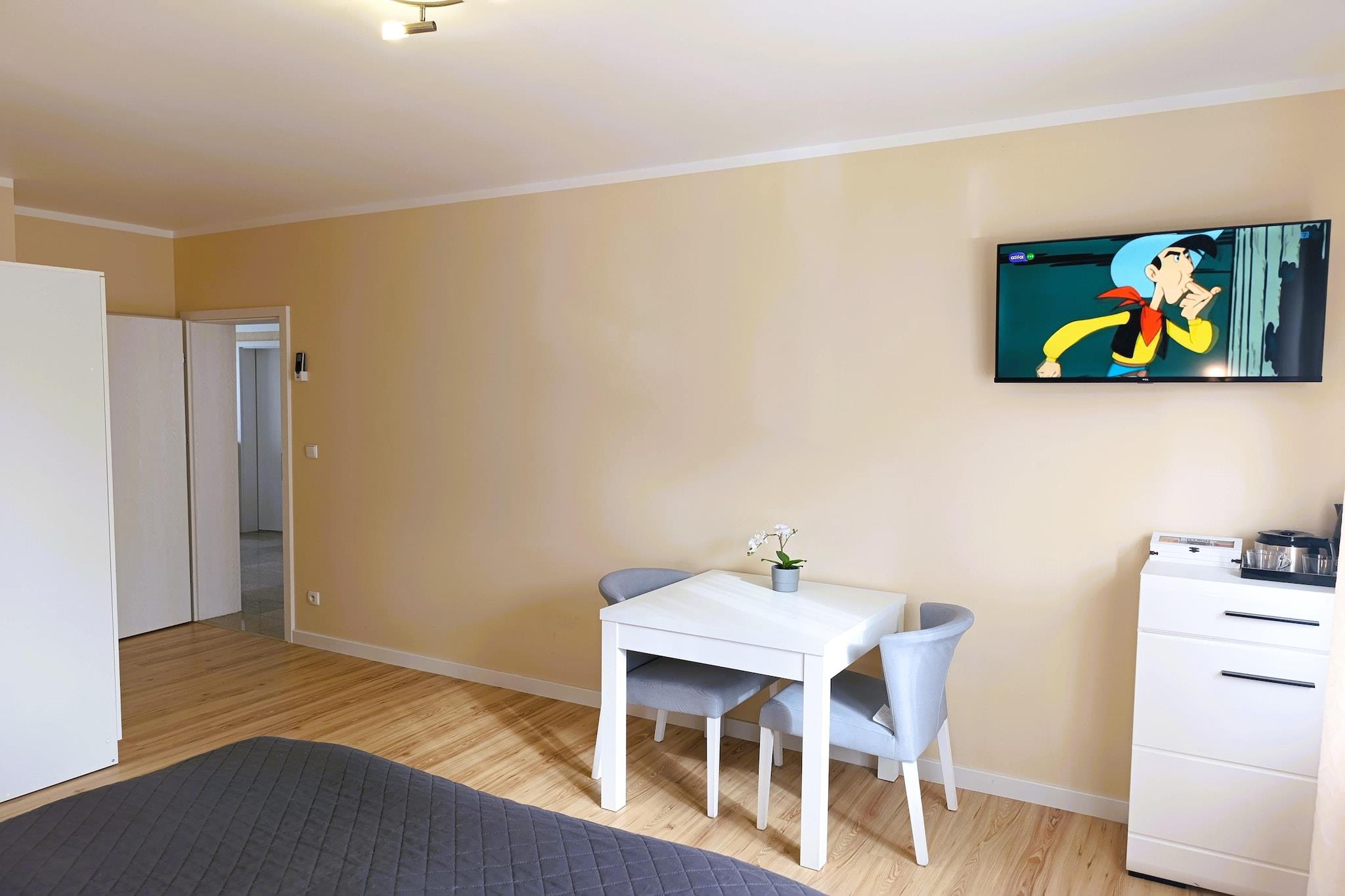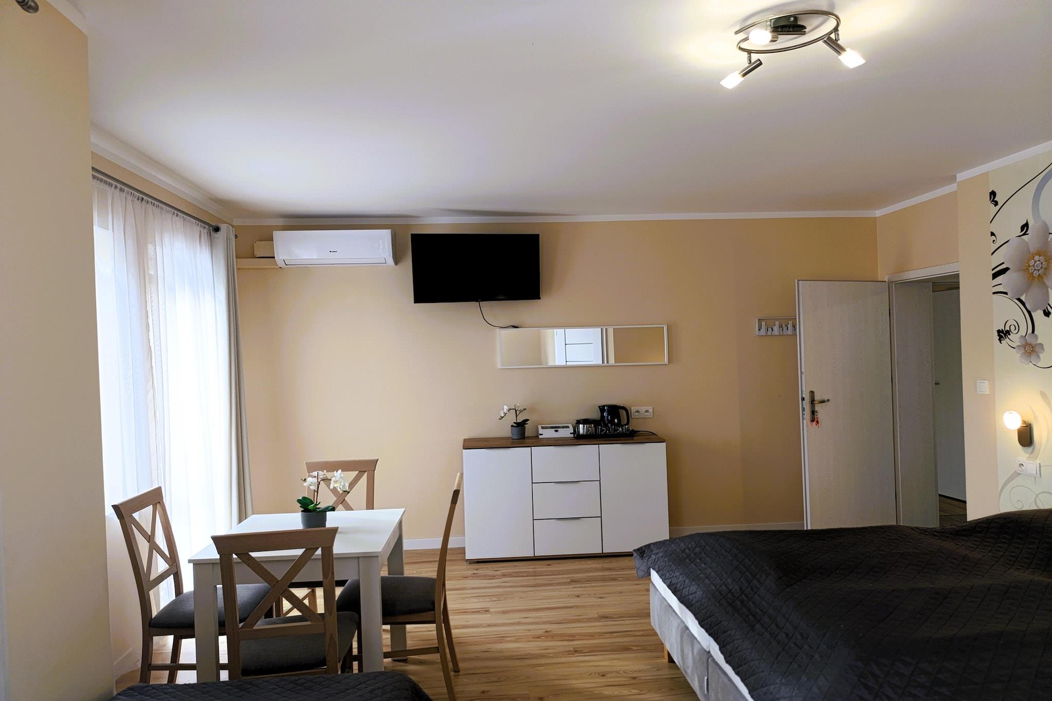 En komfortabel, stor ferielejlighed i Miedzywodzie med swimmingpool og jacuzzi til 9 personer. Gæsterne har adgang til tre rummelige soveværelser med komfortable senge, tre badeværelser og et fuldt udstyret køkken. En yderligere fordel er den udendørs, overdækkede, opvarmede swimmingpool og to jacuzzier (delt med andre gæster). Lejligheden har aircondition, adgang til bredbåndsinternet og Netflix. Gratis parkering er også tilgængelig for dem, der ankommer i bil. Miedzywodzie er en charmerende ferieby beliggende på Wolin-øen ved Østersøen. En af dens hovedattraktioner er dens smukke strande, som tiltrækker turister, der søger afslapning og sol. Der er talrige cykel- og vandrestier i området. Gæsterne kan også nyde en række forskellige vandsportsgrene, såsom windsurfing og kajaksejlads. Desuden gør nærheden til Wolin Nationalpark det til en perfekt destination for naturelskere.