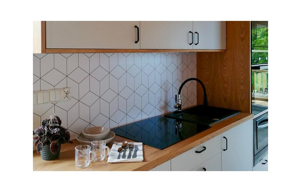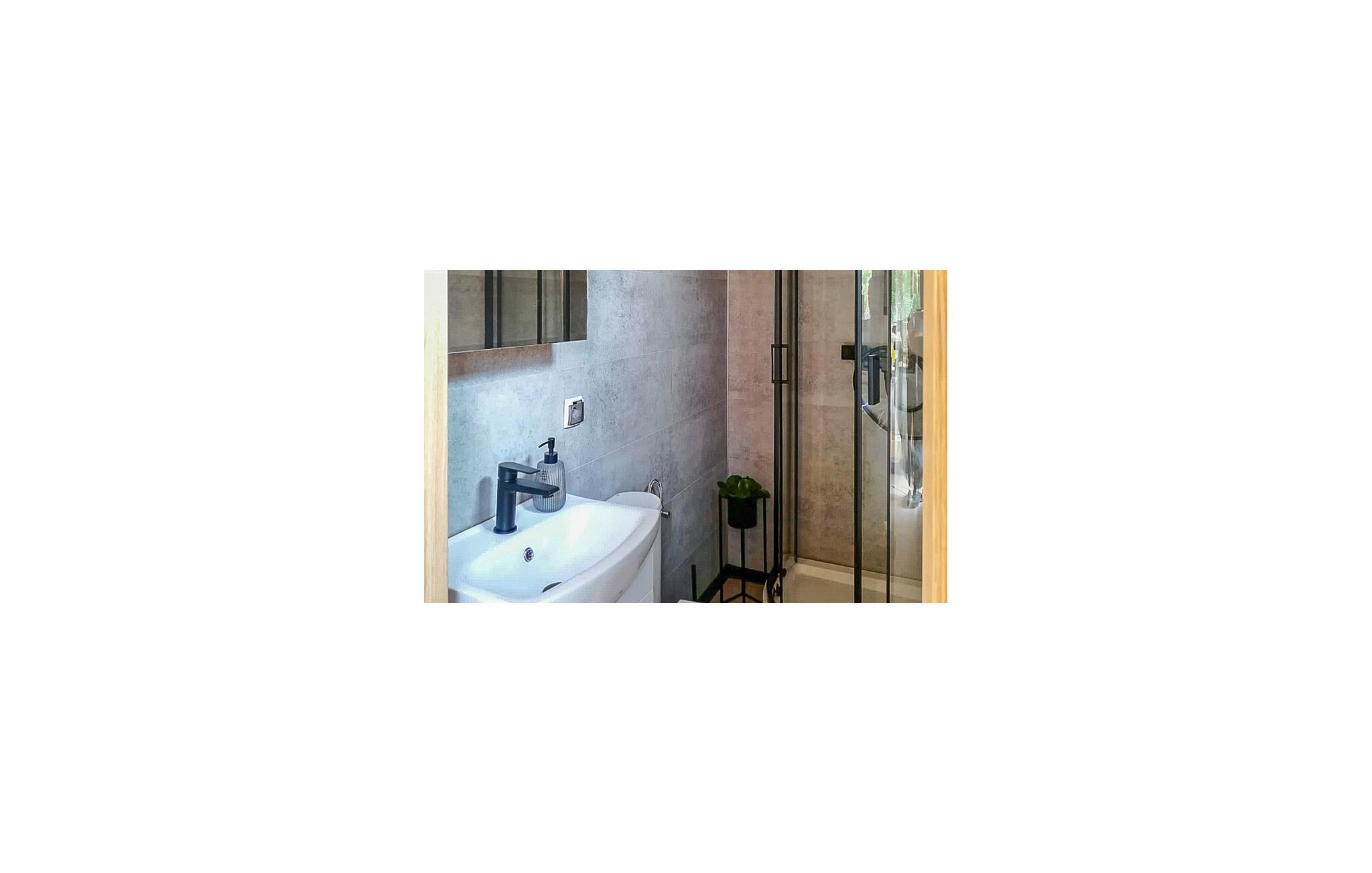 Nyd den unikke atmosfære i dette moderne tiny house med en rummelig terrasse og udsigt over Wicko Wielkie-søen. Den stilfulde indretning sikrer både komfort og hygge, og takket være den smarte rumopdeling udnyttes pladsen i den kompakte bolig optimalt. Et veludstyret tekøkken gør det nemt at tilberede lækre måltider, og den lille opholdsstue giver plads til afslappende stunder med familien.
