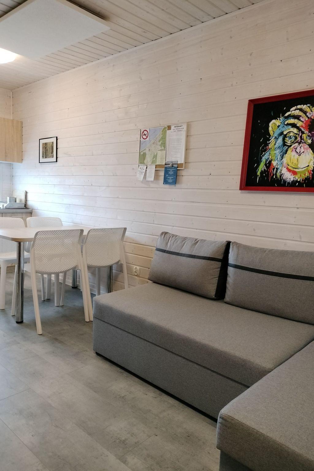 The interior of the house has been furnished with functionality and enjoyment in mind. There are two bedrooms, ensuring a comfortable rest after an adventurous day. The space is complemented by a bathroom with shower and a kitchen equipped with essential appliances such as a 2-burner cooker, coffee maker and kettle, allowing you to prepare your favourite meals even while on holiday.