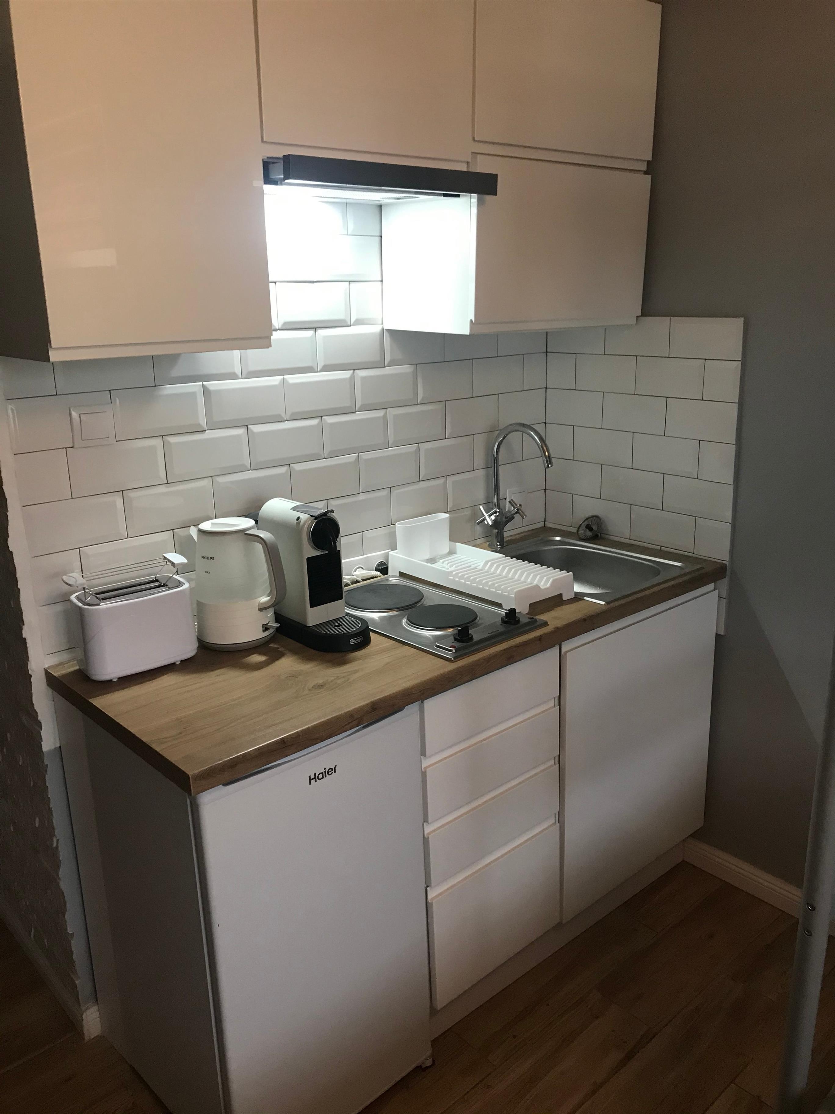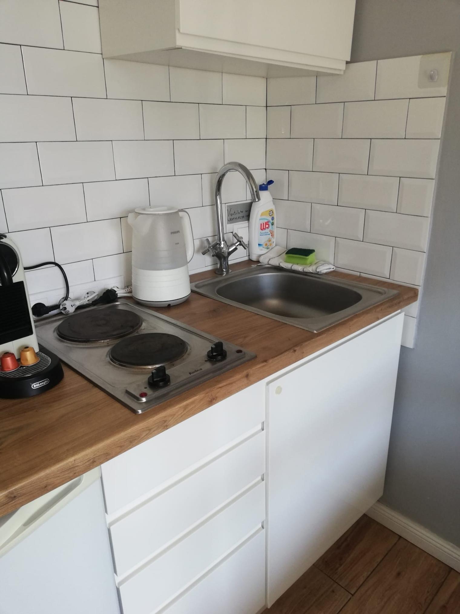- Kleine Küche mit 2 Herdplatten, Wasserkocher, Tee, Nespresso Maschine, Kaffee zum Selbermachen inklusive. Toaster vorhanden.