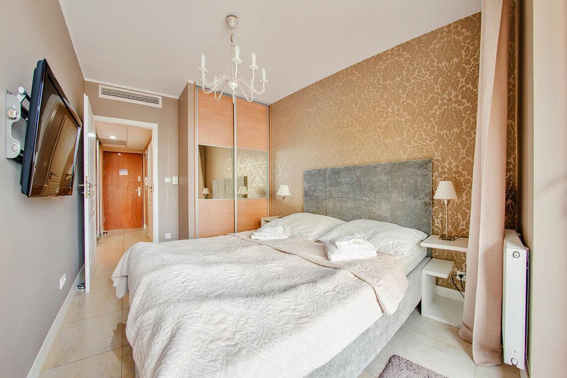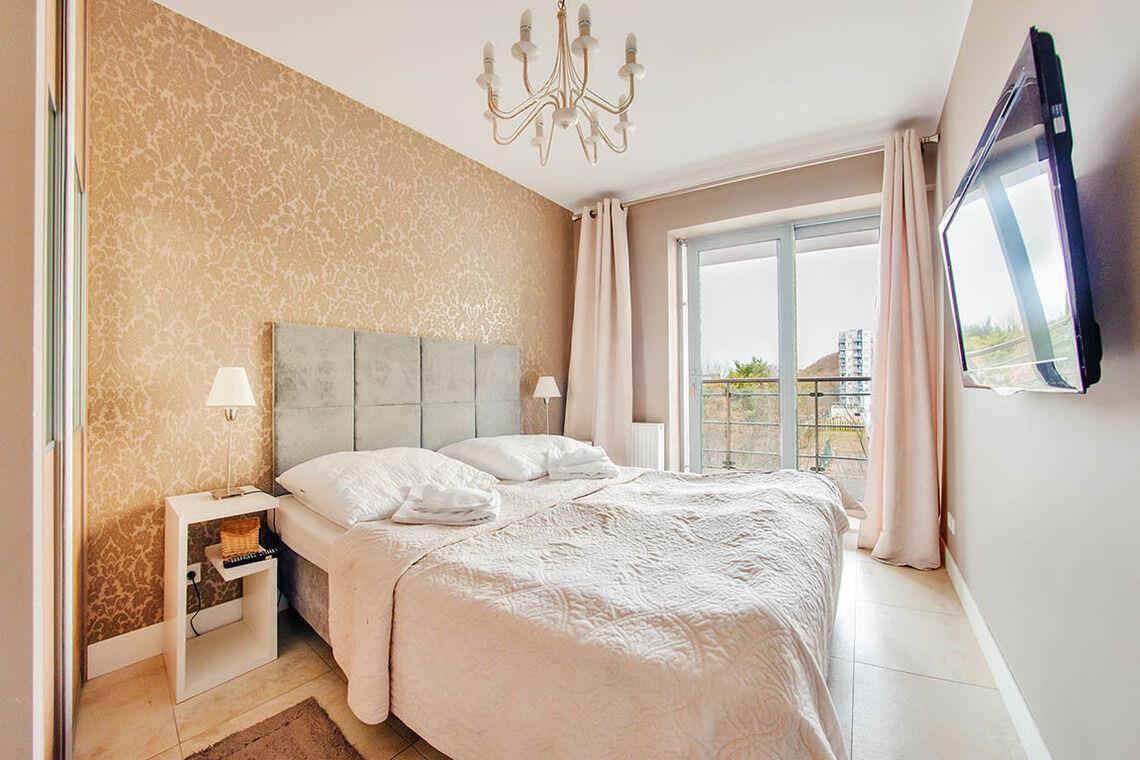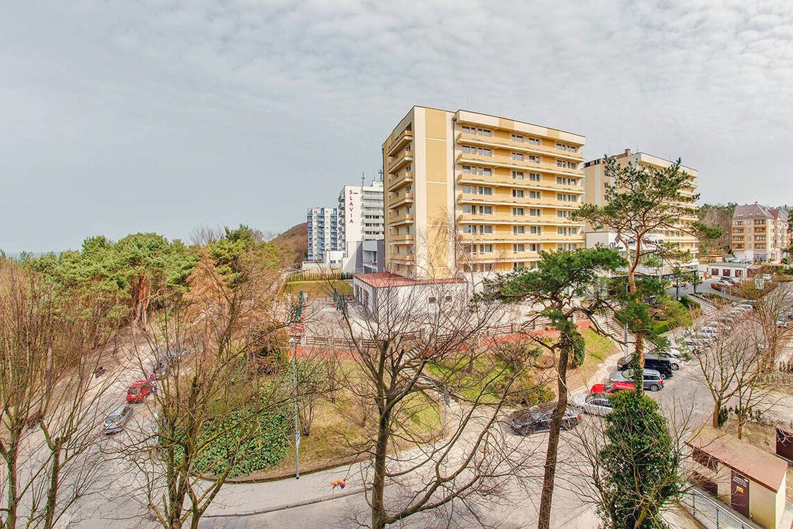 Im 12. Stock befindet sich eine öffentlich zugängliche Aussichtsterrasse, eine Sauna sowie ein Außenpool, der nur in der Sommersaison (von Mitte Juni bis Mitte September) geöffnet ist. Diese Vorzüge machen die Apartments in der Promenada Gwiazd sehr beliebt bei unseren Gästen, die gerne wiederkommen.