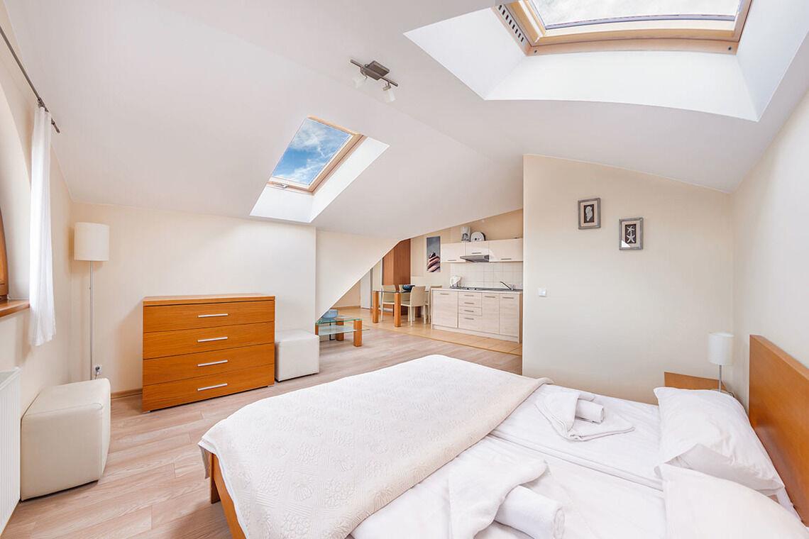 • Haustiere sind in der ausgewählten Wohnung erlaubt. Die Kosten für den Aufenthalt mit einem Haustier betragen 40 PLN pro Tag.