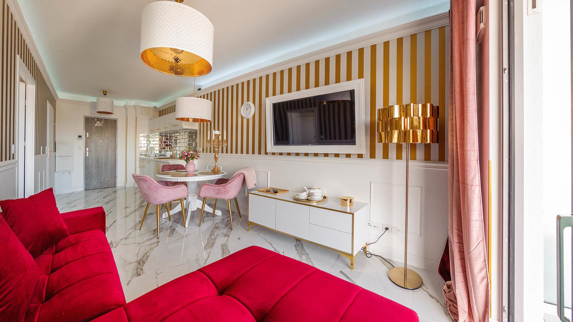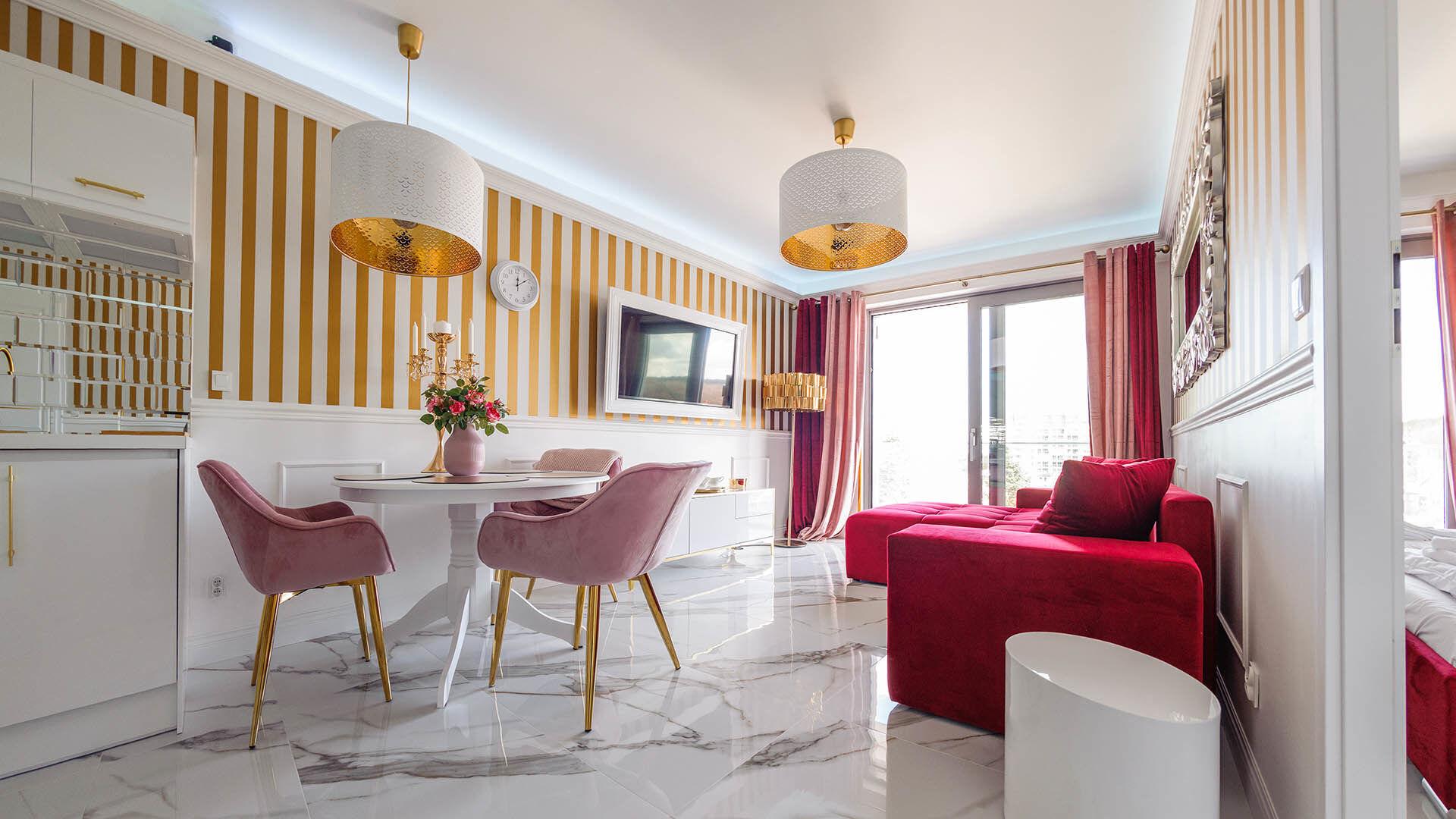 • Haustiere sind in der ausgewählten Wohnung erlaubt. Die Kosten für den Aufenthalt mit einem Haustier betragen 40 PLN pro Tag.