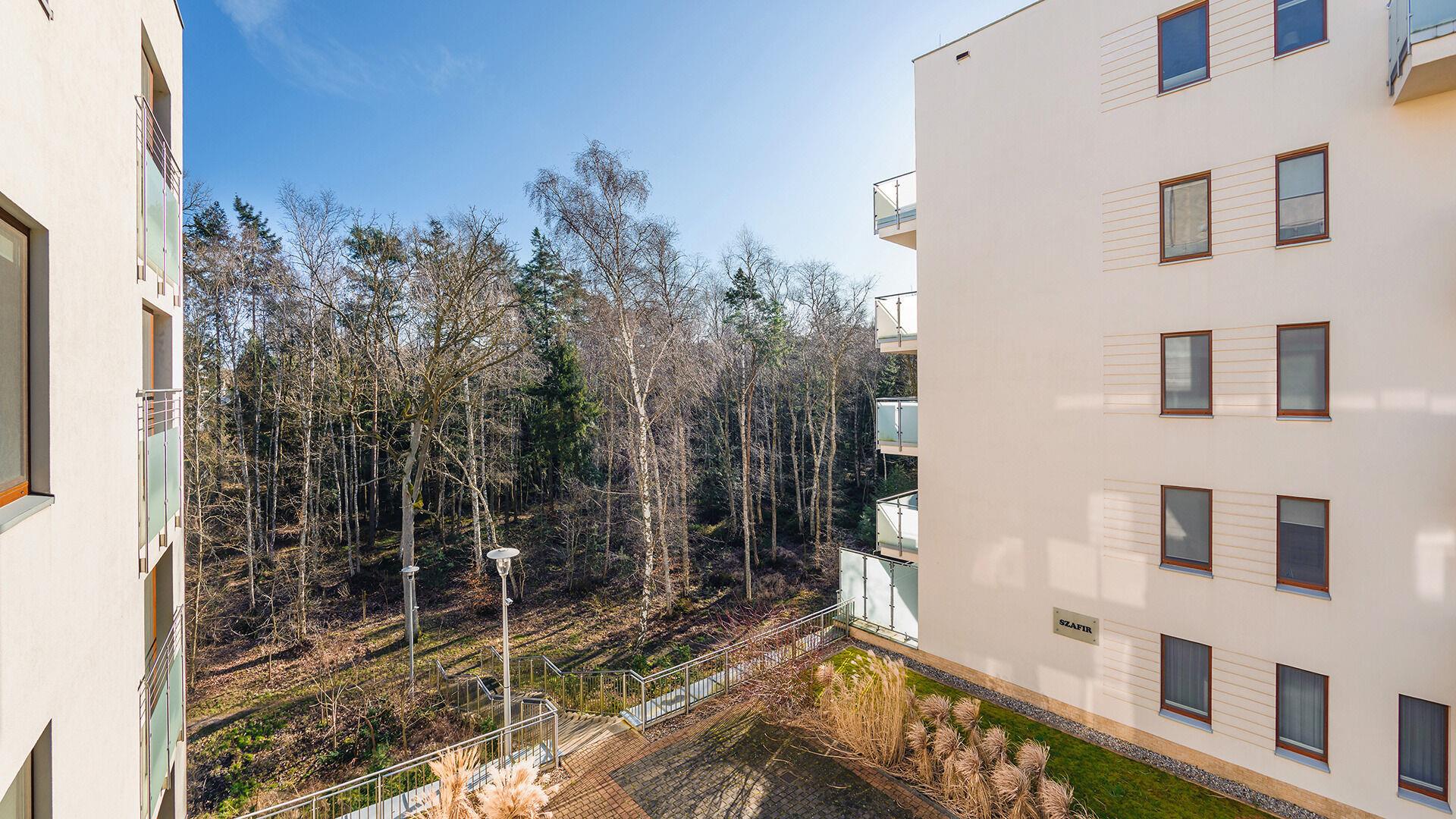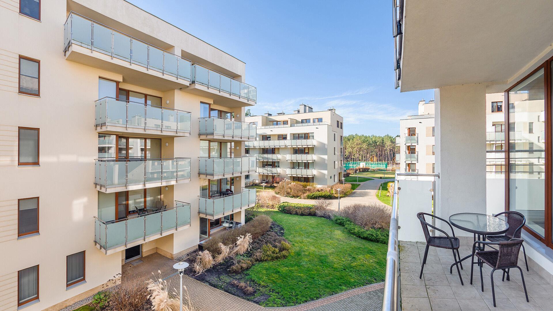 Aquamarina ist ein modernes Apartmentkomplex. Es befindet sich direkt am Wald, was die Nähe zur Natur fördert. Um den Strand zu erreichen, muss man nur eine Düne überqueren. Die Lage ist ideal für Menschen, die Ruhe und Entspannung schätzen. Die Apartments sind komfortabel eingerichtet und ausgestattet, die Fenster der meisten von ihnen sind zum Wald hin ausgerichtet.