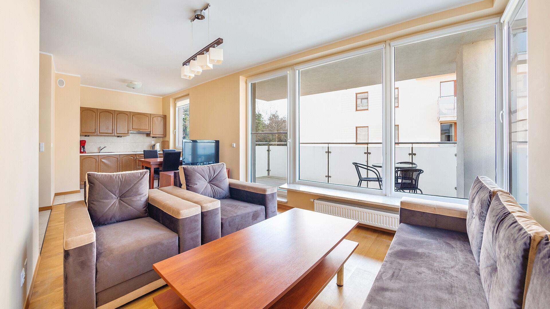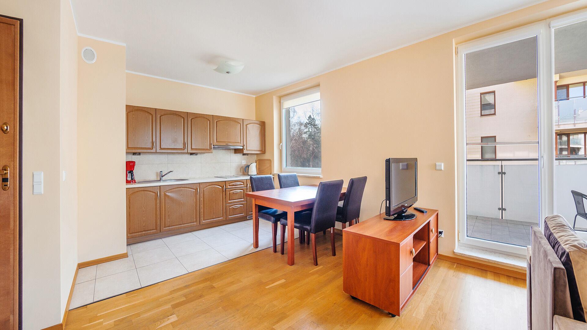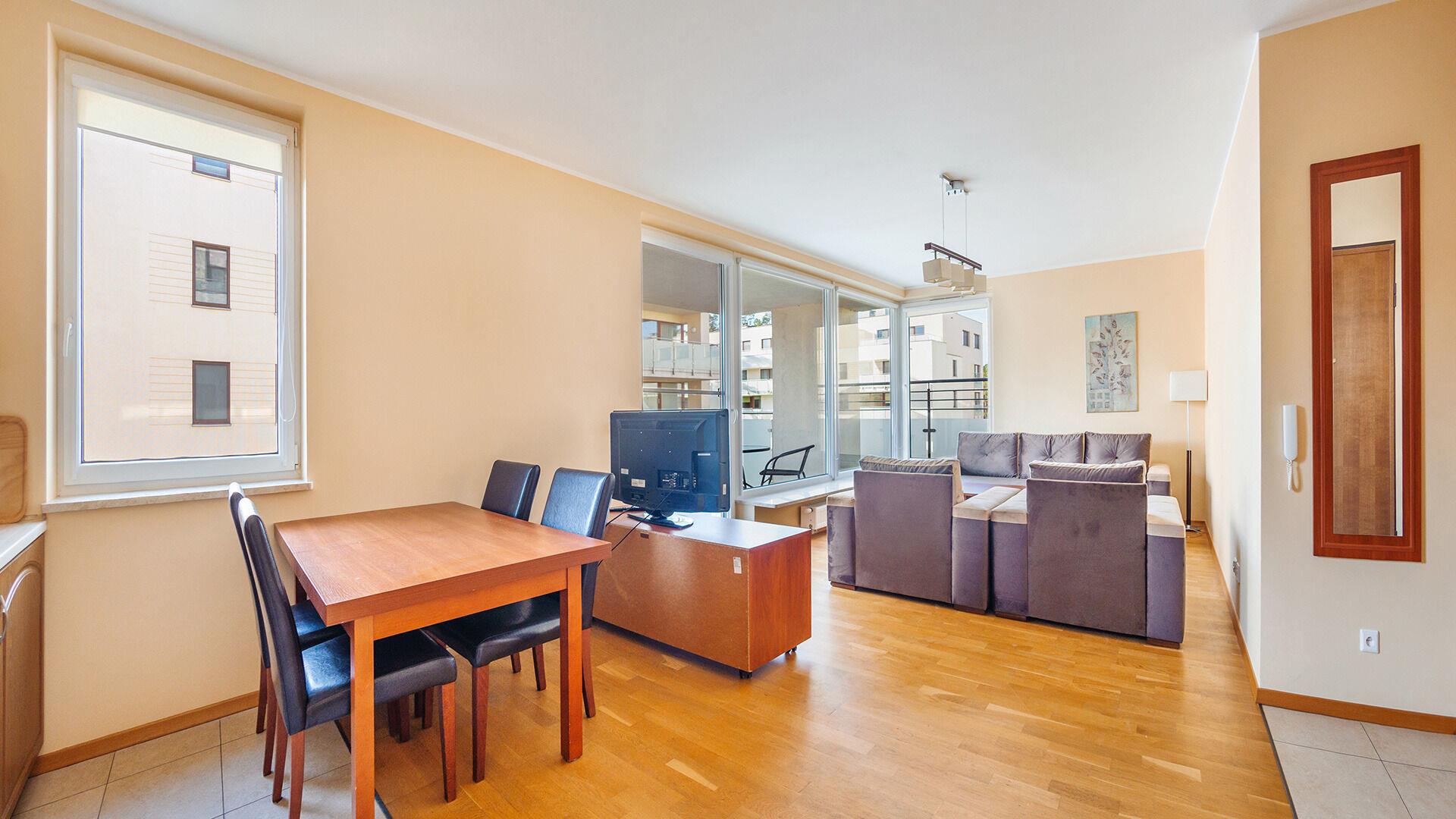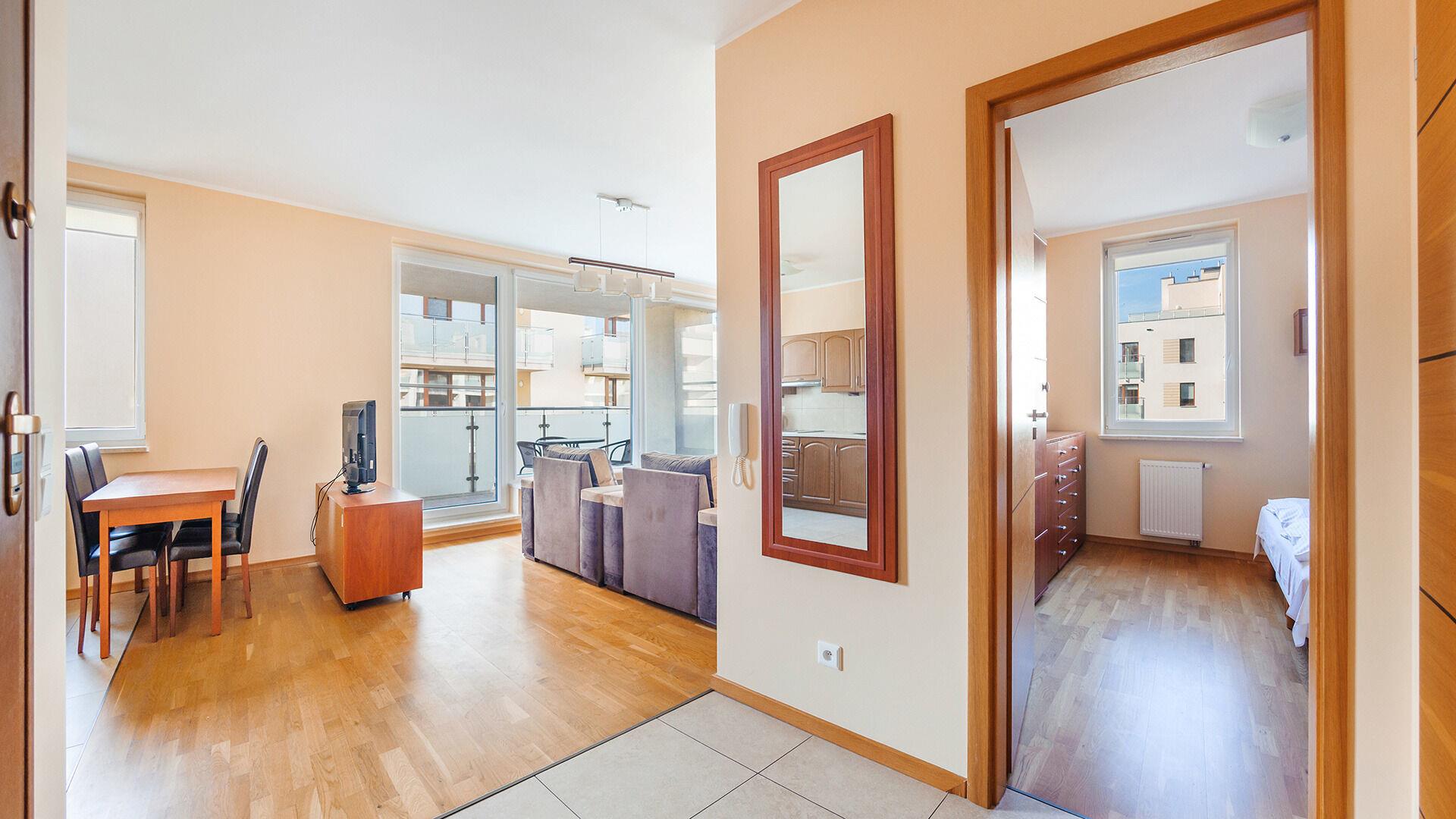 • Haustiere sind in der ausgewählten Wohnung erlaubt. Die Kosten für den Aufenthalt mit einem Haustier betragen 40 PLN pro Tag.