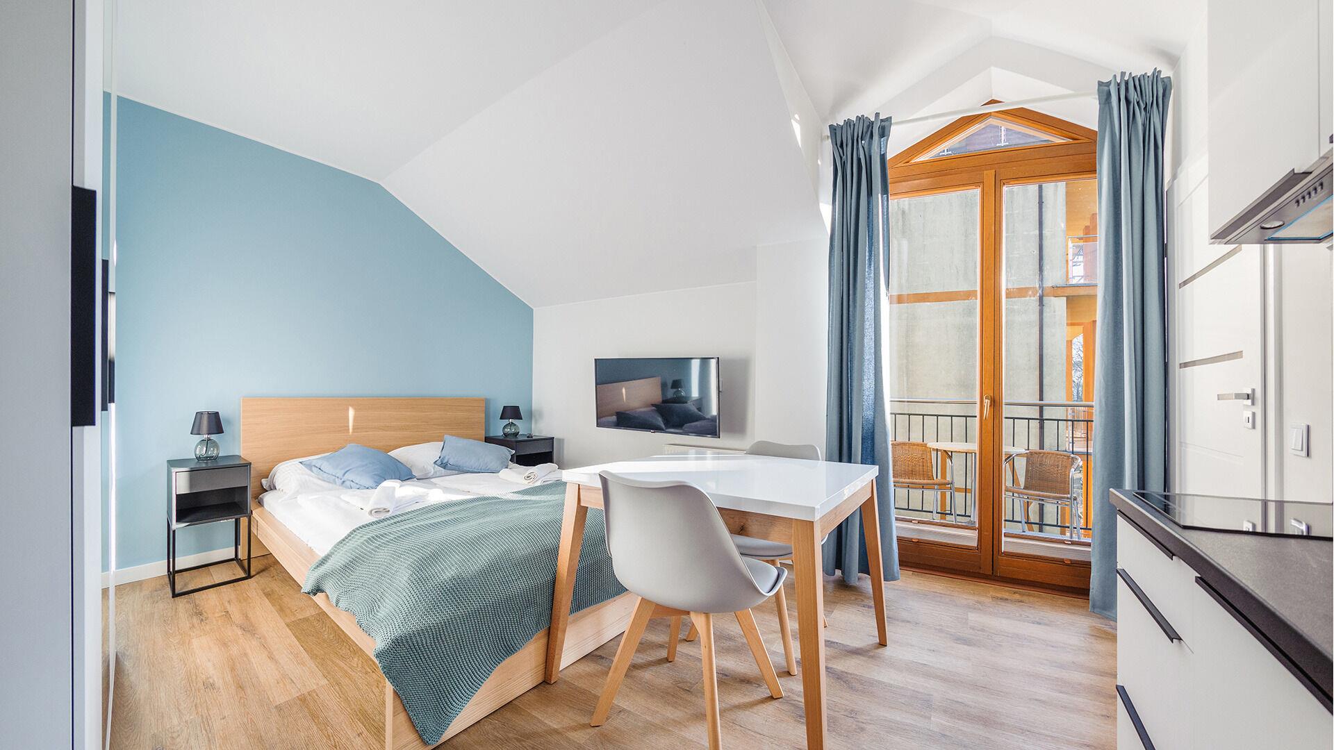 • Haustiere sind in der ausgewählten Wohnung erlaubt. Die Kosten für den Aufenthalt mit einem Haustier betragen 40 PLN pro Tag.