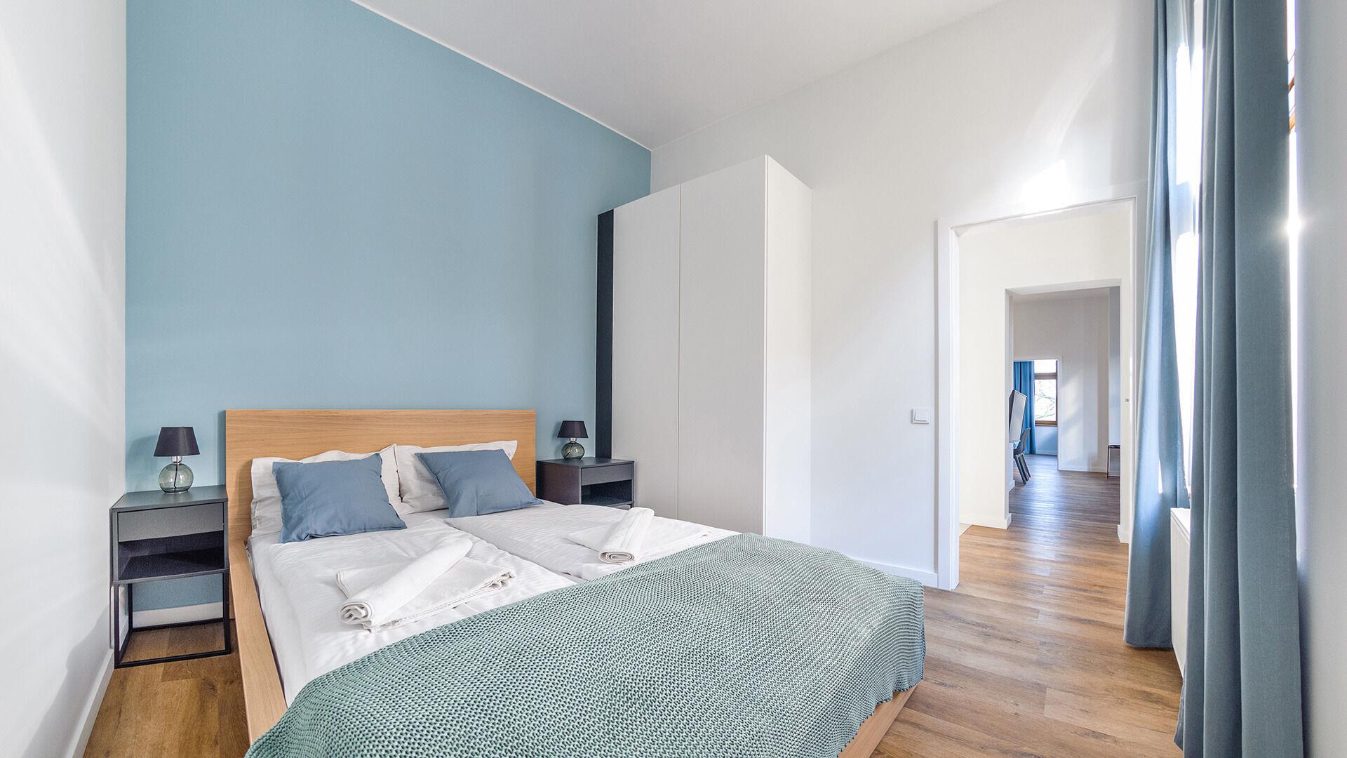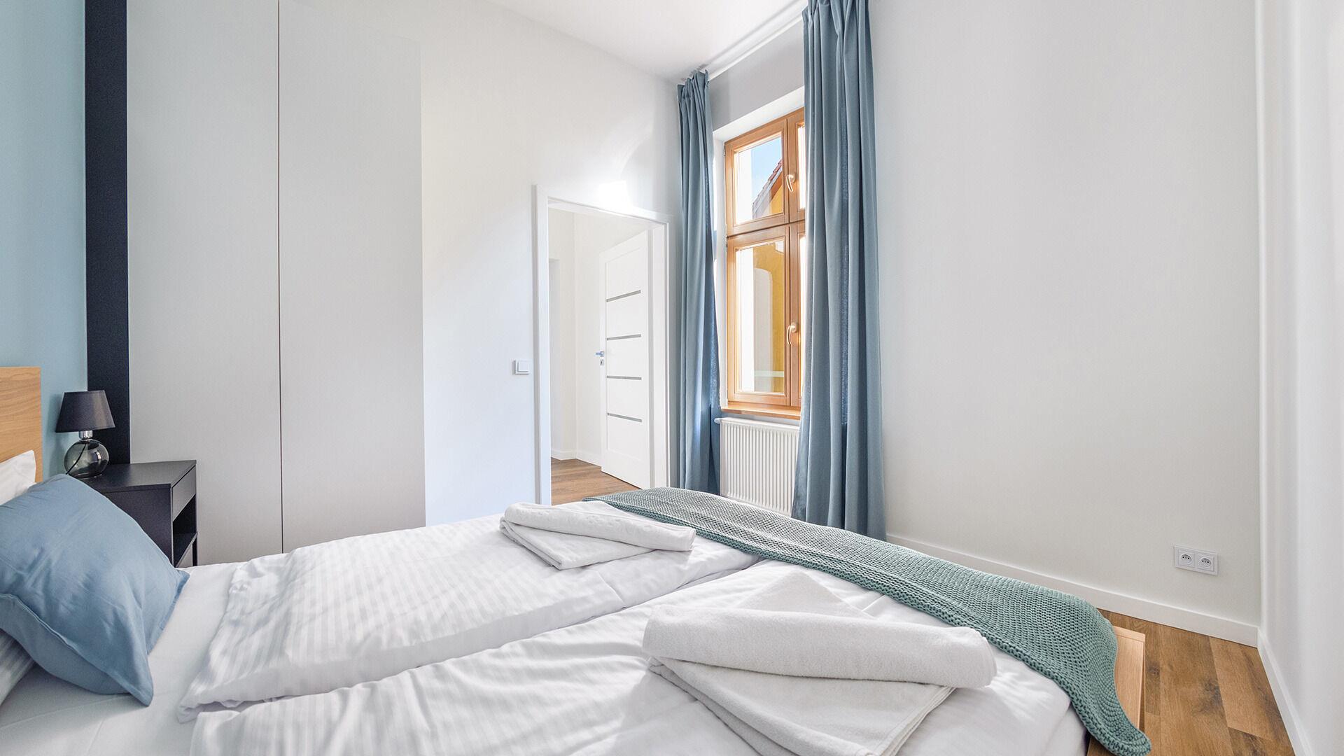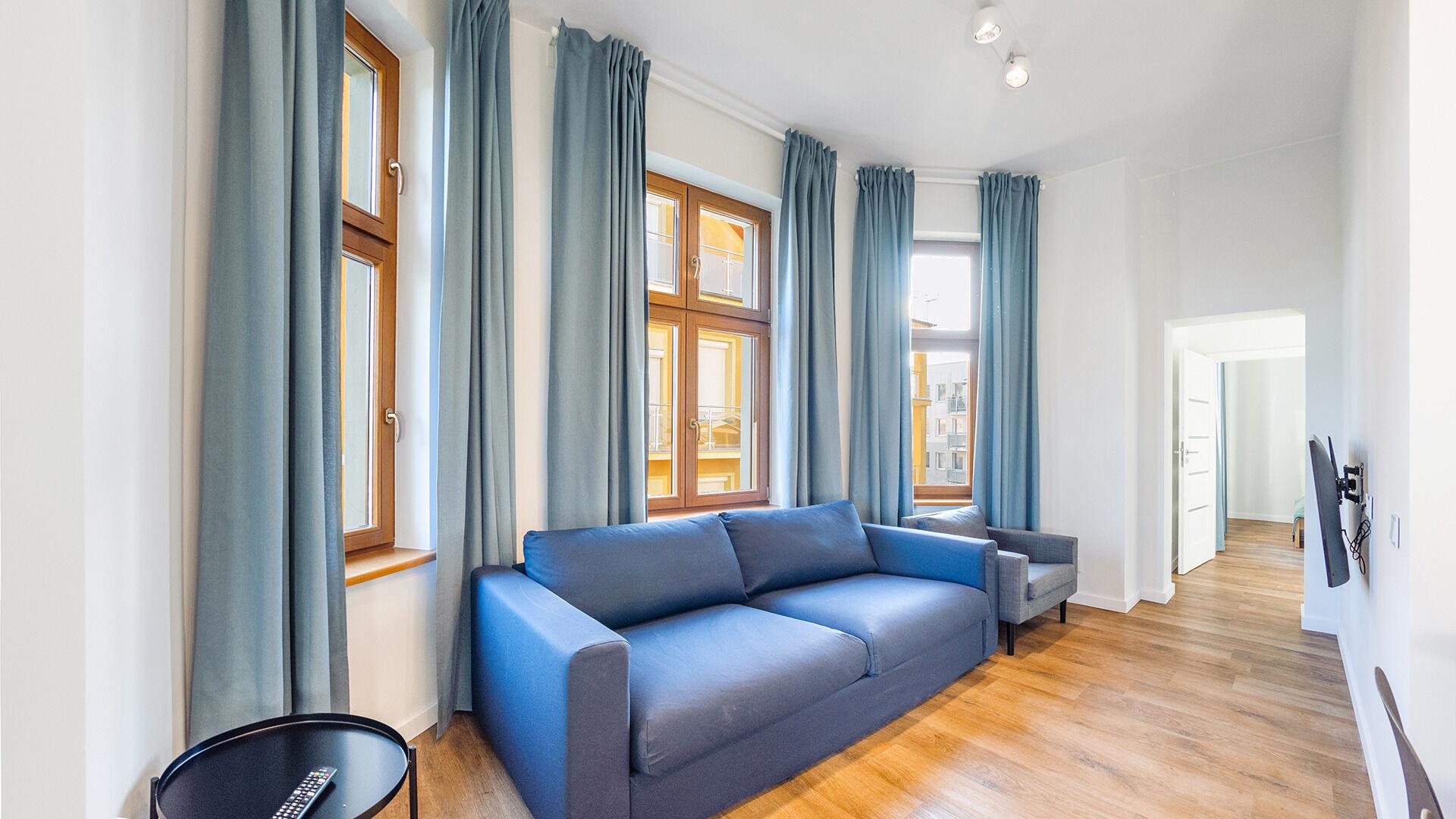 • Haustiere sind in der ausgewählten Wohnung erlaubt. Die Kosten für den Aufenthalt mit einem Haustier betragen 40 PLN pro Tag.