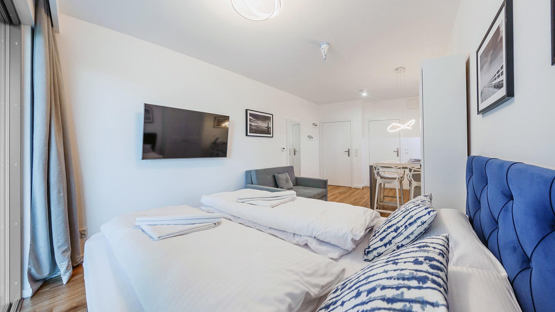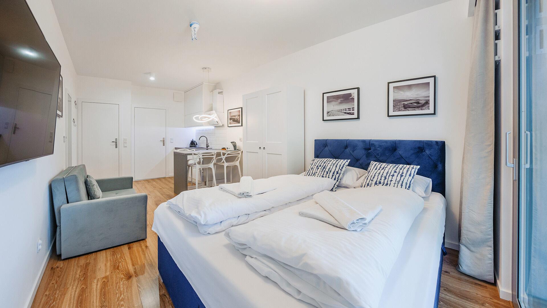 • Die Apartments sind mit Bettwäsche und Handtüchern ausgestattet.