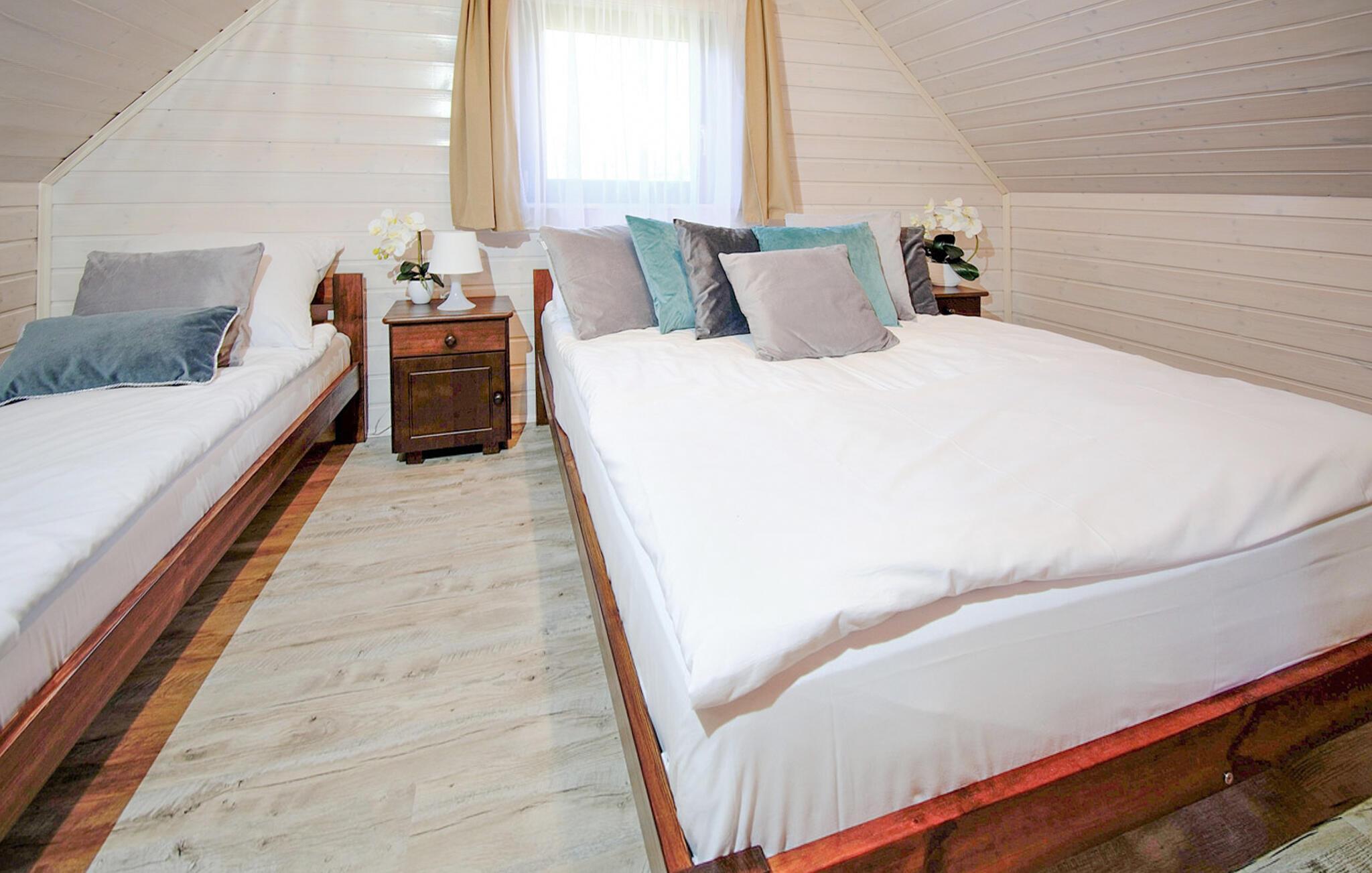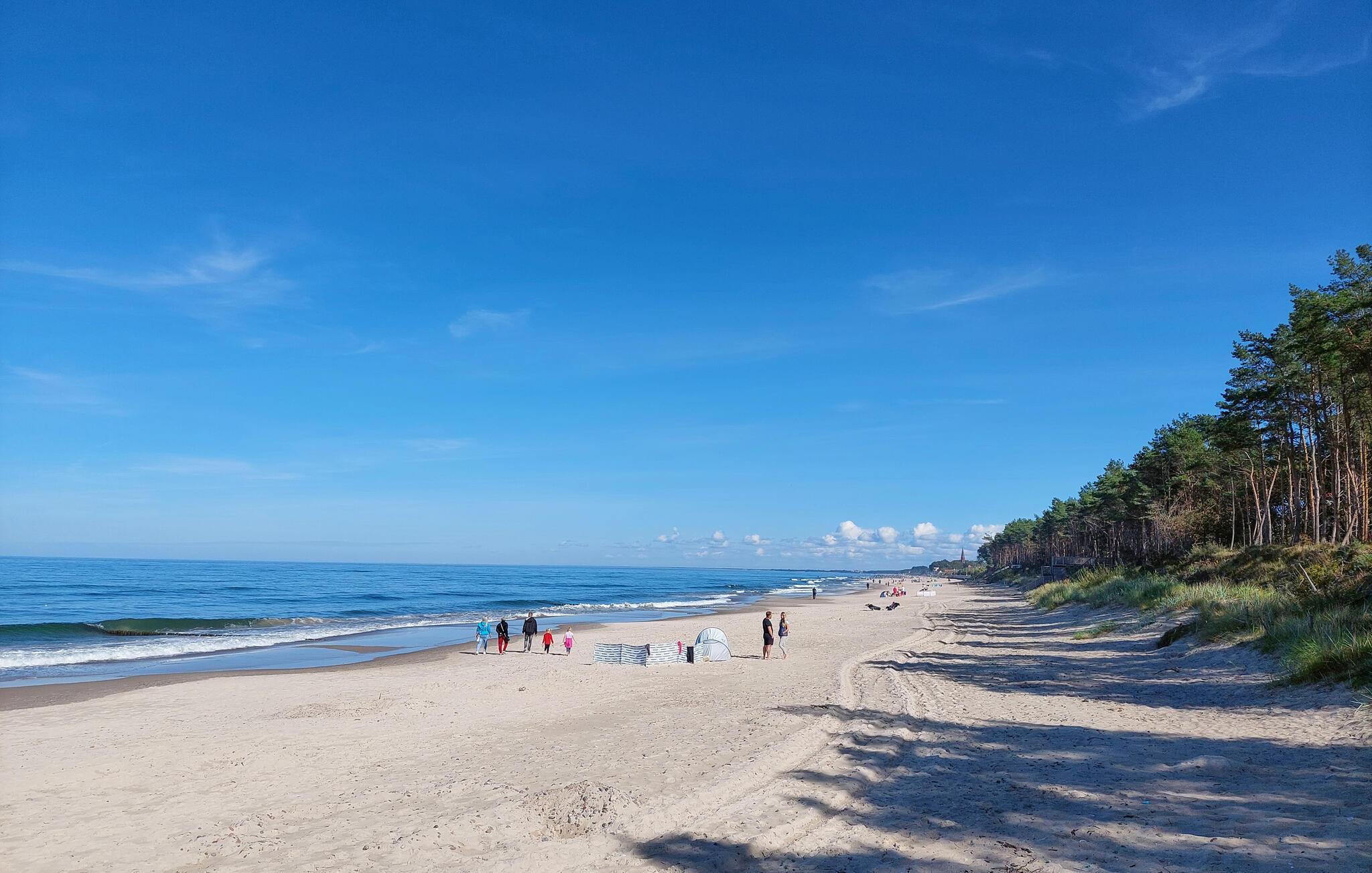 Den nærliggende sandstrand lokker med endeløse gåture og forfriskende bademuligheder. For de aktive er der mange cykelruter i området, og I kan leje cykler på stedet for at udforske kysten. Tag en tur til nabobyen Mielno, hvor restauranter og caféer indbyder til hyggelige pauser, eller nyd naturens fred og ro. Her finder I den perfekte balance mellem afslapning og eventyr – et ideelt sted for hele familien.