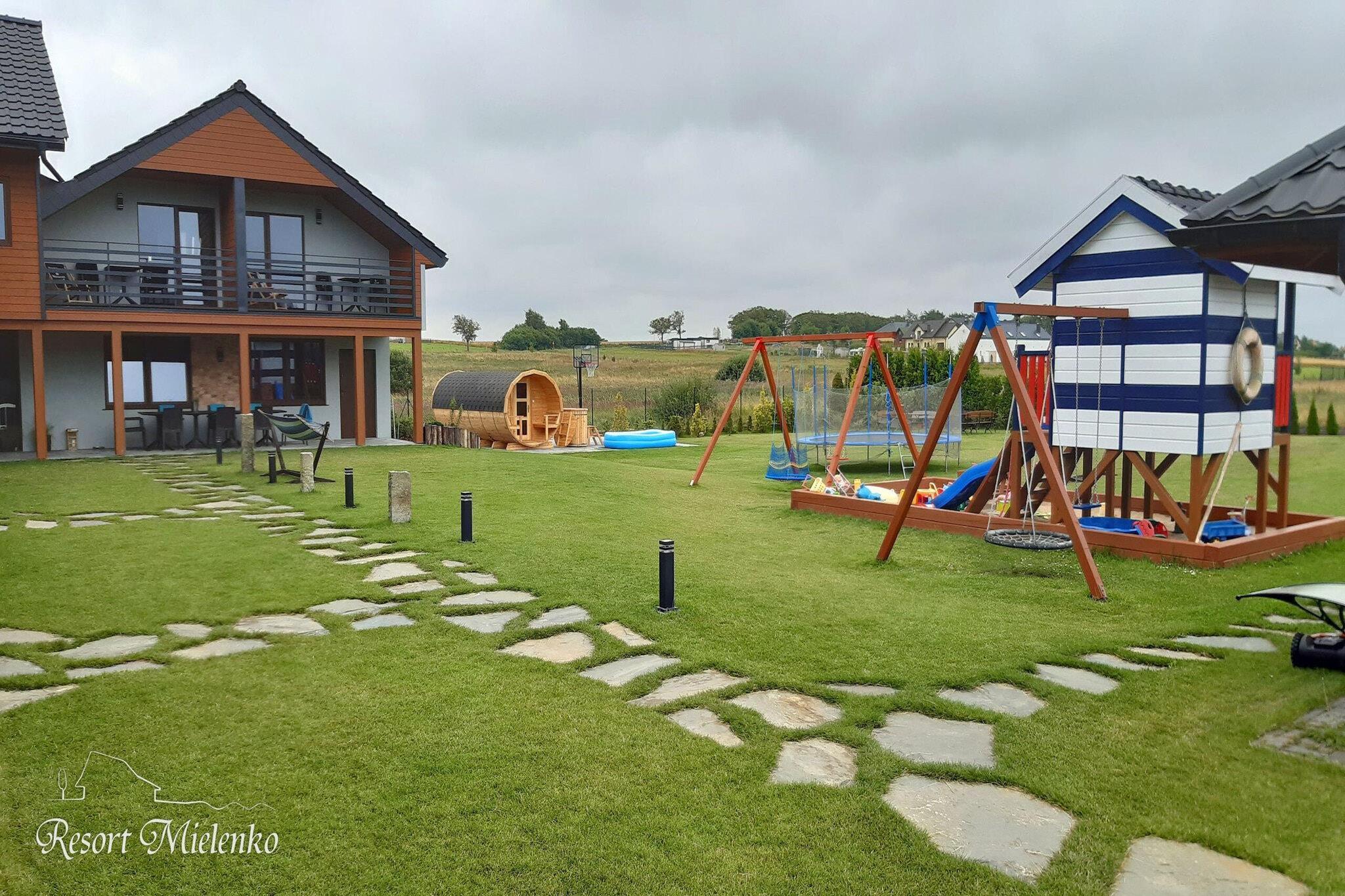 Familieferiestedet ligger i udkanten af ??Mielno - en lille rolig kystby, som er en stille forstad til det meget mere travle feriested Mielno. Stranden ligger ca. 850 m væk. Det rolige centrum af Mielenka ligger kun få skridt væk. I Mielno, cirka 3 km væk, er der mange restauranter, caféer, butikker og alle de attraktioner, der er typiske for et sådant sted. Et meget komfortabelt feriehus ligger midt i et indhegnet, velholdt område tilhørende et lille feriested. Huset er i to etager og har en overdækket terrasse med et sæt komfortable loungemøbler. I stueetagen er der en rummelig stue med stort bord og TV. Der er også en 2-personers fold-out sofa. Stuen er forbundet med et veludstyret køkken. I stueetagen er der desuden soveværelse med dobbeltseng og badeværelse med bruser (der er også vaskemaskine). På første sal er der yderligere 3 soveværelser og et andet badeværelse med bruser. Huset er udstyret med effektiv opvarmning. Trådløst internet er tilgængeligt. Resortet byder på mange attraktioner for gæster, der kommer her. Der er en helårs sauna og en udendørs jacuzzi (inkluderet i prisen for opholdet, tilgængelig for alle resortets gæster). Der er også en cykeludlejning (også elektrisk). Der er en offentlig grillpavillon i haven. Der er anlagt en attraktiv legeplads til de yngste gæster. Prisen for opholdet inkluderer: sengelinned, håndklæder, el- og vandforbrug, sauna, spabad, slutrengøring, internet, parkering, turistskat. Efter anmodning og efter forudgående aftale er det muligt at leje en barneseng til et lille barn og en høj stol (gratis). Den smukke strand ved havet kan hurtigt nås til fods eller på cykel. 3 km fra centrum er der søen Jamno med marina og udlejning af vandudstyr (pedalbåde, kajakker, robåde). Her er også fiskepladser.