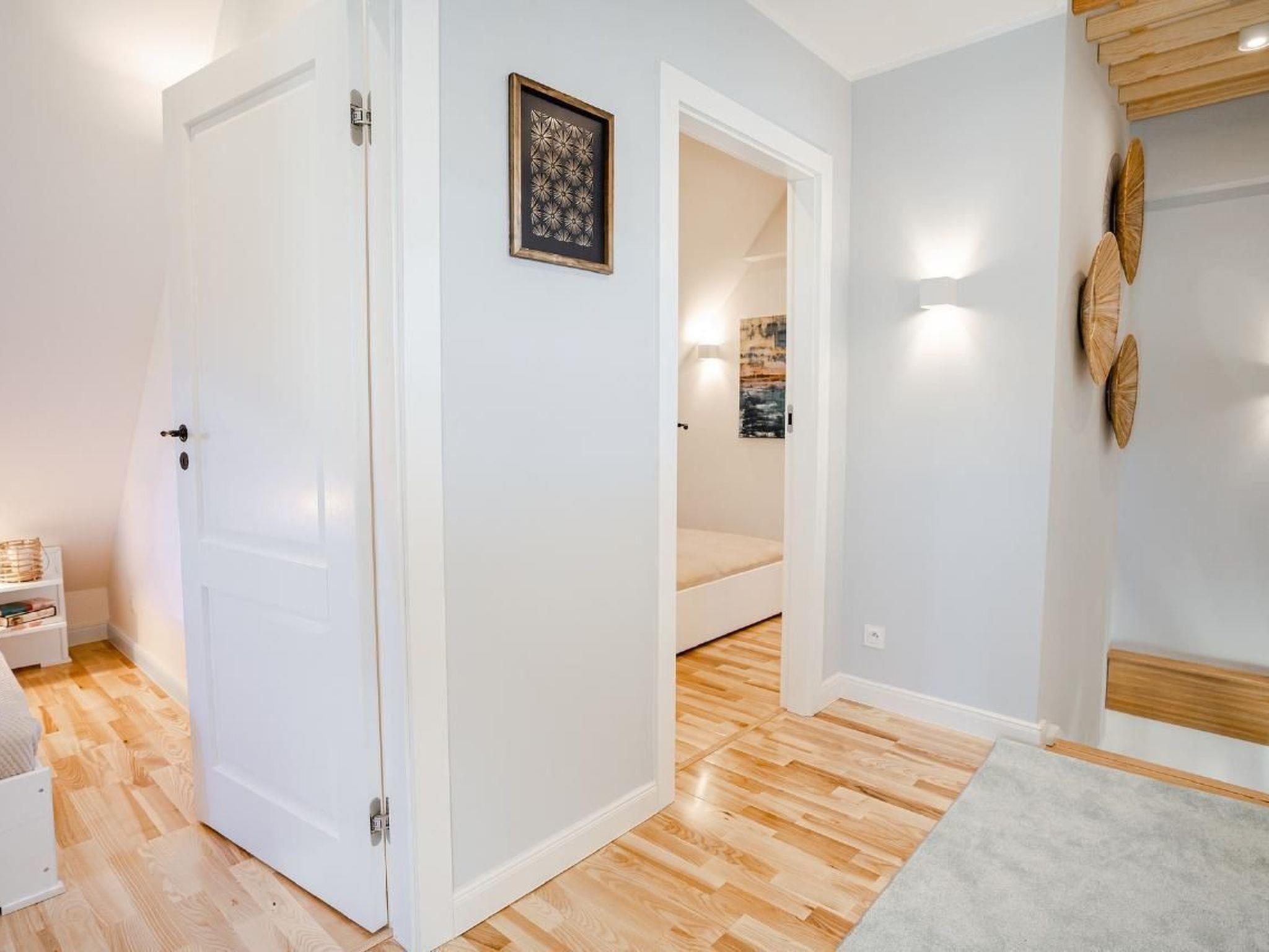 In 2020, the two-storey house, with an area of approx. 80 m2, was completely modernised to meet the needs of even the most demanding guests. Soft colours in the interiors, natural design, comfortable furniture, modern bathroom and kitchen equipment allow for stress-free relaxation. Underfloor heating and a stylish fireplace create a warm and cosy atmosphere on cool evenings and in winter. The holiday home has a large, fenced garden with old fruit trees and a stone barbecue. The garden offers enough space to play badminton or football with the children or to pitch a small tent.