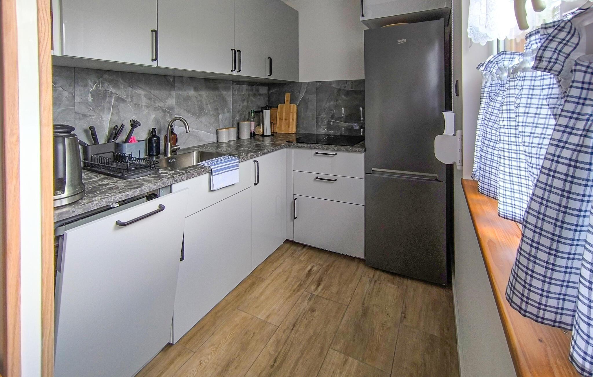 Familievenligt feriehus med idyllisk beliggenhed direkte ved søen. Dette fantastisk beliggende feriehus byder velkommen til den sydøstlige del af Gdansk i smukke naturomgivelser. Indenfor finder du funktionelt indrettede værelser, der gør et varmt indtryk og kan rumme op til flere familier. På den store naturgrund omgivet af gamle træer vil unge som gamle finde en sand oase til timevis af sjov udendørs, men vær opmærksom på nærheden til vandet med børn. Sid på terrassen med din ferielæsning eller spil et spil badminton, mens de små gynger eller glider. Brug den eksisterende robåd og tag på rolige sejlture på søen. Du kan også leje cykler i nærheden og udforske området i dit eget tempo. Glæd dig til afslappende ferier og oplevelser i naturen.