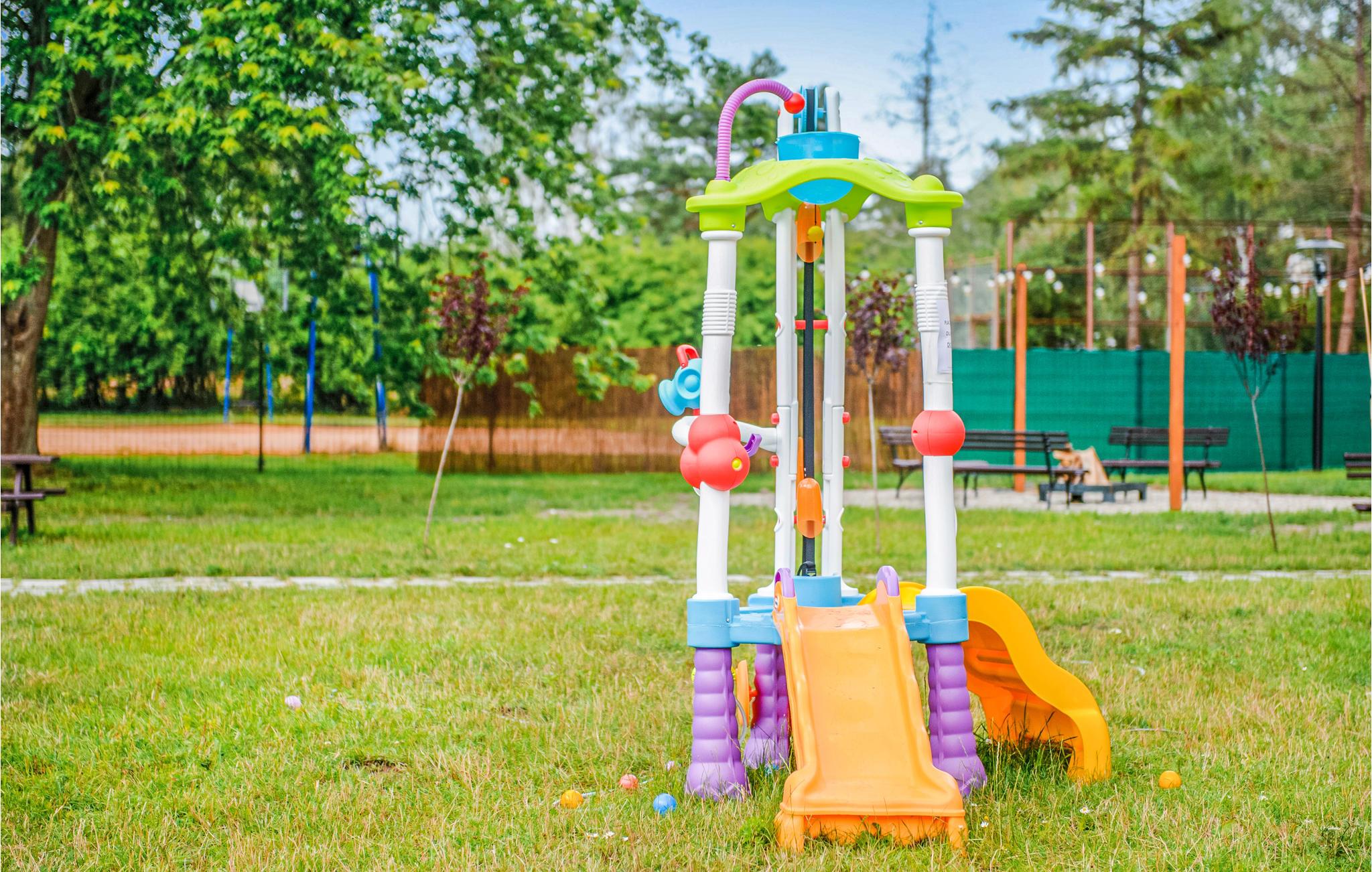Jeres børn kan lege på den store indhegnede grund, hvor der er gynger og sandkasse. I kan også tilbringe en afslappet dag på stranden eller fiske 2 km fra feriehuset. Den nærmeste strand ligger 3,5 km væk.