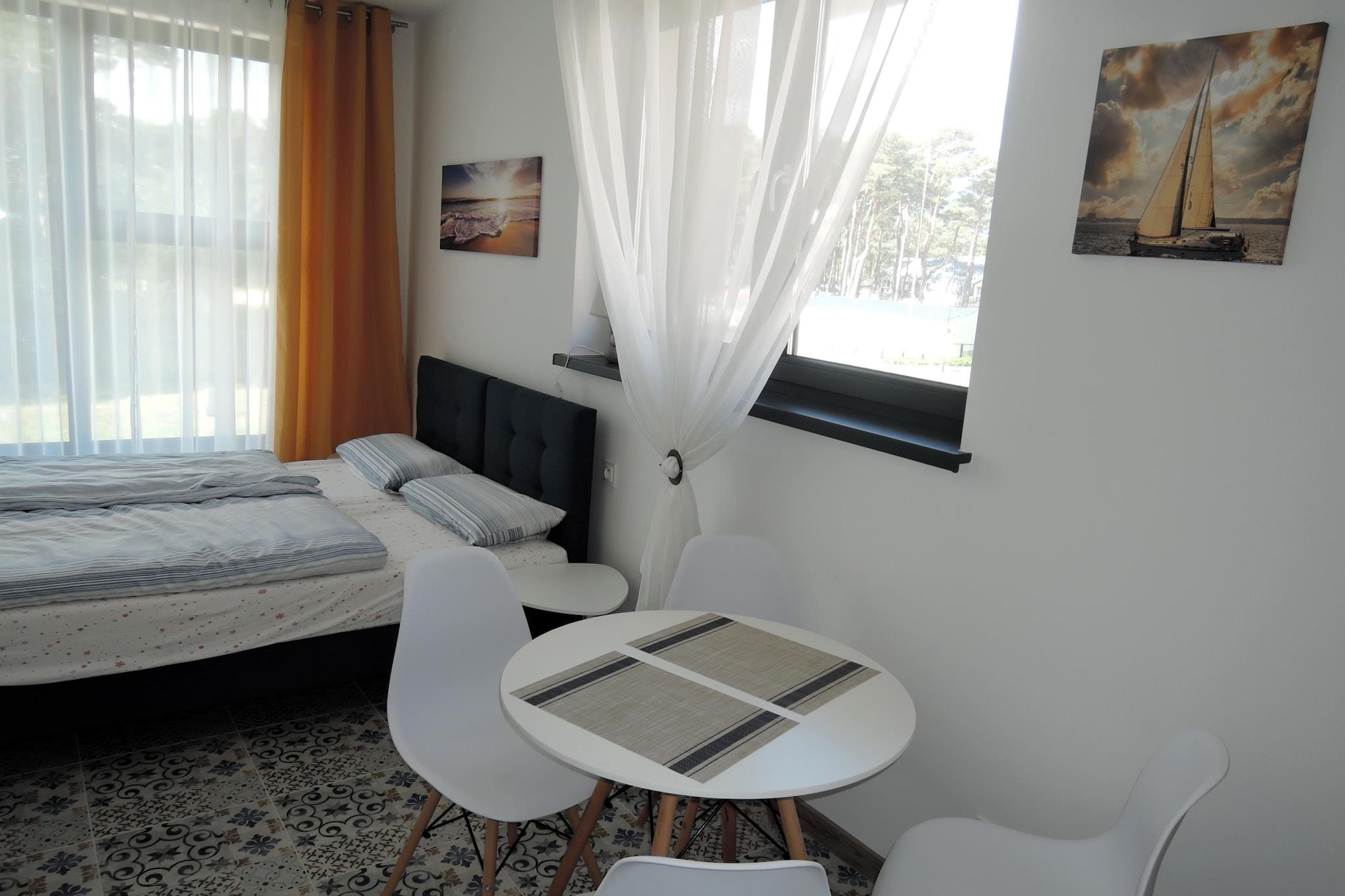 En komfortabel ferielejlighed i Mrzezyno har en unik beliggenhed lige ved siden af sandstrandene, omgivet af frodige skove, hvilket gør det til et ideelt sted for afslapning, hvile og fornyelse. Beliggende i hjertet af feriestedet er det et glimrende udgangspunkt for at opdage byen med dens sommerattraktioner og maleriske skovstier og veje, der inviterer til gå- og cykeleskapader i hjertet af naturen. Lejligheden byder på komfortable opholdsforhold, og tilbyder en rummelig stue med komfortable senge, forbundet til et veludstyret køkken med køleskab og kaffemaskine samt badeværelse med bruser. En yderligere fordel er en stor terrasse (på første sal, delt med andre gæster) med et areal på 40 m2, hvorfra der er en malerisk udsigt, perfekt til morgenmorgenmad udendørs eller aftenafslapning. Sengetøj er tilgængeligt i lejligheden. Gæsterne har også en garanteret parkeringsplads og bredbåndsinternet. Mrzezyno er et feriested og en fiskerihavn 12 km vest for Kolobrzeg, ved mundingen af Rega-floden. Byen ligger i Trzebiatowsko-Kolobrzeg-kystbæltet, som er et særligt beskyttelsesområde, der er omfattet af Natura 2000-programmet, som skaber et sundt mikroklima. Den smukke, sandede og rene strand i Mrzezyno, med en stribe fyrreskov, vil tilfredsstille enhver, der ønsker at slappe af væk fra byens stress og jag. Mrzezyno er en af de få strande i Polen med et "blåt flag", et symbol, der beviser strandens høje niveau, den højeste vandkvalitet og det højeste sikkerhedsniveau (et stort antal veluddannede livreddere). Mrzezynos beliggenhed gør det til et sandt paradis for lystfiskere. Adskilt fra havet af en bred, smuk strand og en stribe klitter dækket af fyrretræer. Her er et marint mikroklima, kendetegnet ved små temperaturudsving og højt indhold af jod. Byen henter vand fra dybe kilder. Der er her et specifikt mikroklima, karakteriseret ved et betydeligt indhold af havsalt og jod, som