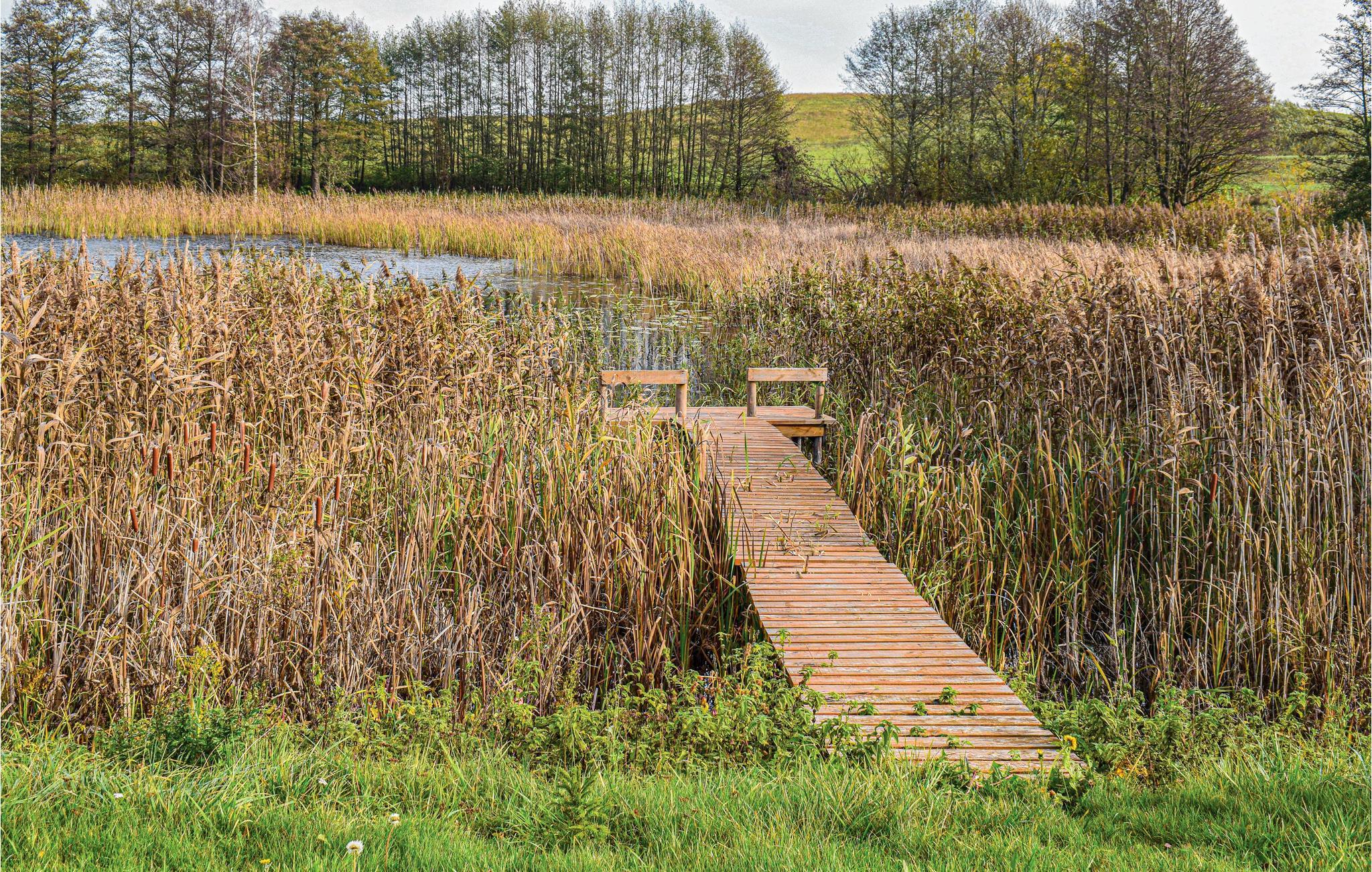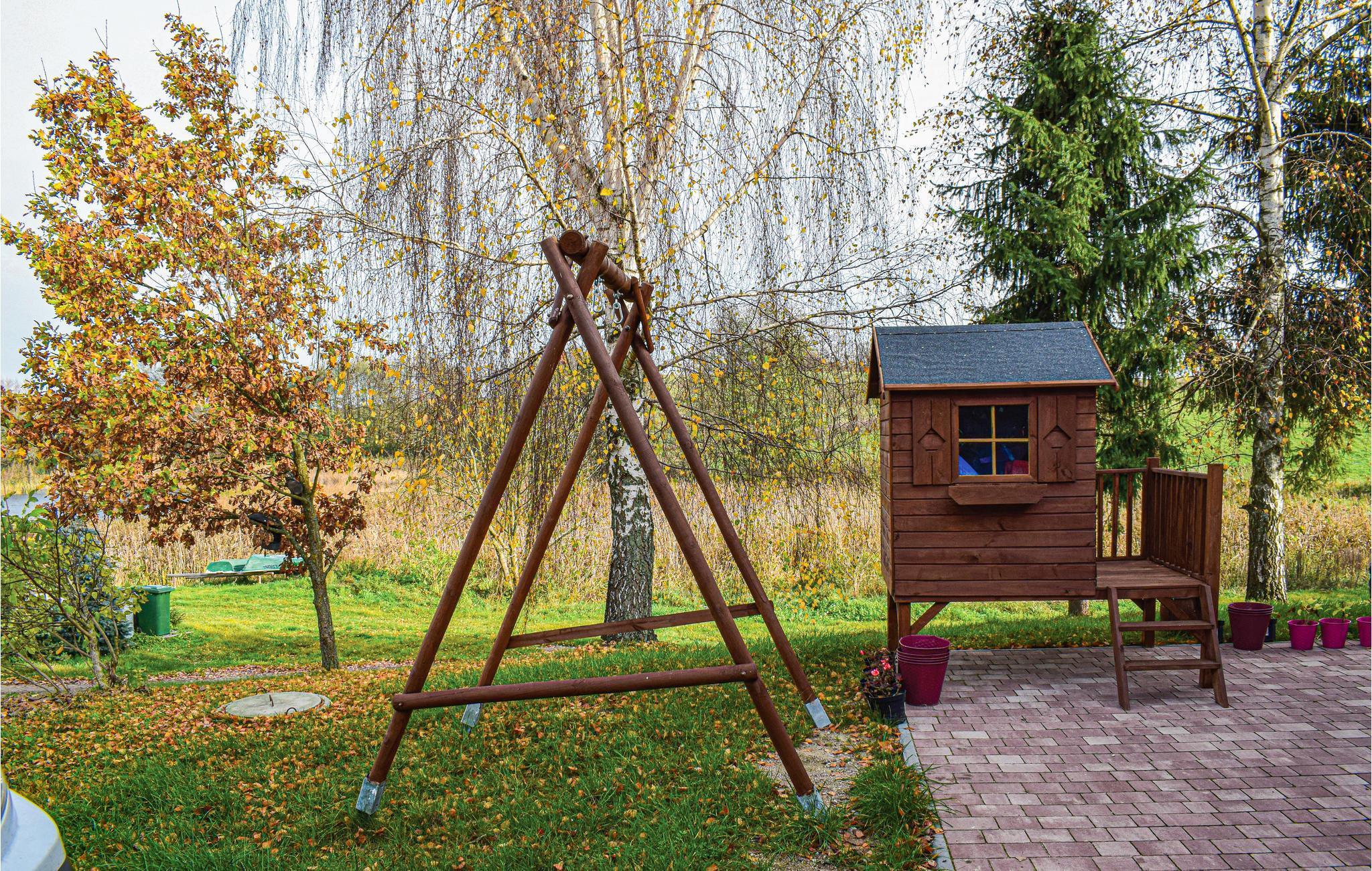 Dette hyggelige feriehus af træ ligger i byen Najdymowo der ligger på en stor, fælles uindhegnet grund, lige ned til vandet. Omgivelserne er dejligt rolige og meget smukke i kanten af Dadajsøen. Nyd dagens måltider i solen på husets terrasse. Omgivelserne er dejligt ugenerte, I kan gå afslappede ture i naturen. Perfekt til alle der holder af natur og til lystfiskere. I søens kant er der to badebroer. Her er også en muret grill, en røgeovn og en fiskerenseplads. Lej cykler eller båd og tag på udflugt på vandet eller i naturen. Det kan også anbefales at tage på udflugt til Biskupiec. På samme grund som PMA829.