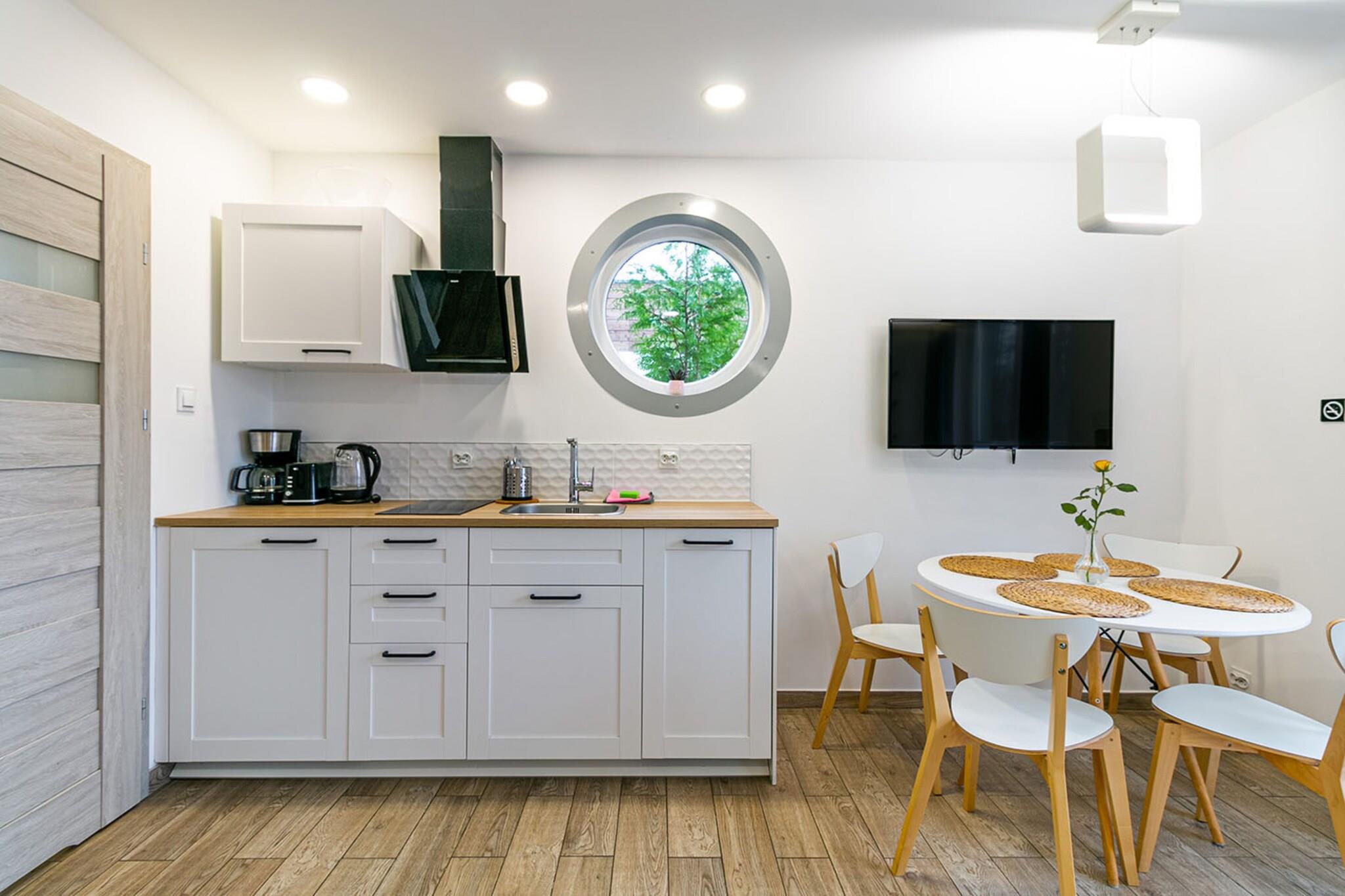 Feriested med attraktiv infrastruktur (inklusive swimmingpool, sauna, spabad), 700 m fra stranden. Komfortabel lejlighed i stueetagen. Stue med dobbelt sovesofa, bord og tv. Stuen er forbundet med køkkenet. Der er også et soveværelse med dobbeltseng og et badeværelse med bruser. Der er aircondition og gulvvarme. Lejligheden har terrasse med havemøbler og elektrisk grill. Trådløst internet. Resortet har en udendørs opvarmet swimmingpool (fra 01/05 til 30/09), en sauna (daglige sessioner fra 18:00 til 20:00 er inkluderet i opholdet; private sessioner mod et ekstra gebyr), et boblebad ( mod betaling), et wellness-område (massage, skønhedsbehandlinger), leje af cykler og quads, udendørs fitnesscenter og volleyballbane. I haven er der hængekøjer, havepavilloner, en dam med fiskemuligheder, en attraktiv legeplads og en minizoo. Der er sikker parkering (mod ekstra betaling). Der er en restaurant på stedet (om sommeren), hvor du kan bestille morgenbuffet og frokost. Der er også en café og en cocktailbar. Prisen for opholdet inkluderer: sengelinned, vandforbrug, aircondition, brug af sommerpoolen (fra maj til slutningen af september), daglige saunasessioner (fra 18.00 til 20.00), internet. Niechorze er et feriested i det vestpommerske voivodskab. Det ligger ved Østersøens kyster og er centrum for den maleriske Rewal-kyst. Niechorze tilbyder turister en ren strand og et bevogtet svømmeområde. Her er også en fiskebase, perfekt som baggrund for souvenirbilleder. Når du er tæt på stranden, skal du se symbolet på byen. Det er et højt fyrtårn, åbent for besøgende. Byens (og faktisk hele regionens) stolthed er den renoverede smalsporede jernbane, som giver dig mulighed for at tage på en charmerende tur til nærliggende feriesteder.