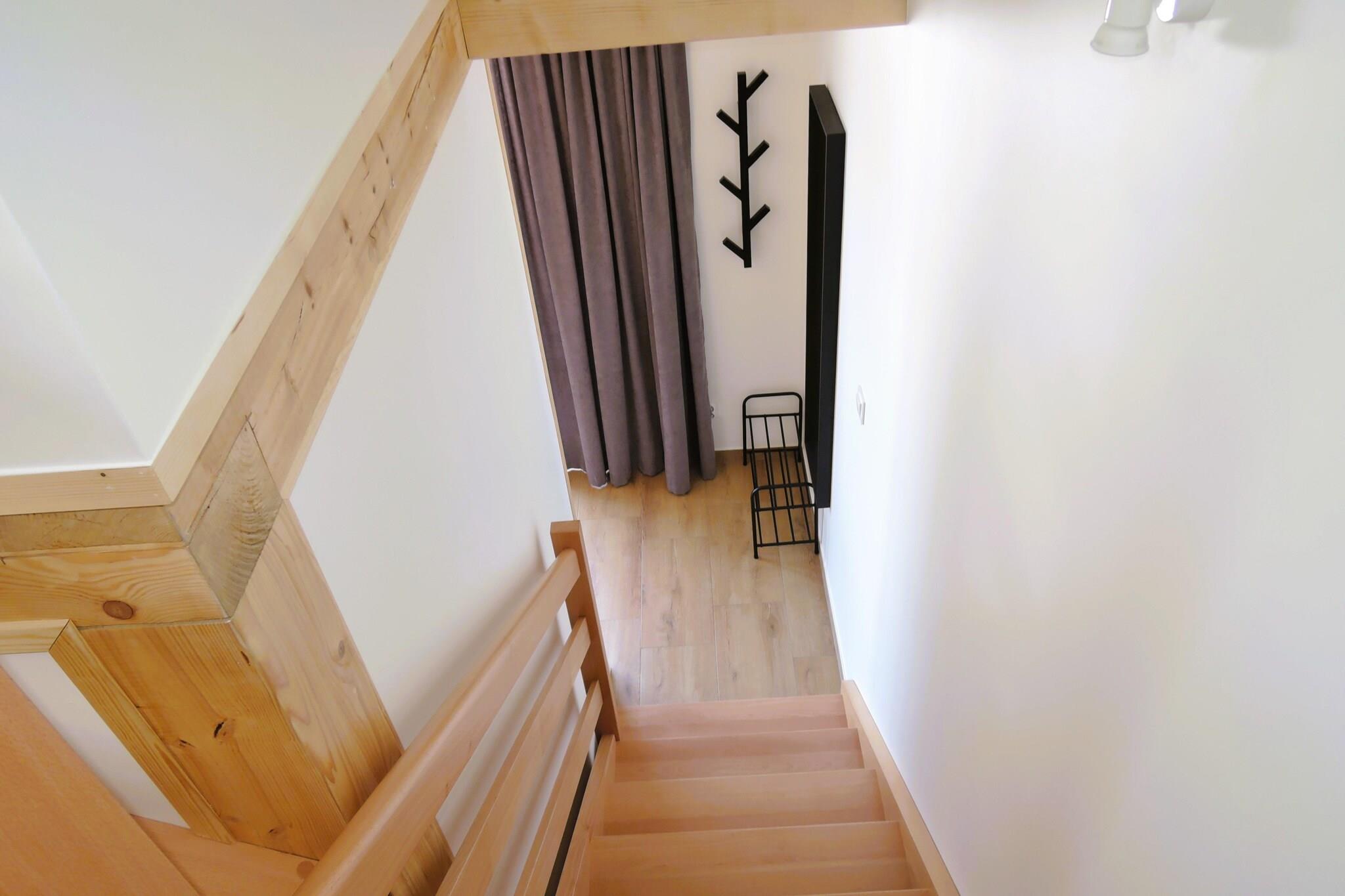 Stueetage: (åbent køkken(elkedel, cooker, brødrister, komfur, espressomaskine, mikrobølgeovn, opvaskemaskine , køle-fryseskab), Stue/soveværelse(dobbeltsovesofa, Fjernsyn(parabol, Tyske TV-kanaler), spisebord, sofahjørne), badeværelse(bruser, håndvask, toilet)) På 1. etage: (soveværelse(enkeltseng, dobbeltseng), soveværelse(enkeltseng, dobbeltseng)) Internetadgang, Parkering, klimaanlæg, terrasse, have(deles med andre gæster, indhegnet, anlagt have), havemøbler, grill, swimmingpool(deles med andre gæster, udendørs, opvarmes, 10 x 5 m.)