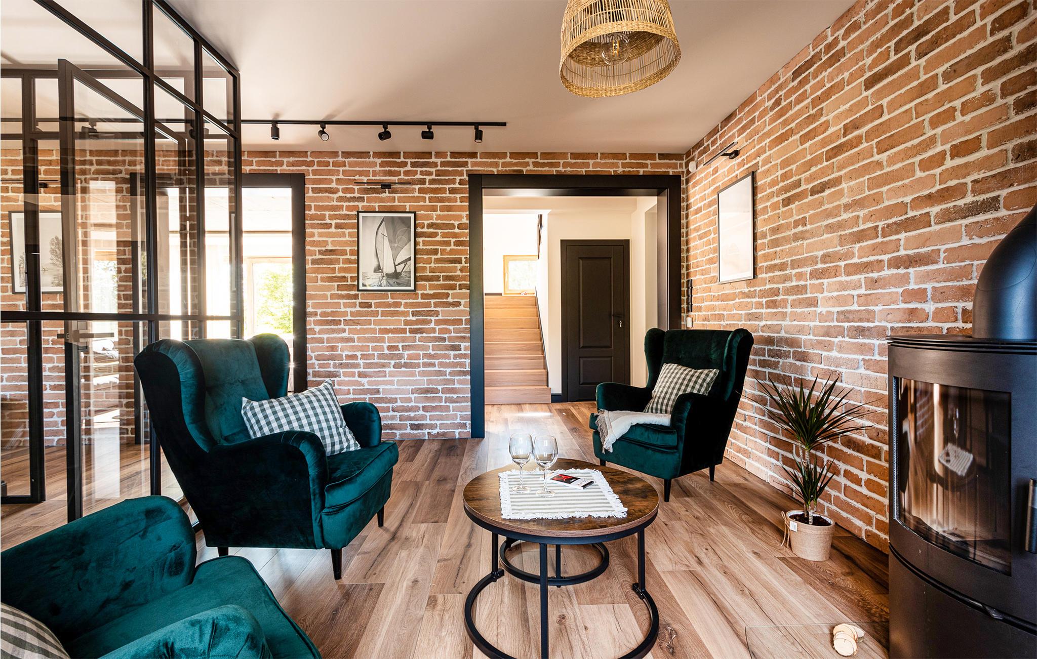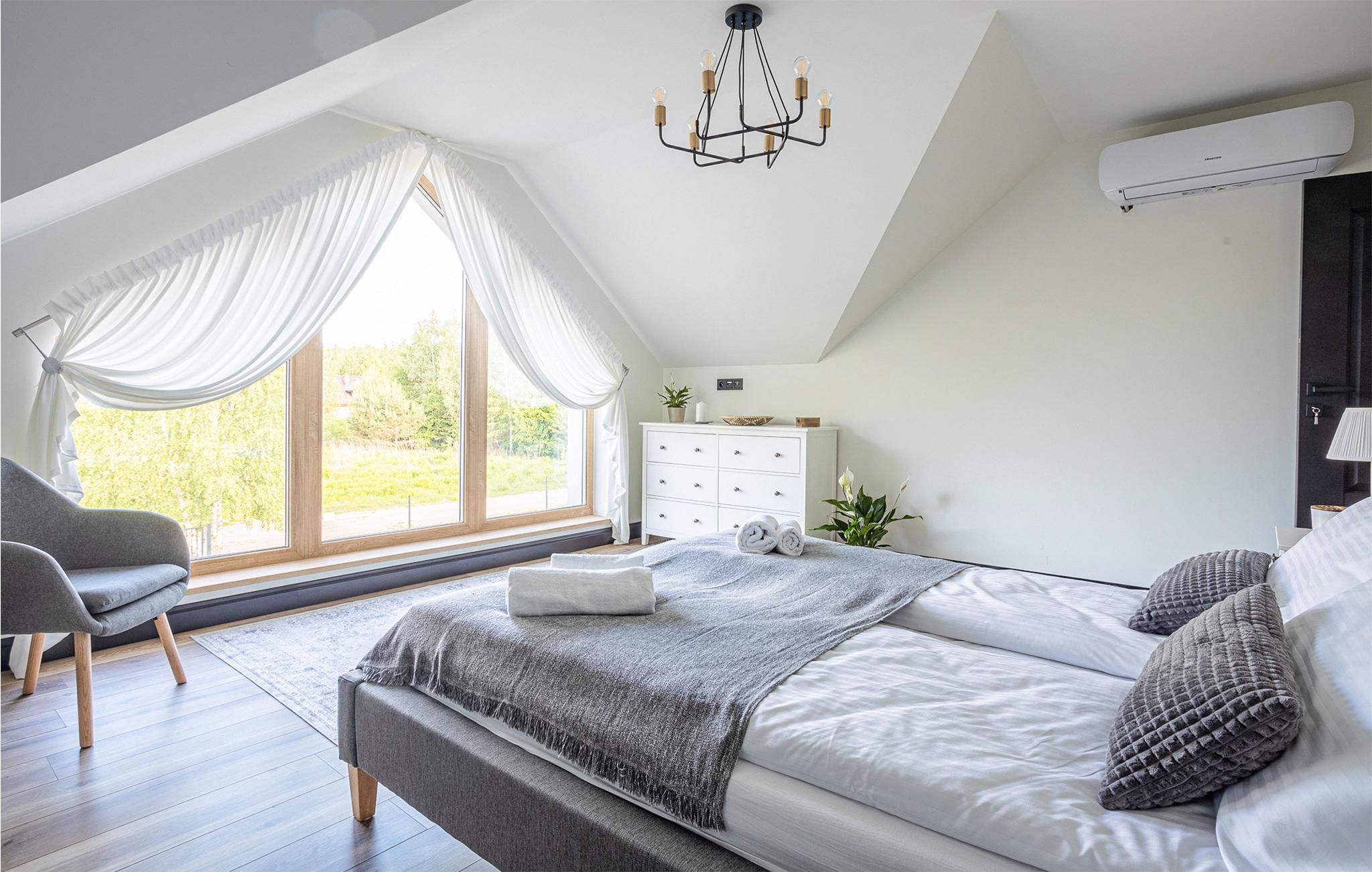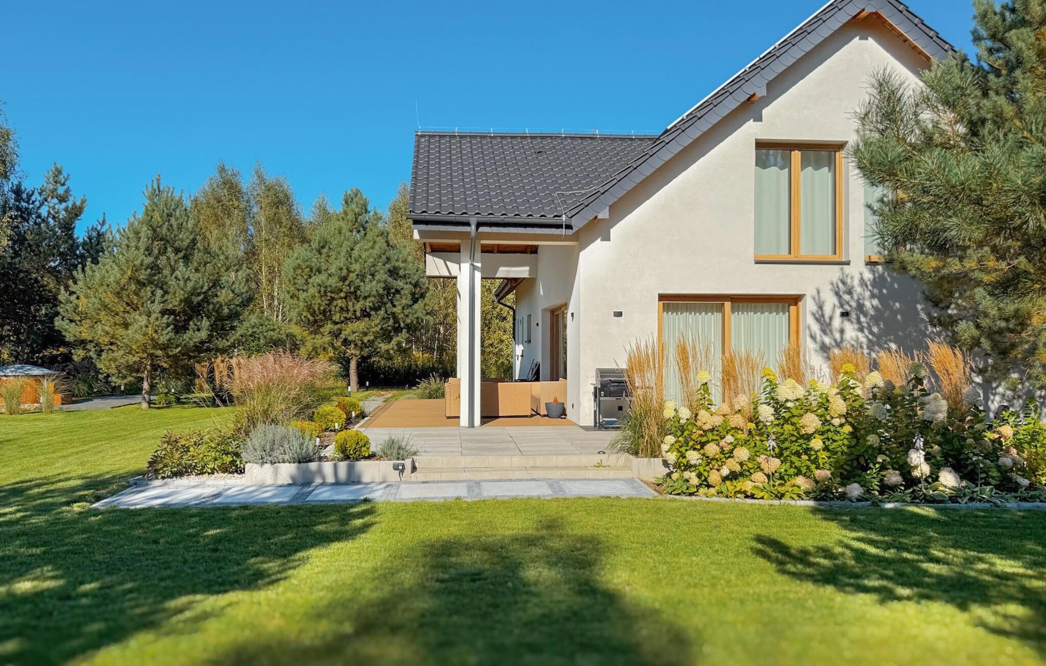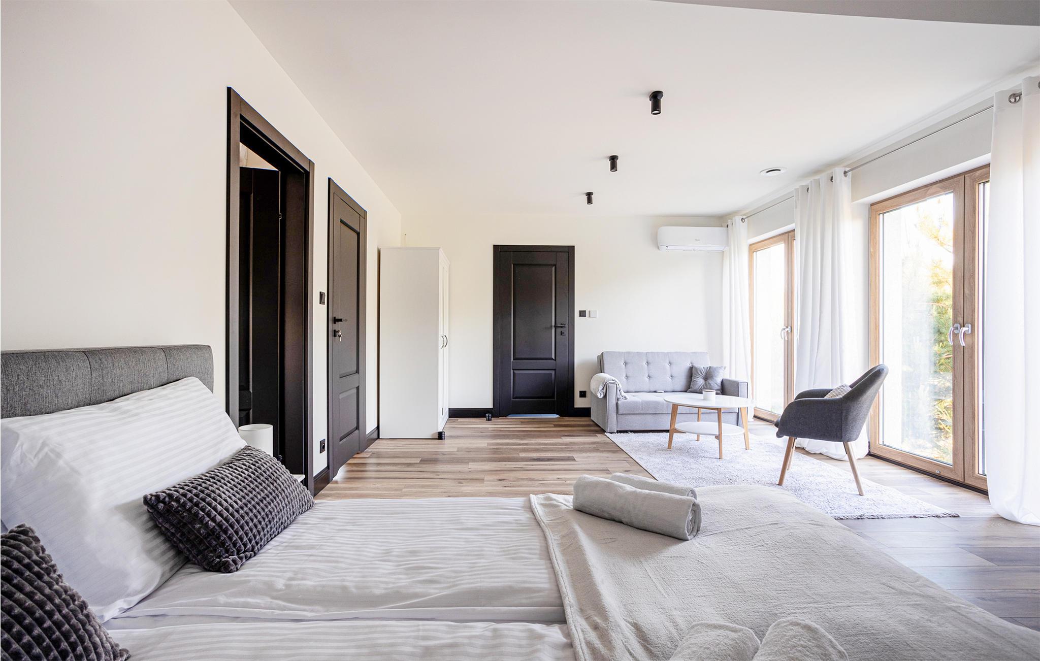 Velkommen til et stort, dejligt feriehus i Masurien. Her kan I nyde en skøn pause fra hverdagen og glæd jer til design, kvalitetsmøbler og hyggelige værelser at trække jer tilbage til. Nyd en kop te foran pejsen eller sammensæt lækre retter i det moderne køkken. Der er god plads til fællesspisning rundt om det lange spisebord eller på den delvist overdækkede terrasse. Her kan I også slappe af og læne jer tilbage i vildmarksbadet, mens børnene leger i haven.
