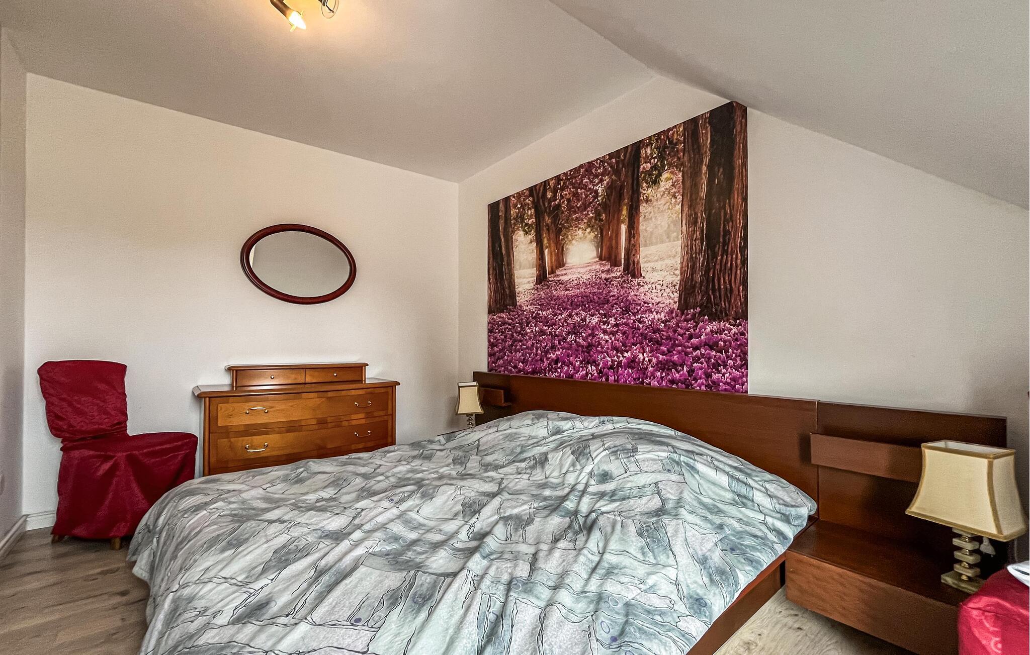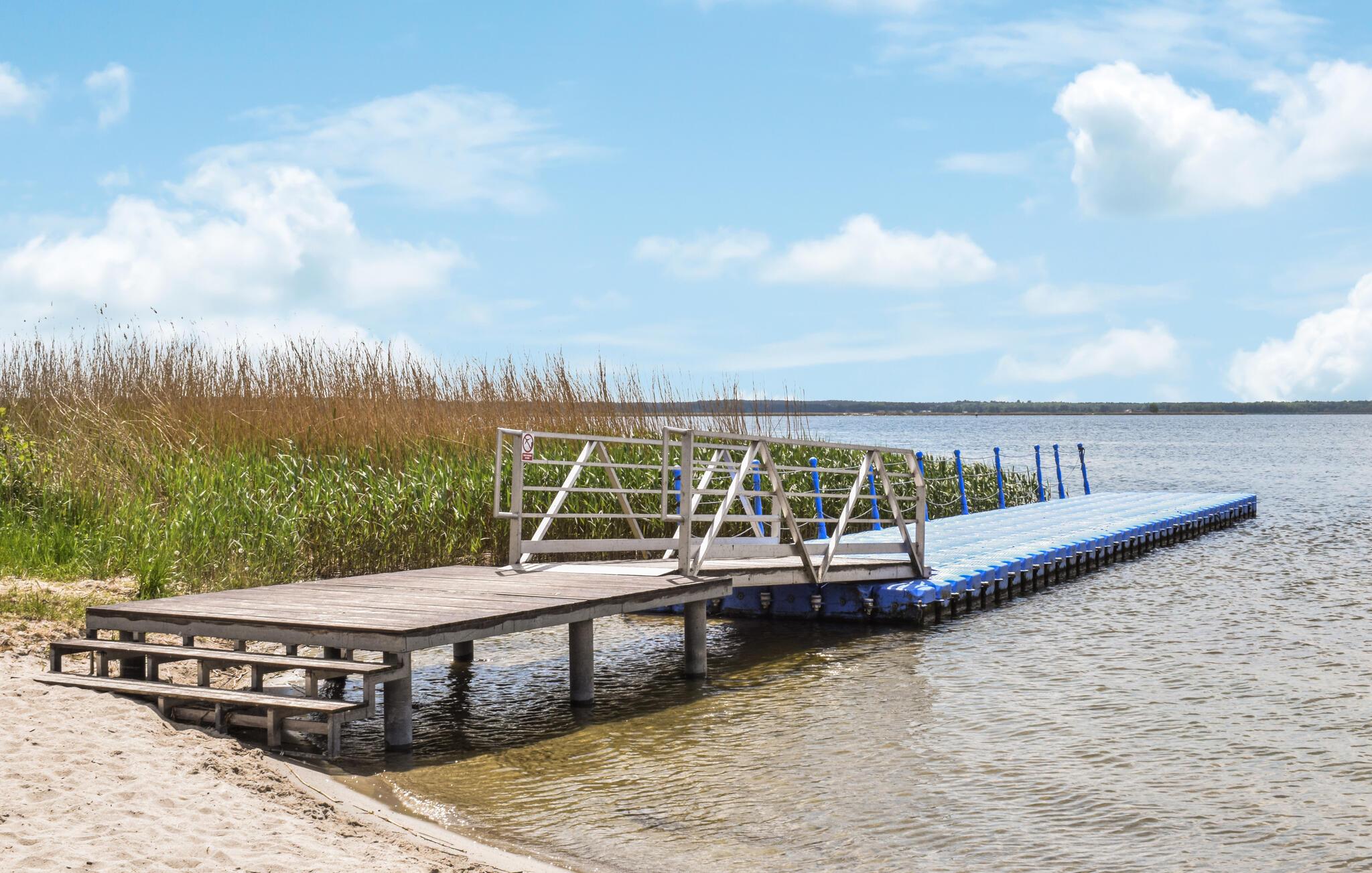 Glæd jer til en afslappende ferie i et kærligt designet feriehus, der er noget særligt med sit unikke farveskema og rolige beliggenhed omgivet af natur. Beliggende nær den polsk-tyske grænse tilbyder dette hus et oplagt tilflugtssted. Slap af i den åbne stue, sæt jer på de komfortable polstrede møbler, og sæt hverdagen på pause med en film eller et brætspil.