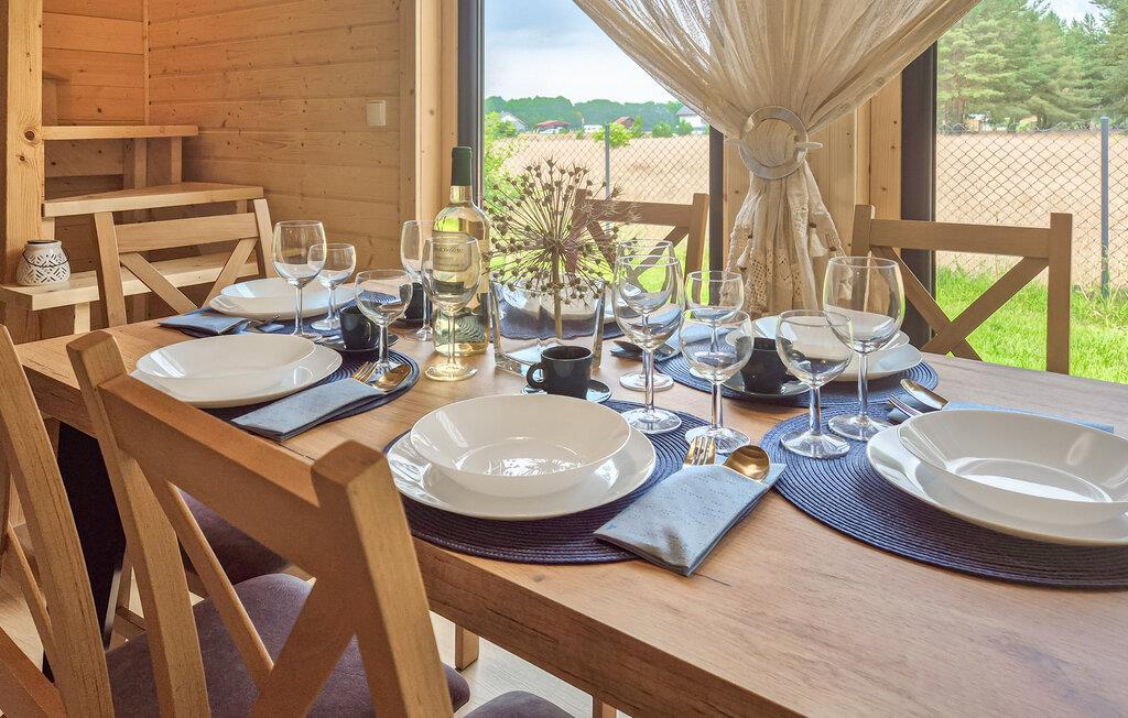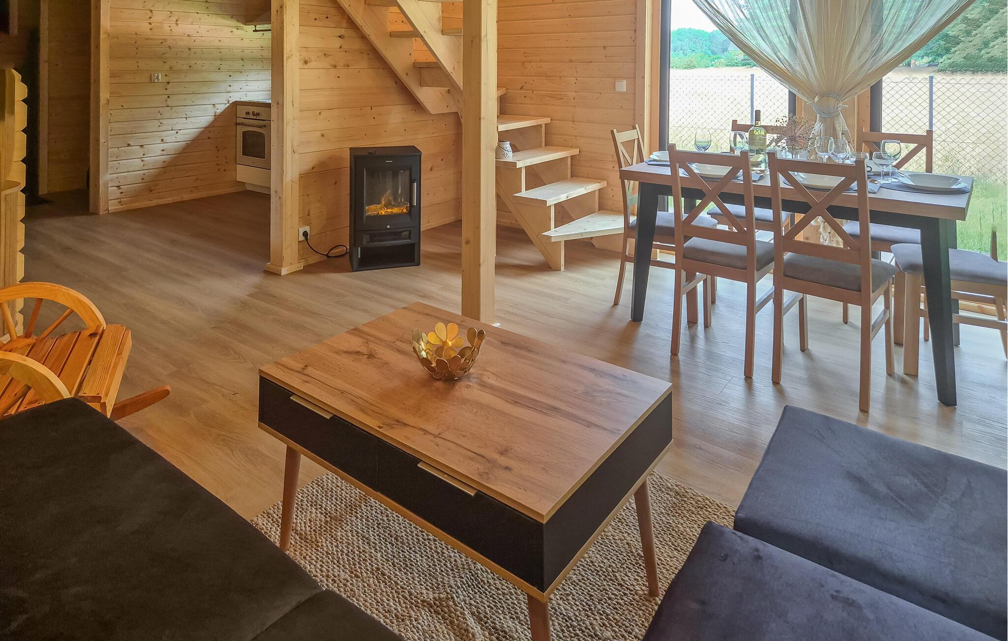 Sjov og afslapning venter jer i dette indbydende feriehus i Nowe Warpno. Familier og vennegrupper vil finde den helt rigtige atmosfære her til en dejlig ferie. Nyd de fredelige omgivelser og slap af på den rummelige veranda. Find jer godt til rette i det hyggelige opholdsområde eller udfordr familien til et spil bordfodbold. Forskellige fritidsaktiviteter som petanque og volleyball giver variation, mens de yngste gæster kan erobre de mange legeredskaber i haven.