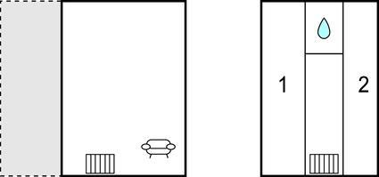 Soveværelse 12m2 (nr. 1) - 1 Soveplads. (Enkeltseng(e)). 2 Sovepladser. (Dobbeltseng(e)).