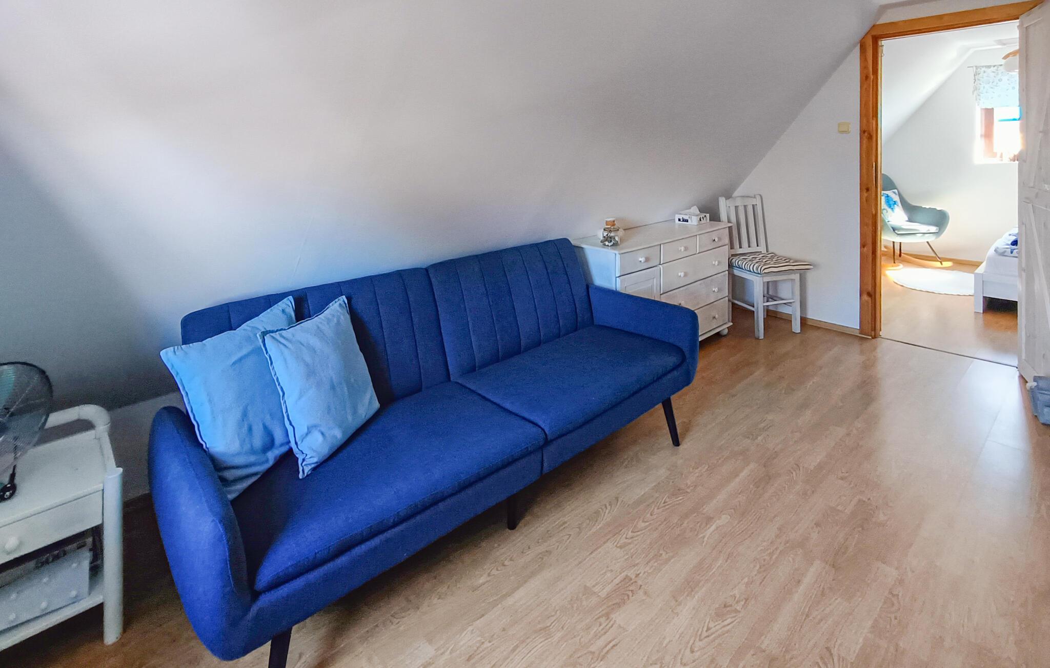 Feriehus i byen Nowe Warpno, Pomorze Zachodnie. Huset er moderne og praktisk indrettet og velegnet til familieferie. Nyd livet på terrassen i den store velplejede have hvorfra der er den skønneste panoramaudsigt over vandet. Et perfekt feriemål til alle der gerne vil dyrke forskellige former for vandsport, fx surfe. Der er mange cykle- og vandrestier gennem den smukke natur. Langs indsøen Stettiner Haff er der en vandresti, med den fineste udsigt over land og vand. Desuden kan det varmt anbefales at besøge den spændende by Stettin, hvis nye koncerthus er fantastisk smukt. Tag også hunden med på ferie. Fire cykler er tilgængelige.