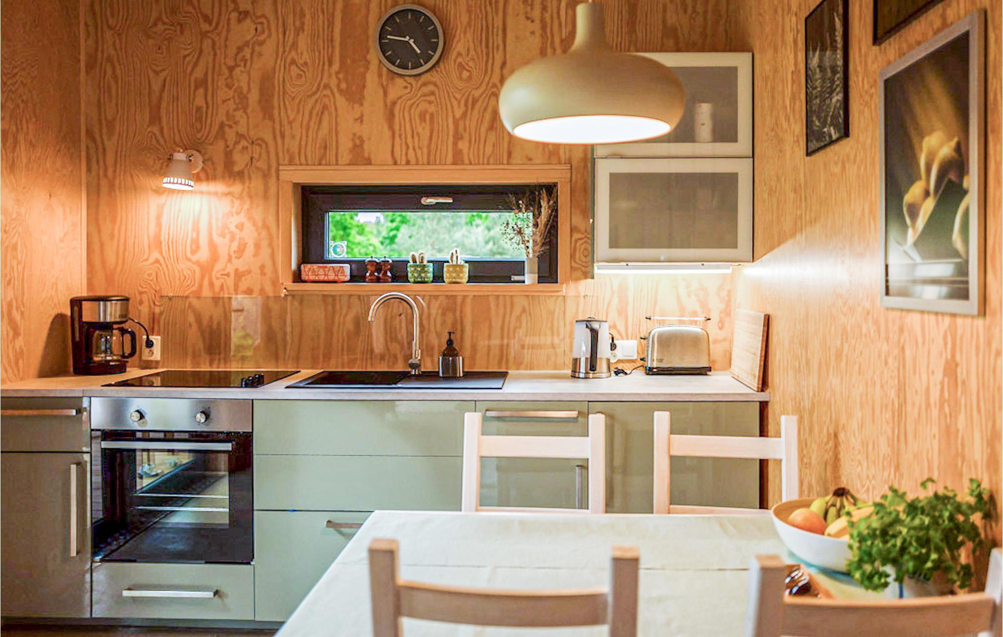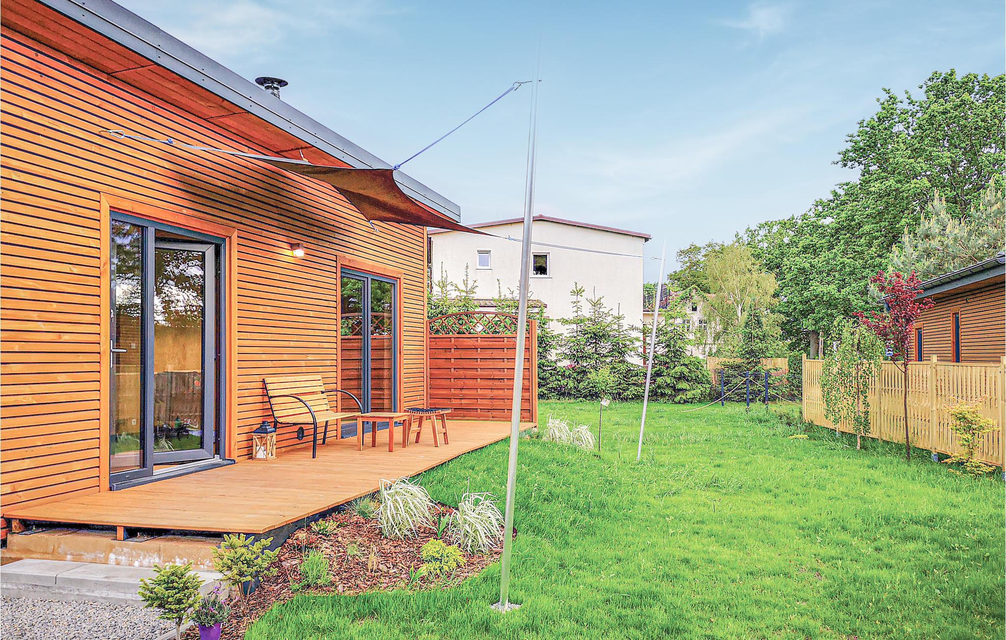 Dette moderne feriehus er bygget af træ og ligger i den rolige ferieby Nowe Warpno, i Pomorze Zachodnie. Huset er indrettet med stil og god smag. På den store terrasse kan I nyde livet med dem I holder af. Der er mange vandre- og cykelstier i nærheden. I Nowe Warpno er der en dejlig sandstrand med en lille promenade. Byen er perfekt til badeferie, windsurfing og andre former for vandsport – eller bare til en afslappet ferie. Besøg også den moderne og indholdsrige by Stettin. Nabo: PPO380.