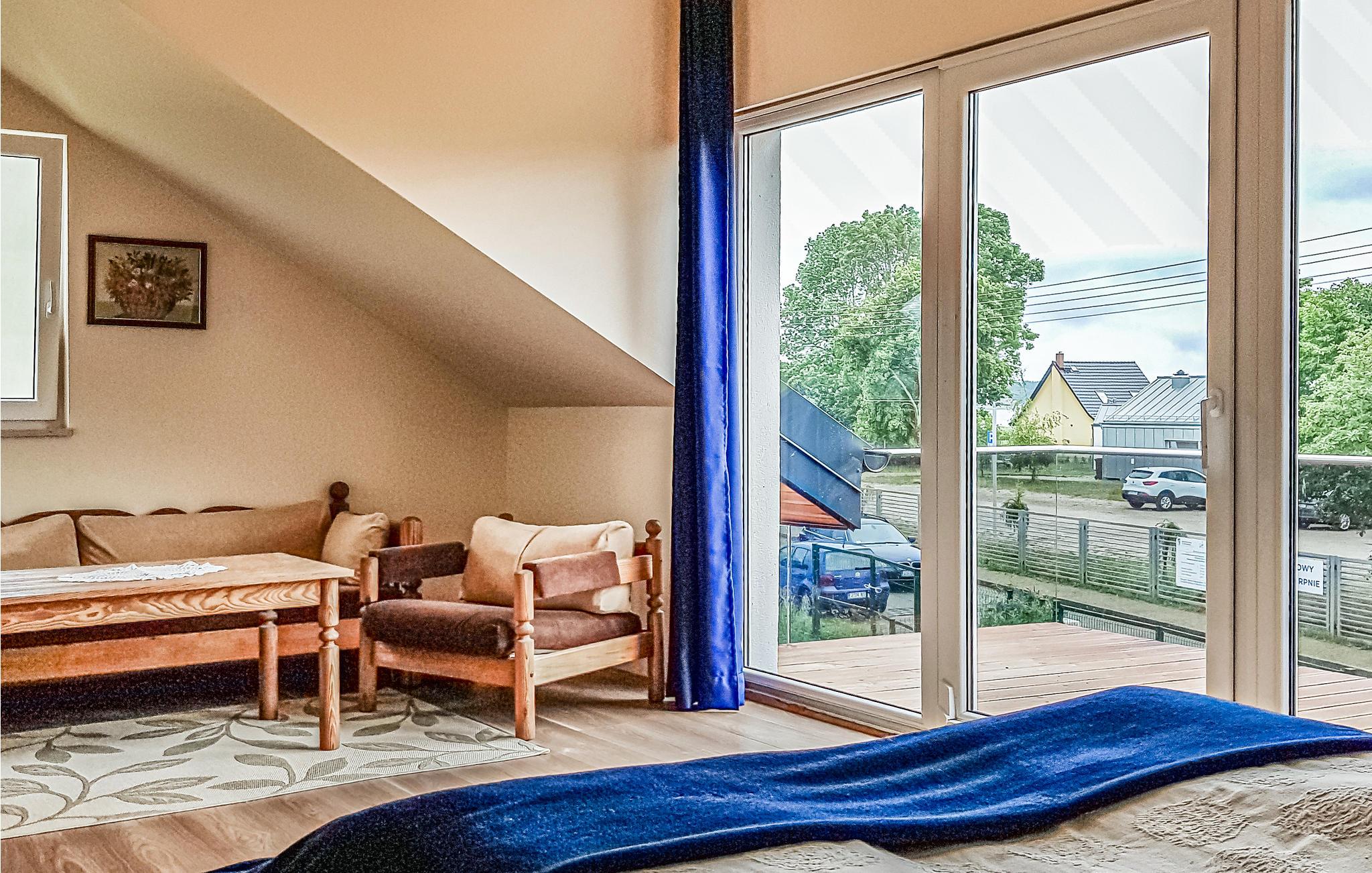 Huset har to terrasser og en altan, hvor du kan grille sammen med din familie eller venner. Området er et ideelt sted hvis I er glade for vandsport. På den nærliggende campingplads kan I leje både og vandudstyr. Sandstranden er meget tæt på huset. Der er også mange cykelstier i nærheden. I sommersæsonen sejler der en vandsporvogn i weekenderne fra Nowe Warpno til Swinoujscie. Nowe Warpno er en charmerende by med et udsigttårn, en strand og en lille mole. Vi anbefaler at besøge byen Szczecin, ca. 40 km væk.
