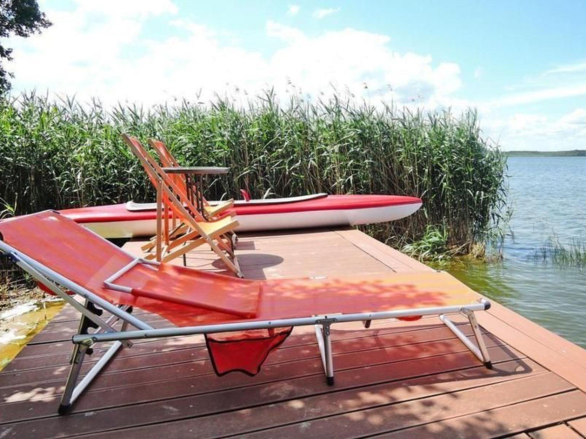 The Seeadler holiday home is situated on a fenced property between Ückermünde Heath and the Szczecin Lagoon. Ideal for large families with dogs. Plenty of space for dogs to play and run around. The jetty at the holiday home with water access is just 60 metres from the holiday home. You can fish or do water sports from the jetty. There are 4 kayaks with double seats and 2 rowing boats including 1 catamaran. The water equipment is available free of charge to all our guests from the holiday homes Seeblick and Seeadler. Nearby there is a beautiful cycle path through the heath to the German side to Rieth. This is about 10 kilometres long. In summer, you can take the cutter Lütt Matte on a lovely trip around the lagoon or across to Altwarp. The heath is full of blueberries and porcini mushrooms in autumn. Nature is still unspoilt there.