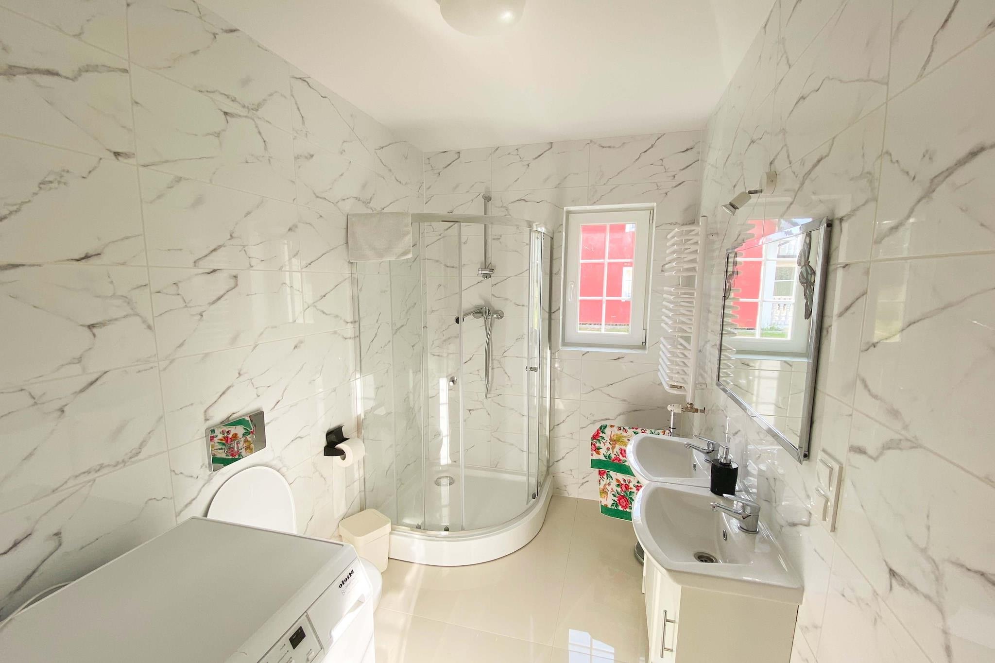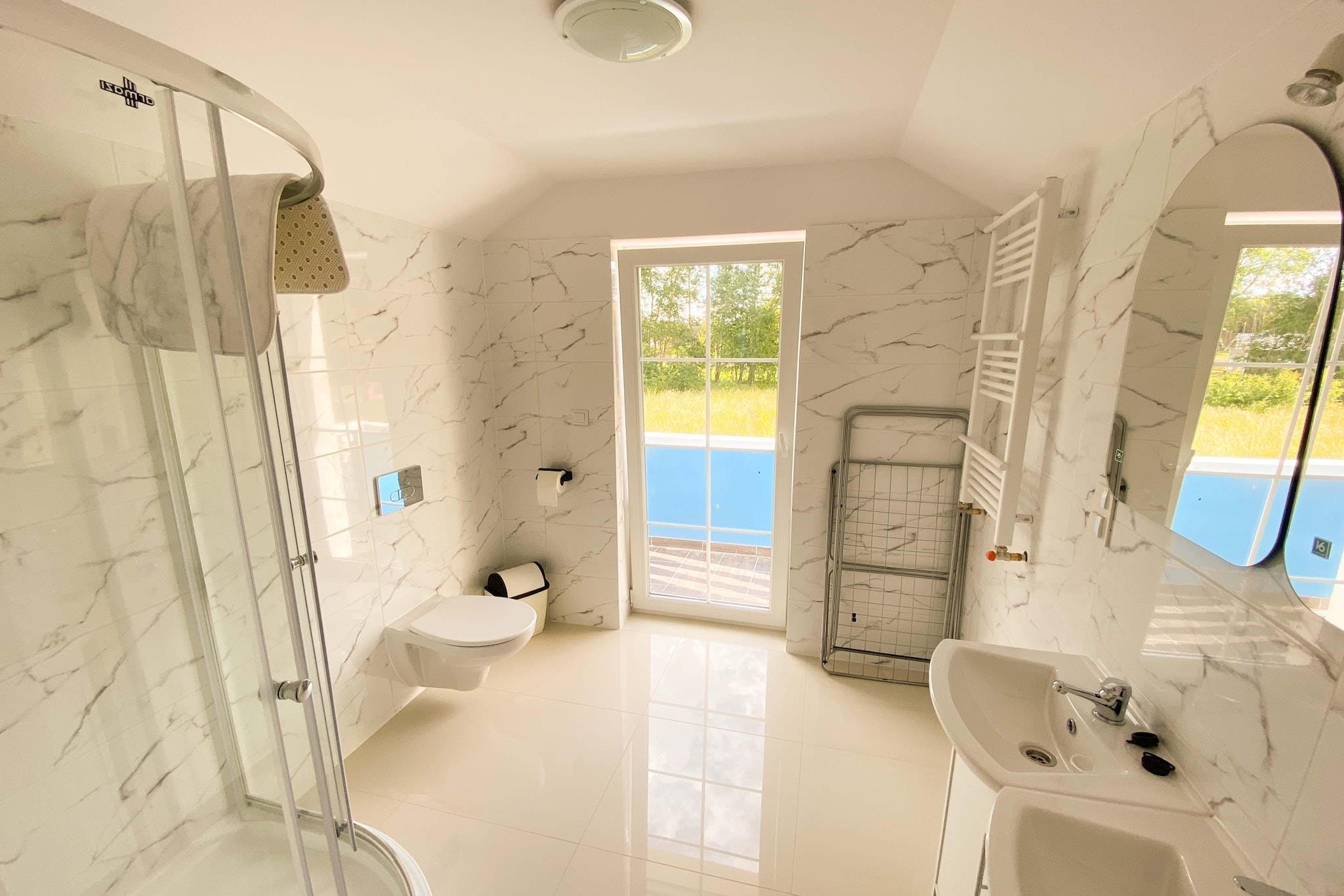 Fritliggende feriehus beliggende i det maleriske Nowe Warpno. Her kan I tilbringe en afslappende ferie i den friske luft, for en overdækket terrasse, en altan og en grillplads inviterer til timer sammen. Når vejret er køligere eller om aftenen, gør dig godt tilpas på gåturen til Harbour og læg planer for den næste dag af din ferie. Nowe Warpno er en rolig lille by i Vestpommern. Fredssøgende og naturelskere får noget for pengene i den uberørte natur. Aktiviteter i nærheden: Der er kun få minutter fra jeres sommerhus til Bymidten. I kan fiske mange steder omkring havnen, og der er også en fiskerestaurant. Du kan også udforske de naturlige omgivelser på lange cykelture Mobilitet: Ikke velegnet til personer med begrænset mobilitet.