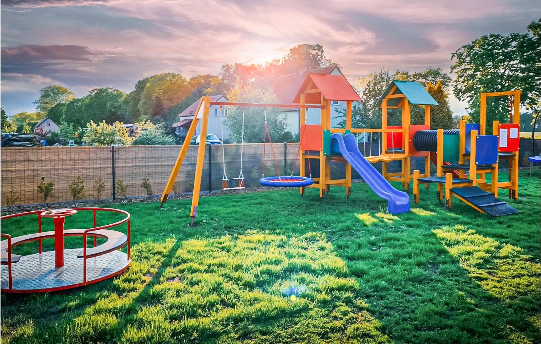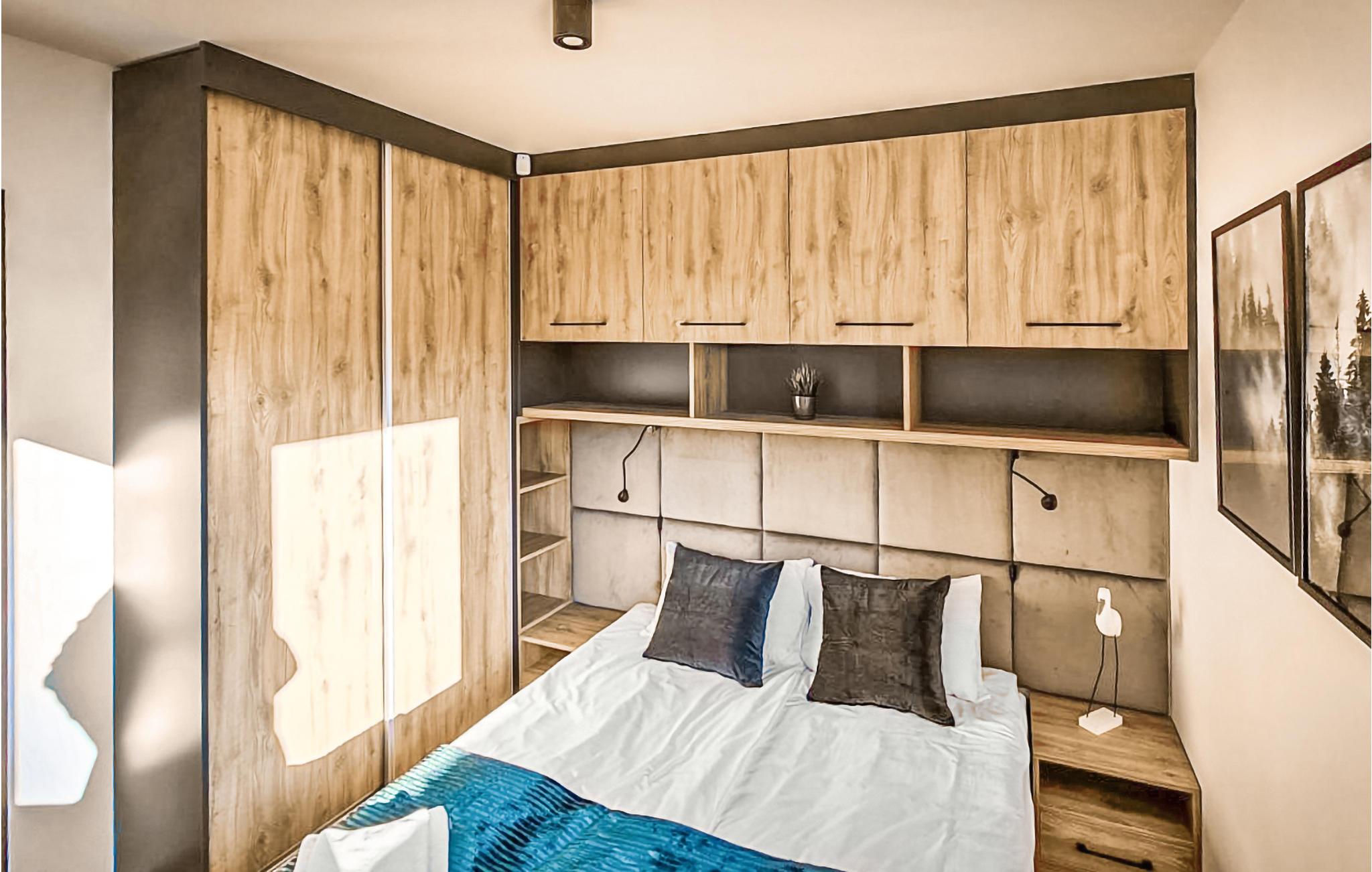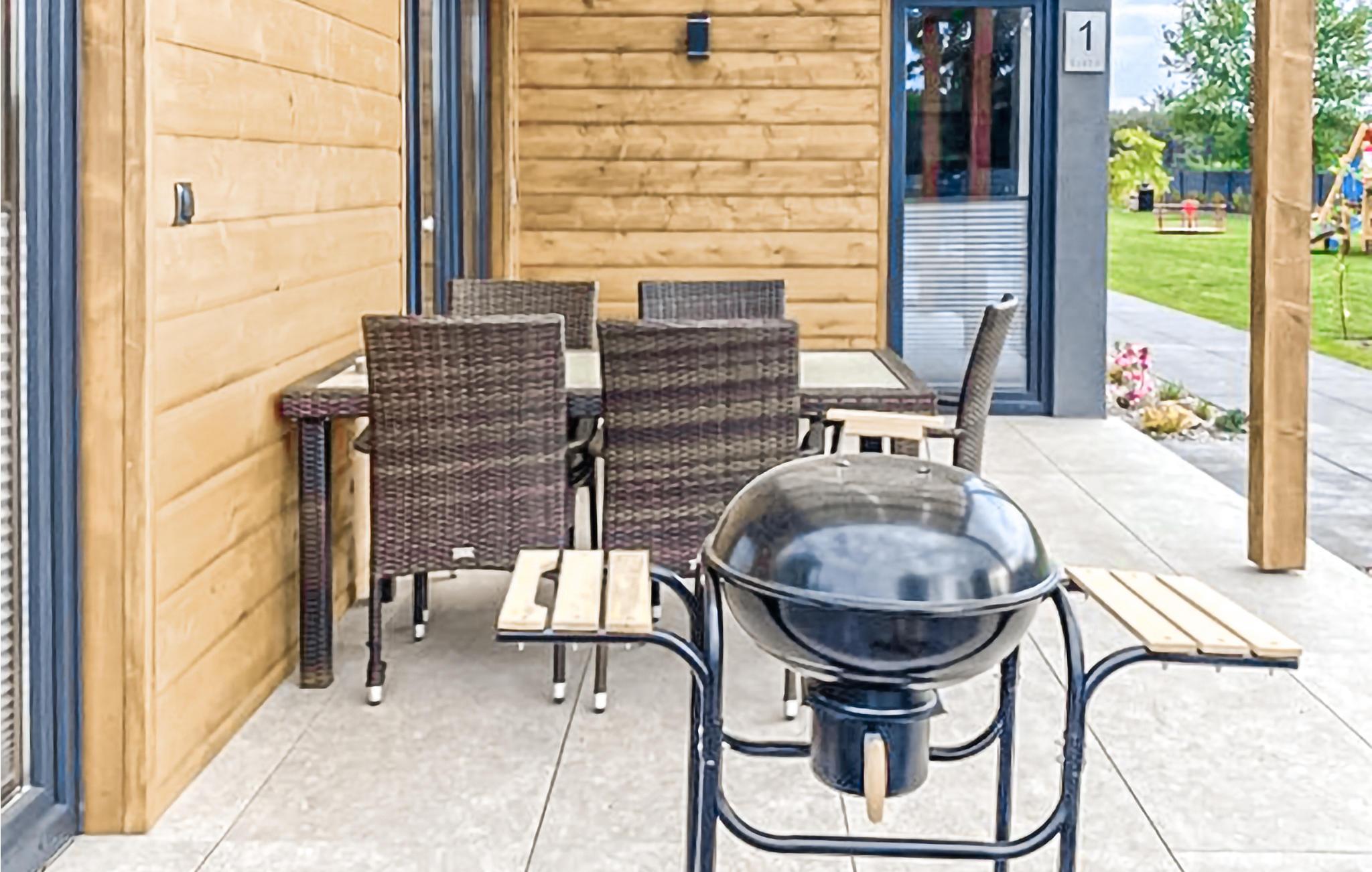 Indretningen er praktisk, hyggelig og meget stilfuld, så det er ideelt udstyret til en afslappende ferie. I har adgang til en velholdt og fælles grund, hvor I kan bruge jeres aftener på at grille. Der er også mange attraktioner til børn, herunder en sandkasse, trampolin, gynge eller rutsjebane. Glæd jer til at nyde morgenkaffen på den dejlige træveranda, mens børnene leger tagfat på græsplænen.