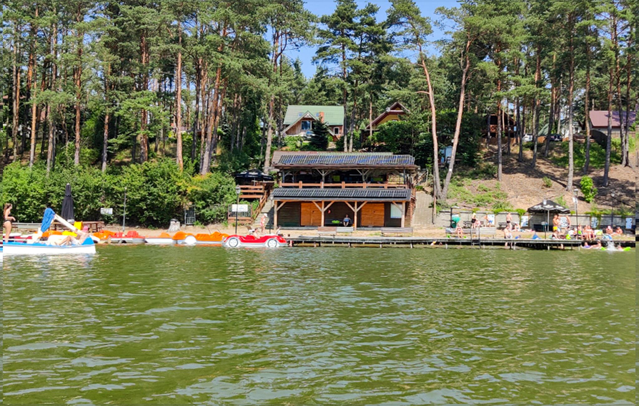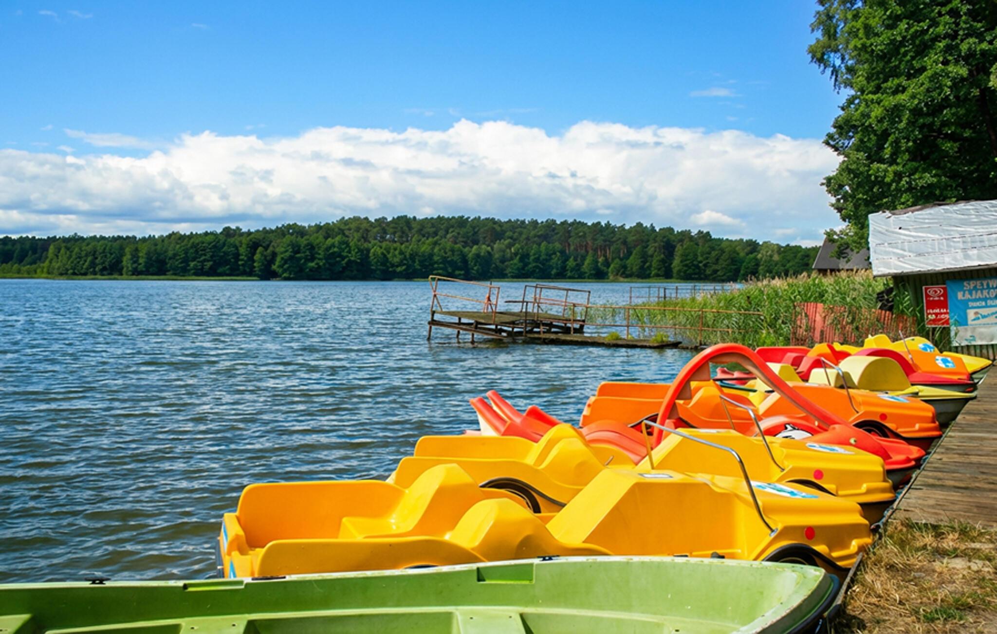Tilbring masser af tid udendørs og nyd det rummelige fælles strandområde ved Ocypel-søen. Læn jer tilbage i den overdækkede terrasse med havemøbler eller tilbered et måltid sammen på grillen. Om aftenen kan I tænde et bål ved bålstedet og lade dagen forsvinde blidt. Lad børnene lege i legehuset og med det andet legeredskab. Gå til badebroen, og hop direkte i det klare vand. Lej et SUP-board, kano eller motorbåd, og udforsk søen fra vandet.