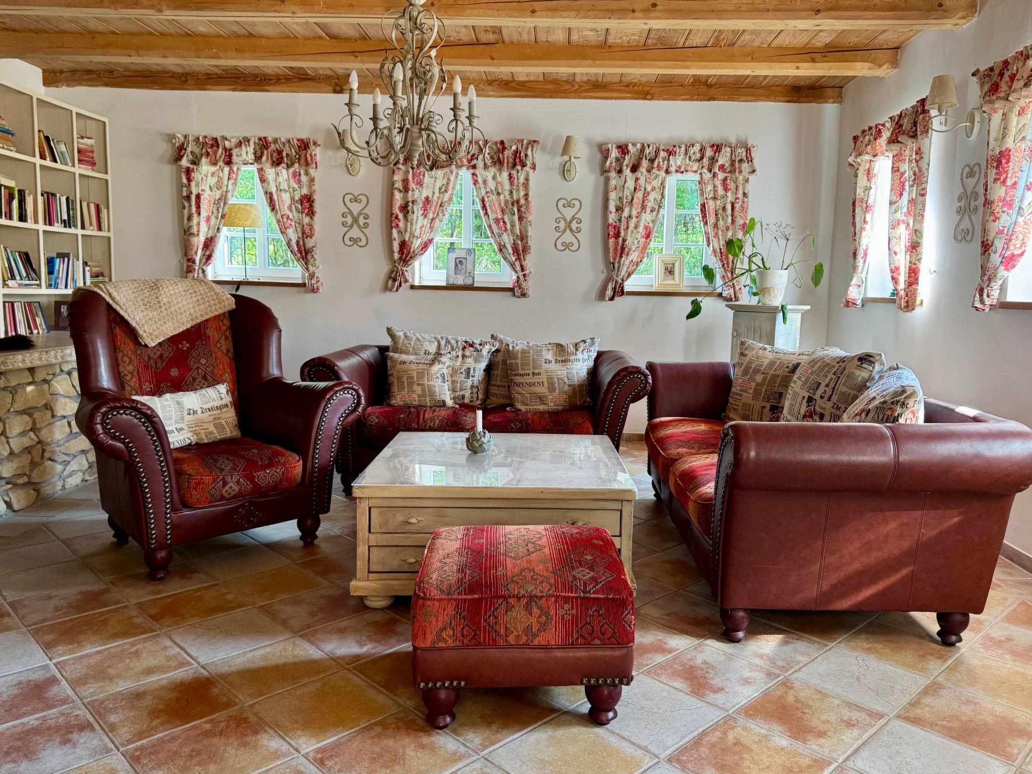 The house has 2 bathrooms with shower, two living rooms with fireplace and TV, two fully equipped kitchens (refrigerator, dishwasher, microwave, oven, 4-burner cooker, crockery, pots, cutlery, kettle, coffee maker, toaster) and 4 bedrooms (2 bedrooms with double bed, 1 large bedroom with 1 double bed and 2 single beds, a children's room for four people with two double beds). The house is equipped to make you feel at home.