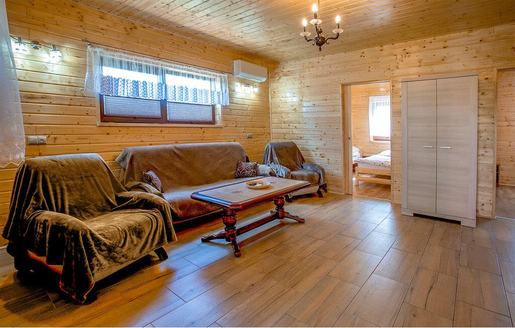 Denne hyggelige ferielejlighed giver mulighed for at tilbringe dage tæt på naturen med familien og lade batterierne op. Tilbered lækre retter i det praktiske køkken og planlæg jeres aktiviteter sammen ved det indbydende spisebord. Efter en lang dag udendørs inviterer den komfortable opholdsstue til at nyde sociale spilleaftener eller en afslappende bog.